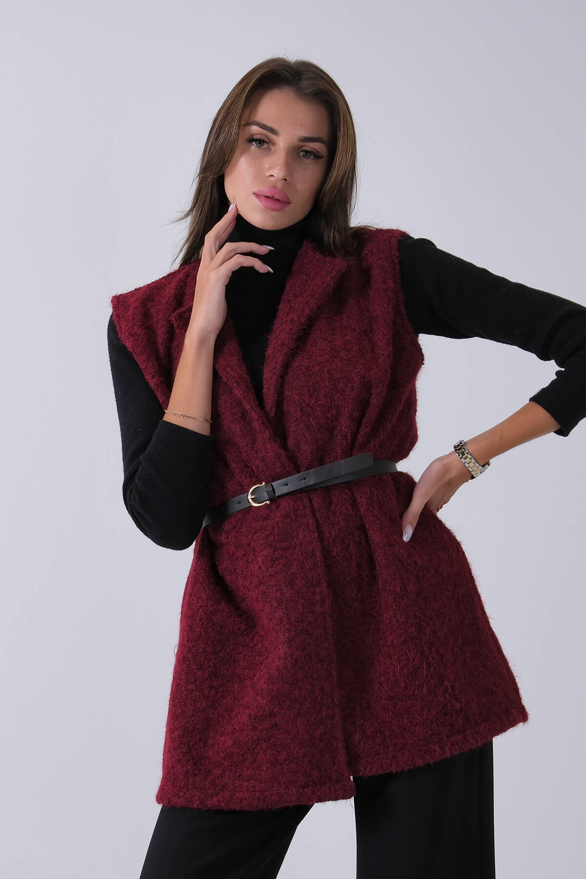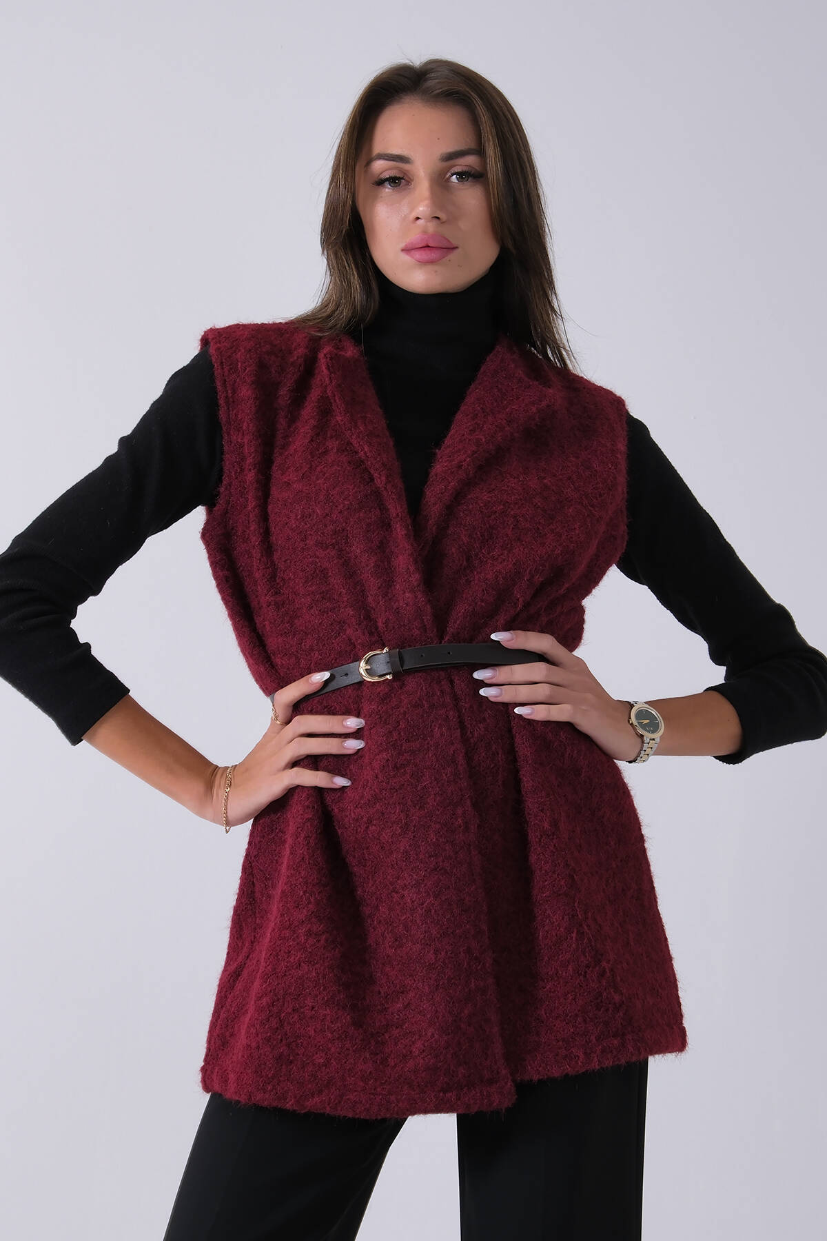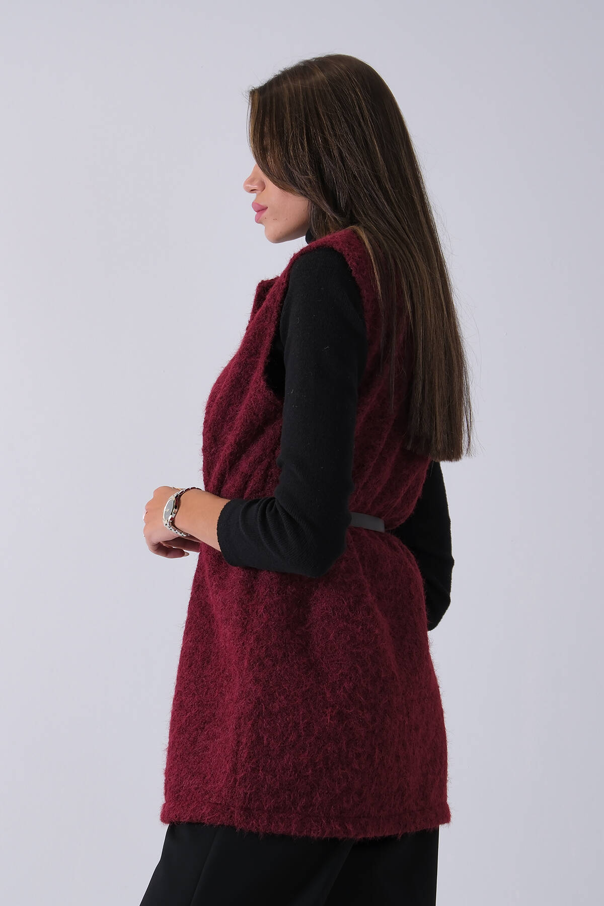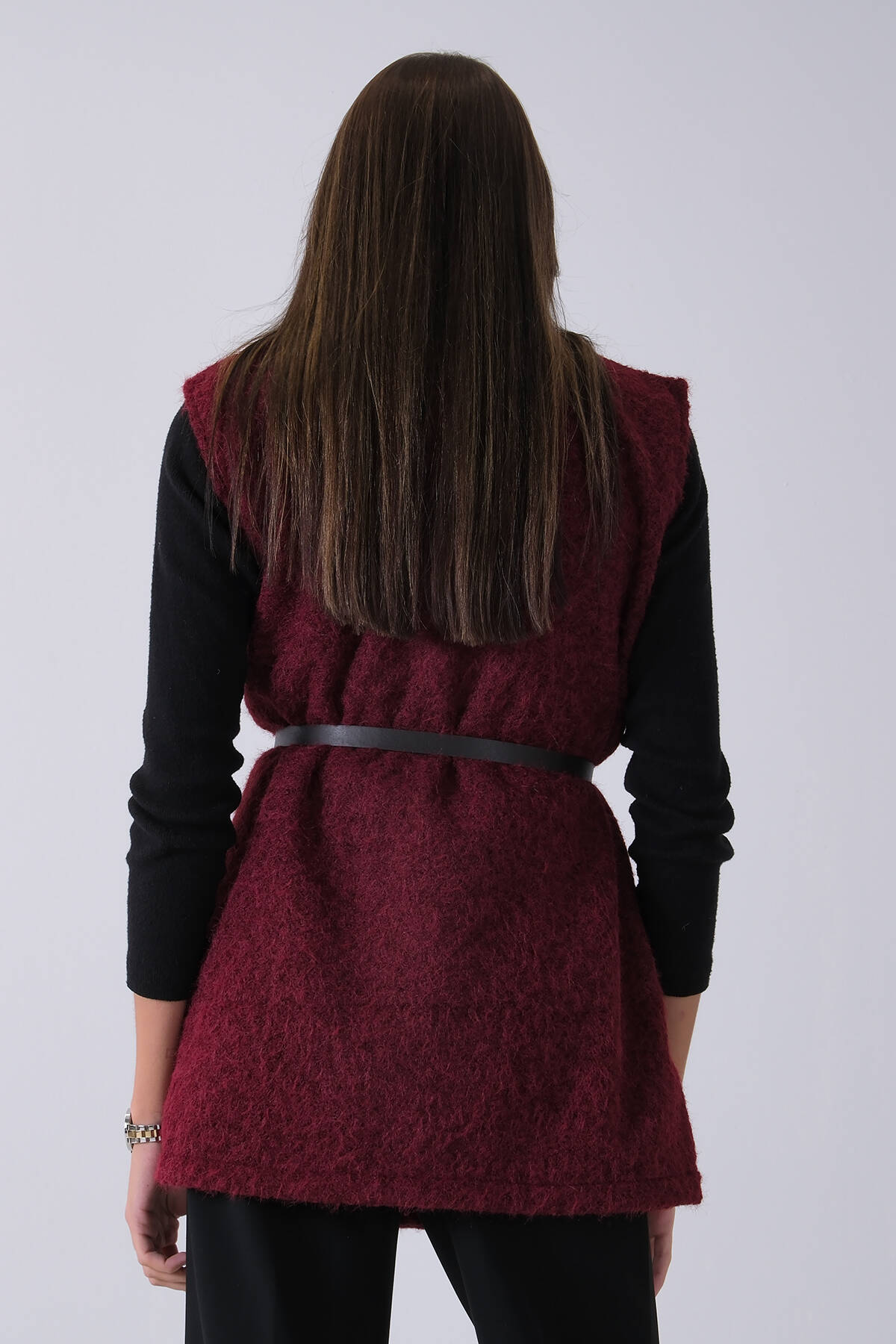 Bordo Kemerli Yünlü Kaşe Yelek 31070196.04