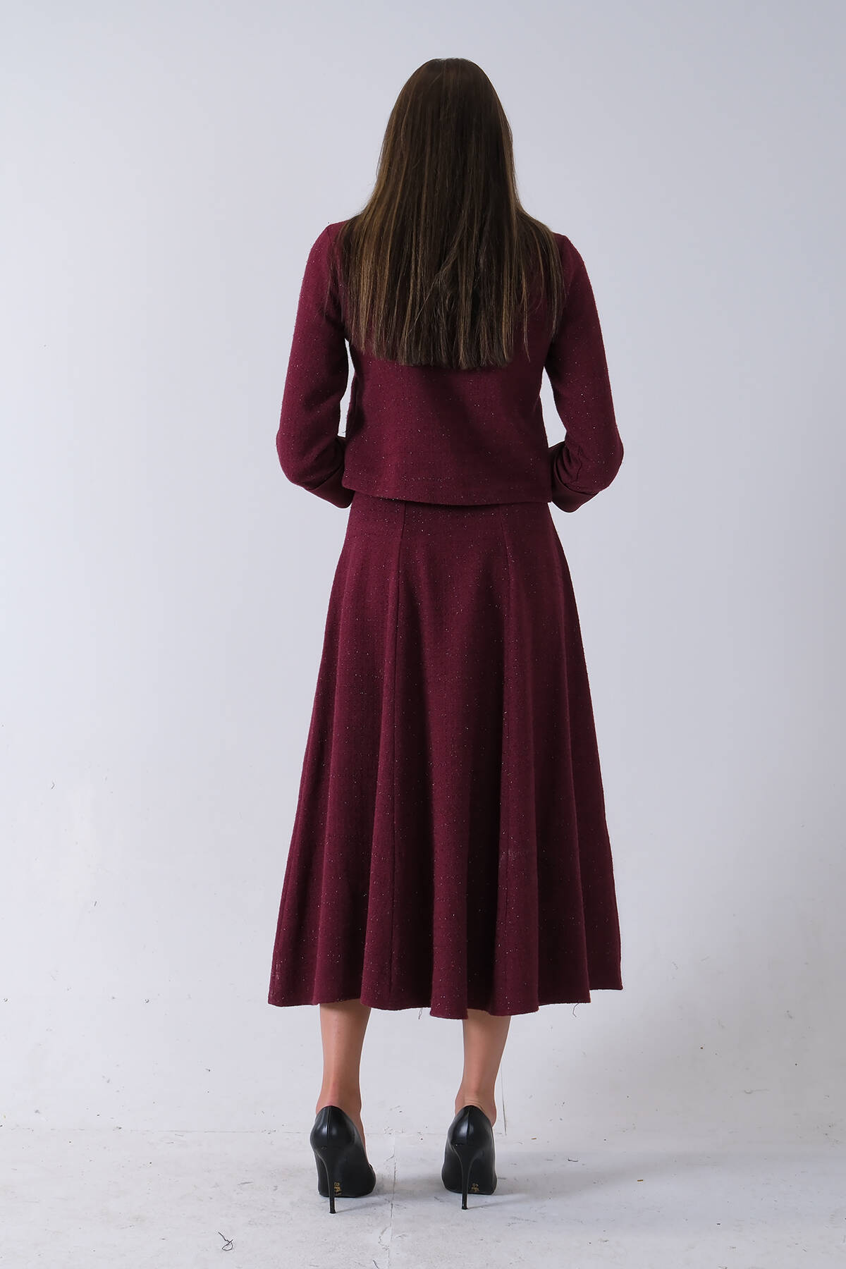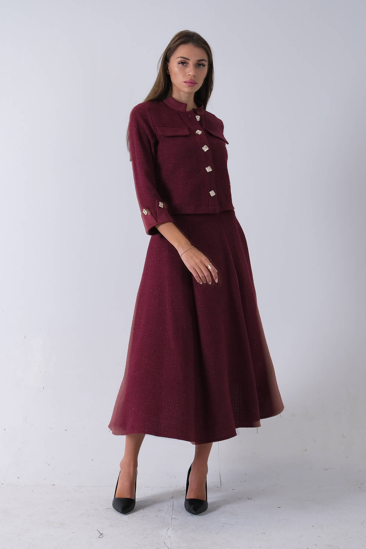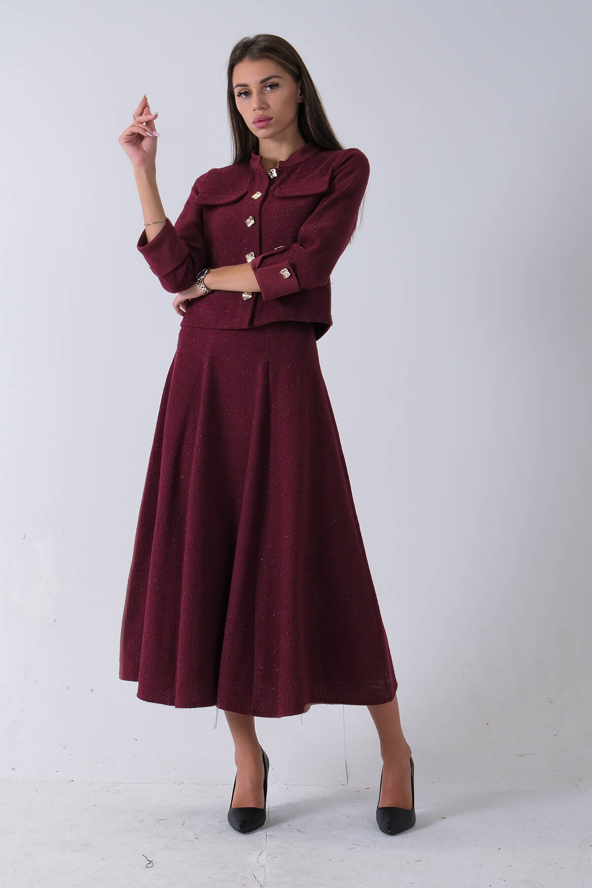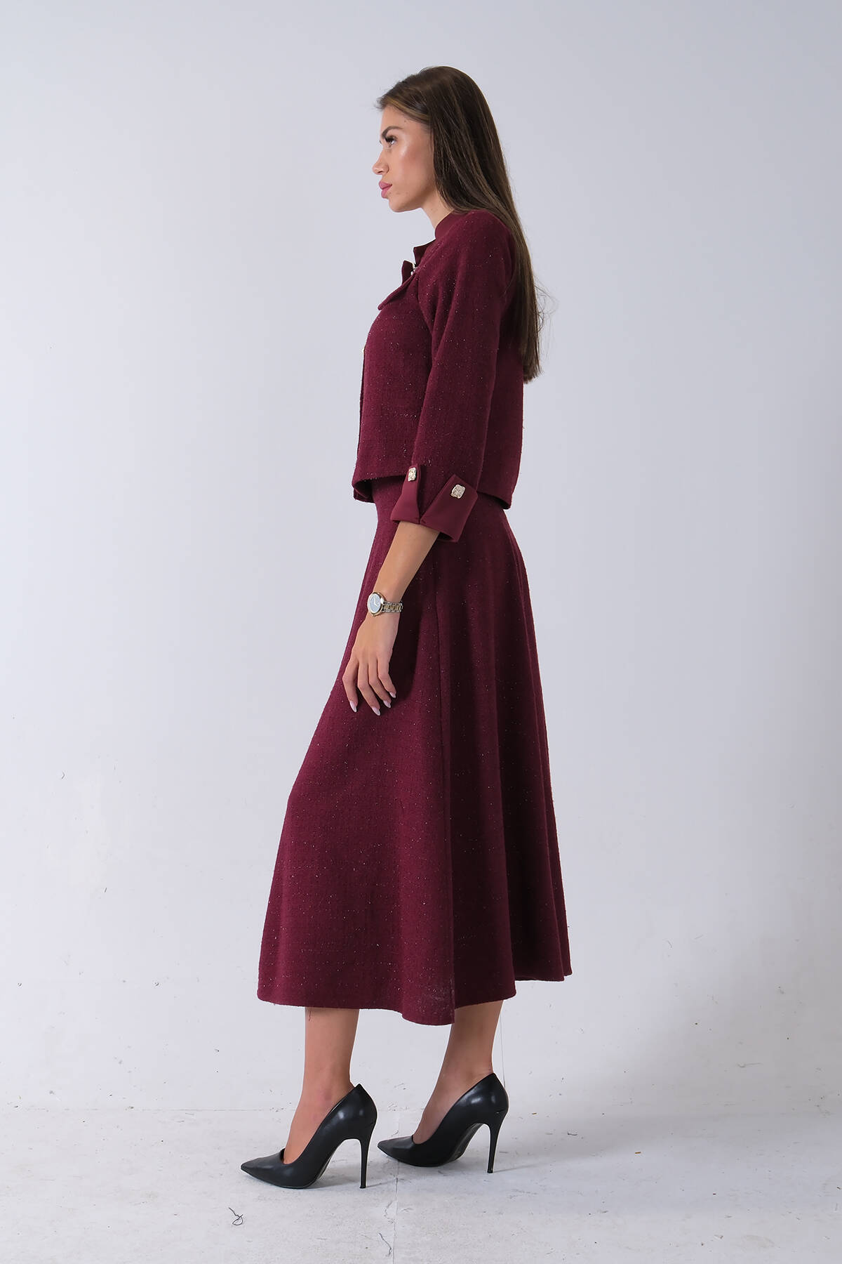 Bordo Önü Düğme Kapamalı Crop Ceket Etekli Tüvid Takım 45950601.04
