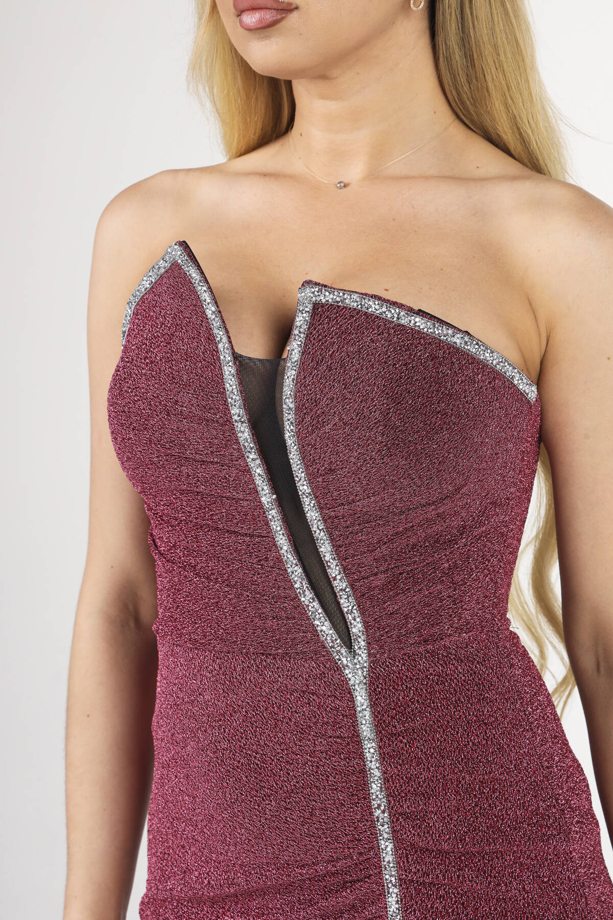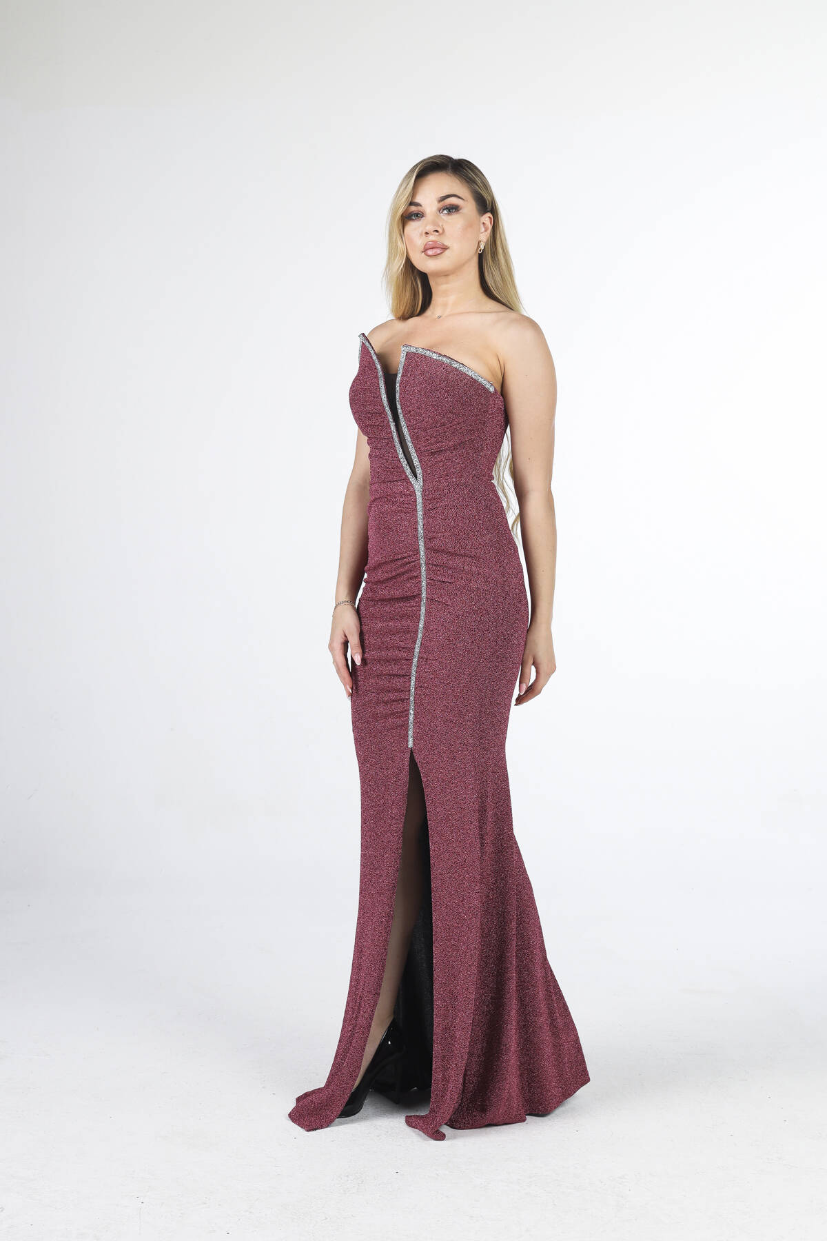 Modelin Ölçüleri : Boy: 1.80 cm / Göğüs: 88 cm / Bel: 69 cm /Basen : 94 cm Mankenin Üzerindeki Ürün 38/M Bedendir %100 Polyester Straplez Göğüsünden Aşağı Doğru Şerit Taş Detaylı Yırtmaçlı Göğüs Kısmı Balenli Astarlı Balık Kesim Abiye Elbise Ürün Boyu : 150 cm Stüdyo Çekimlerinde Renkler Işık Farklılıgından Dolayı Değişiklik Gösterebilir (Dikkat! Ürünlerimiz güvenlik bandı ile gönderilmektedir . Güvenlik bandı olmayan ürünlerin iadesi kabul edilmeyecektir)