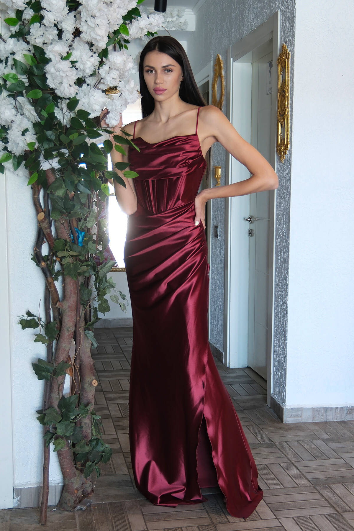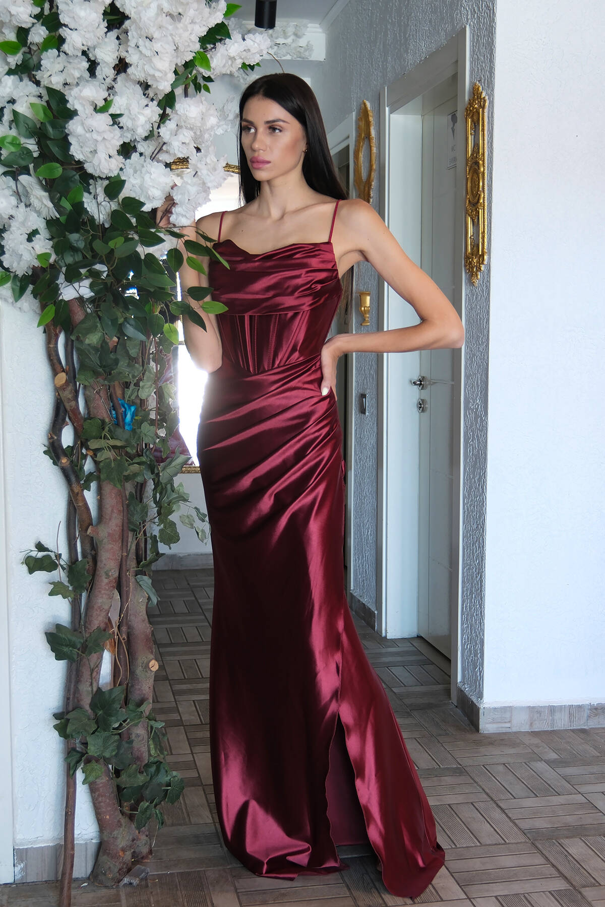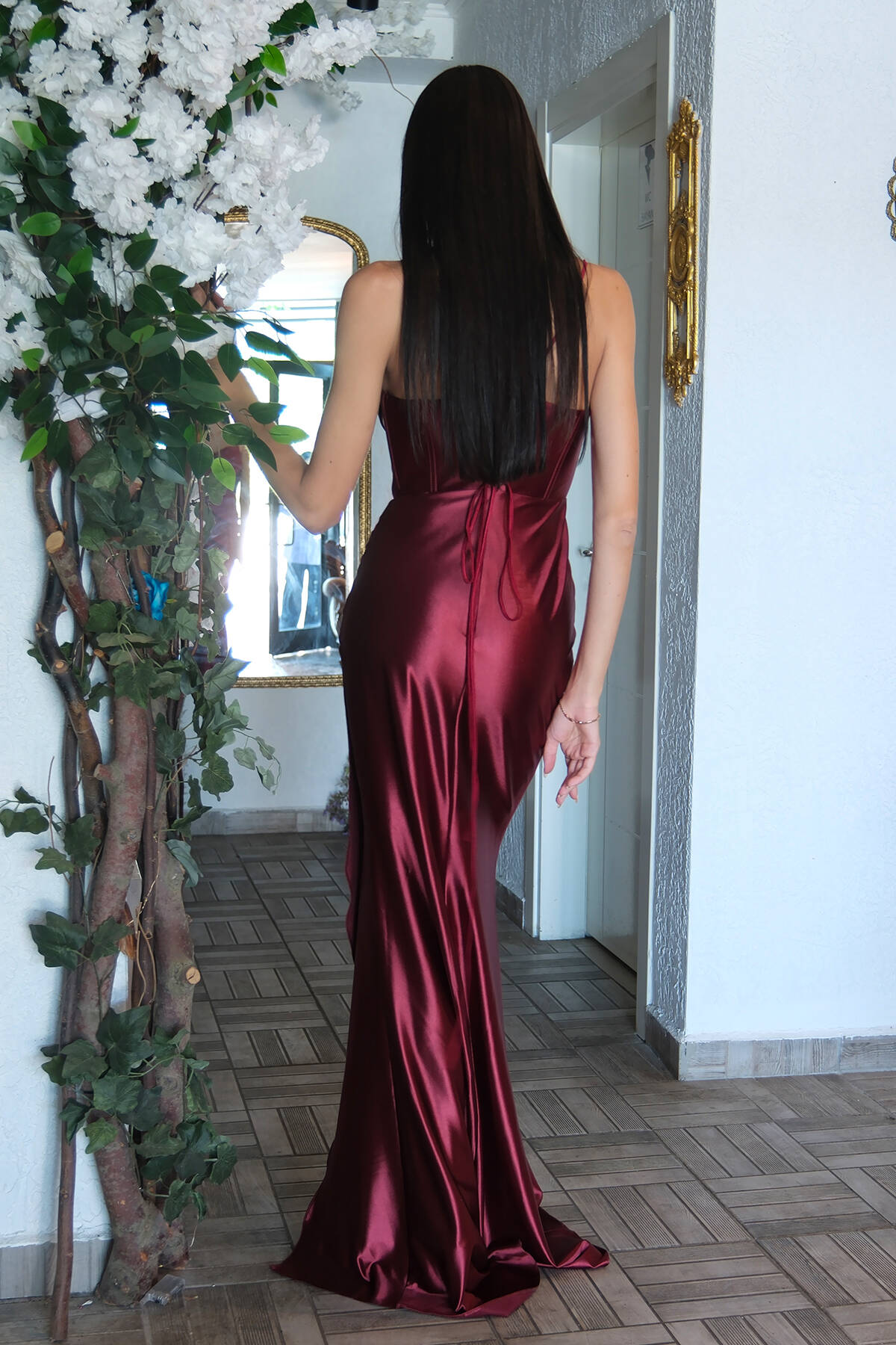 Bordo Sırtı Bağlamalı Yırtmaçlı Abiye 4522018.04