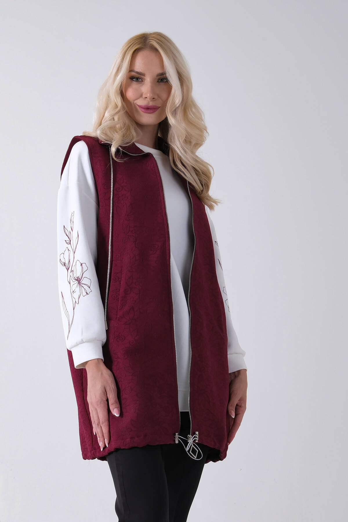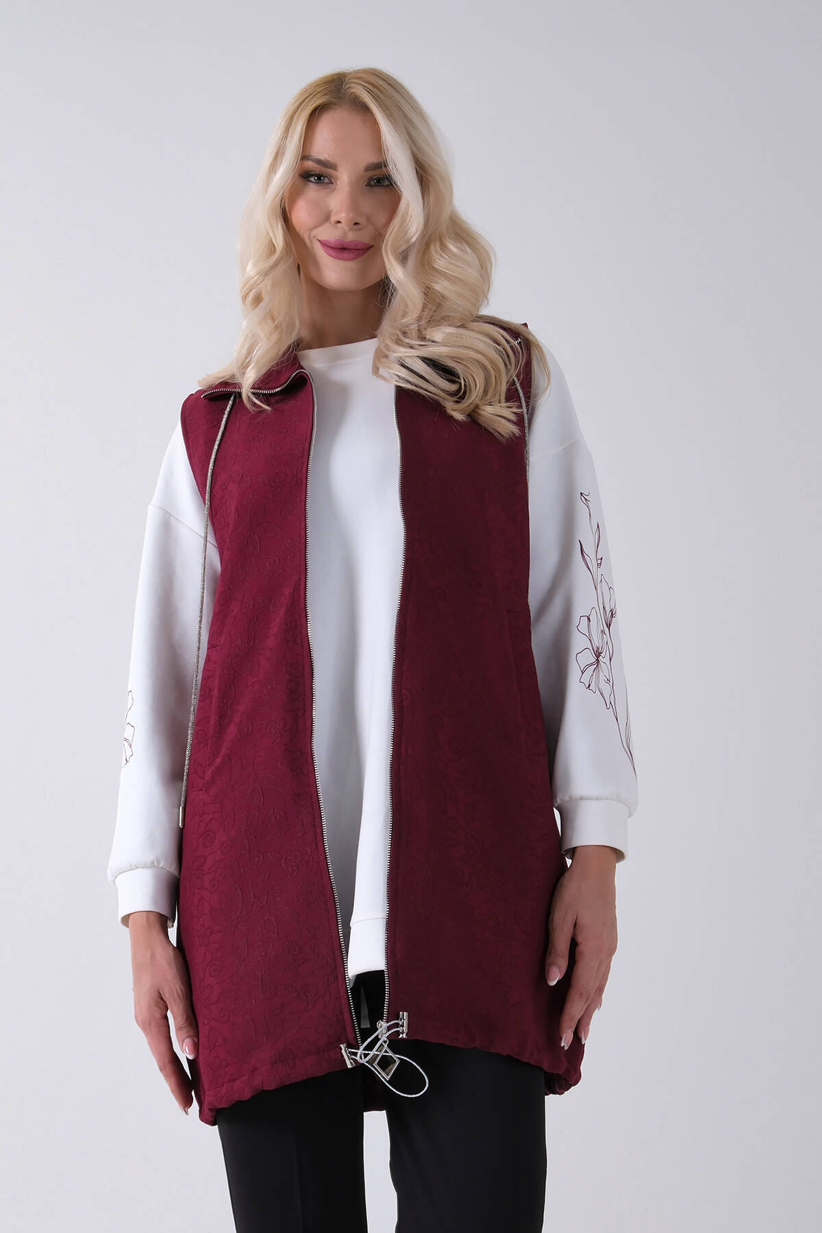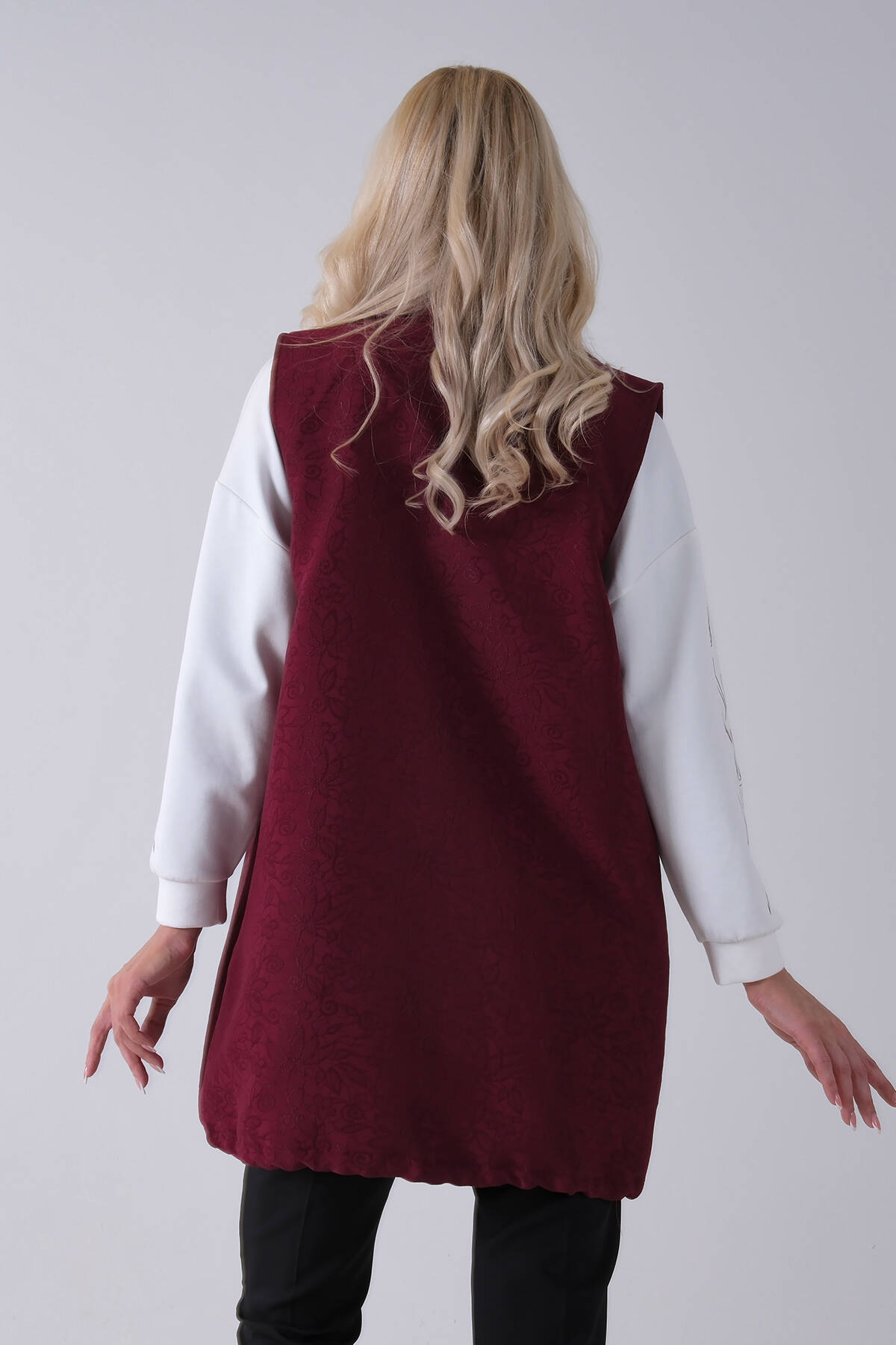 Bordo Tunik Kolu Çiçek Desenli Yelekli 2'li Takım 940120274.04