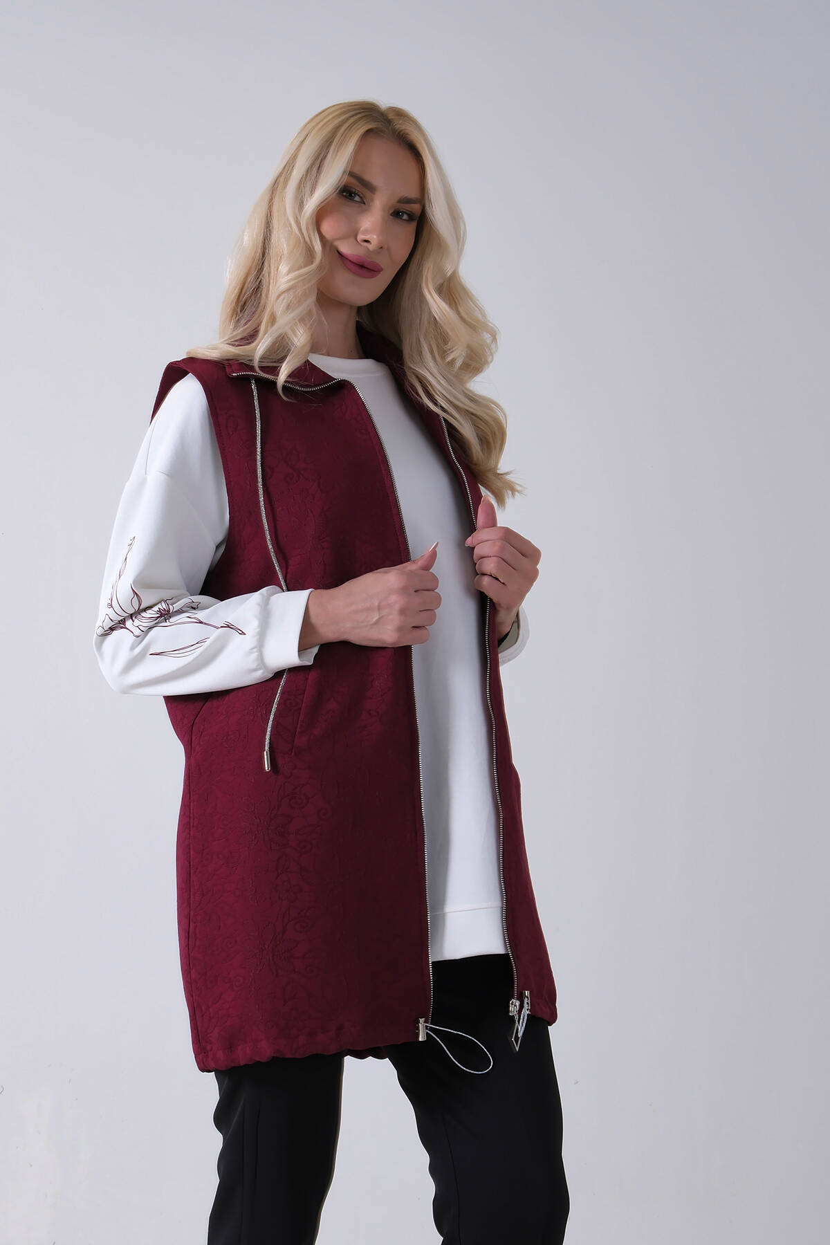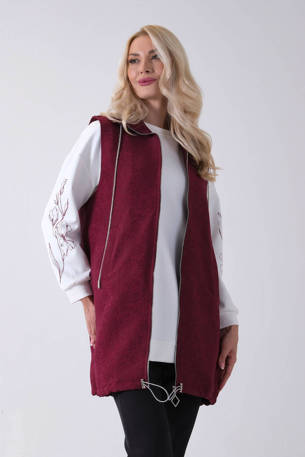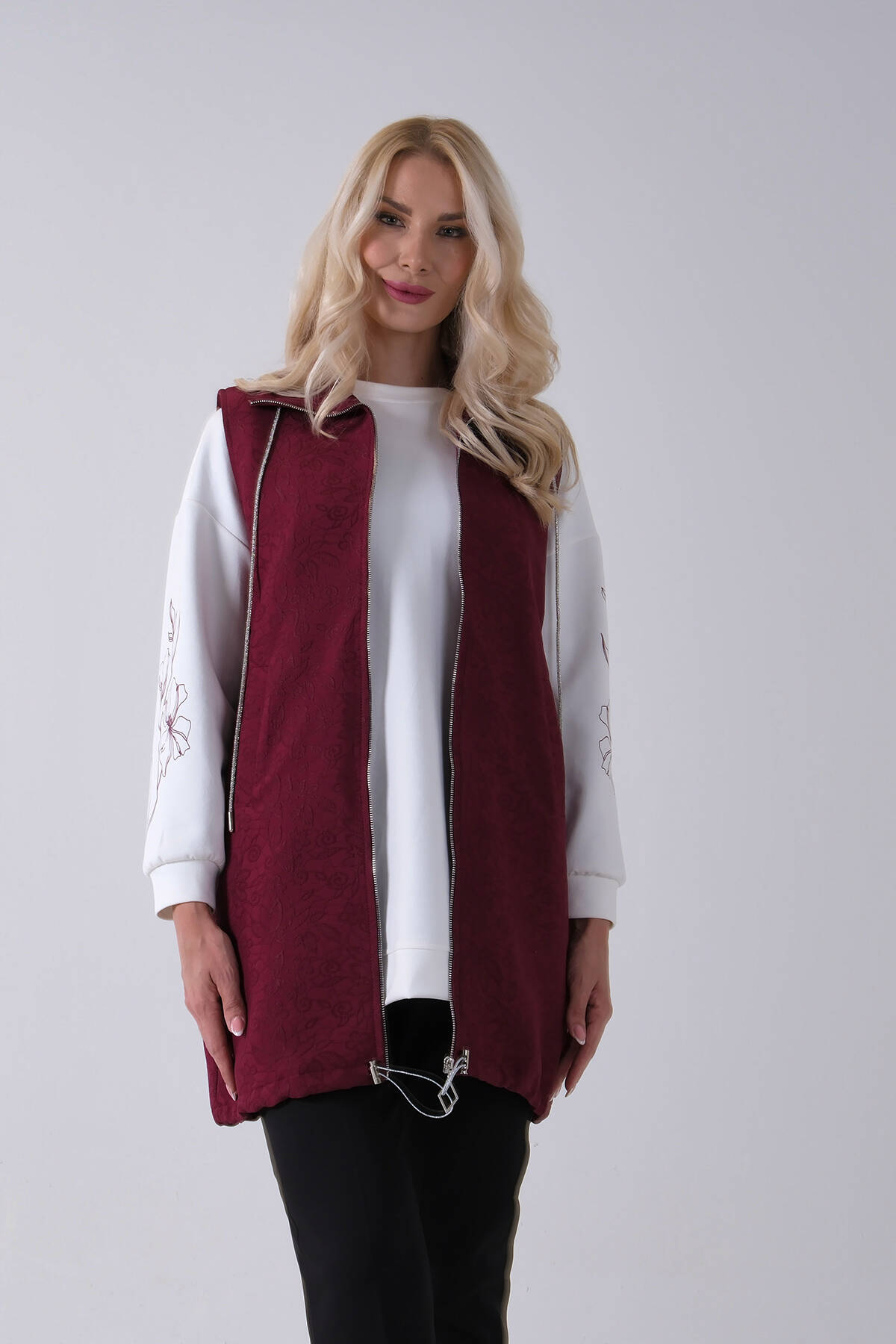 Bordo Tunik Kolu Çiçek Desenli Yelekli 2'li Takım 940120274.04
