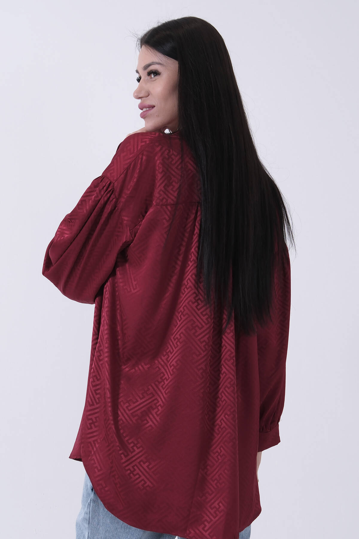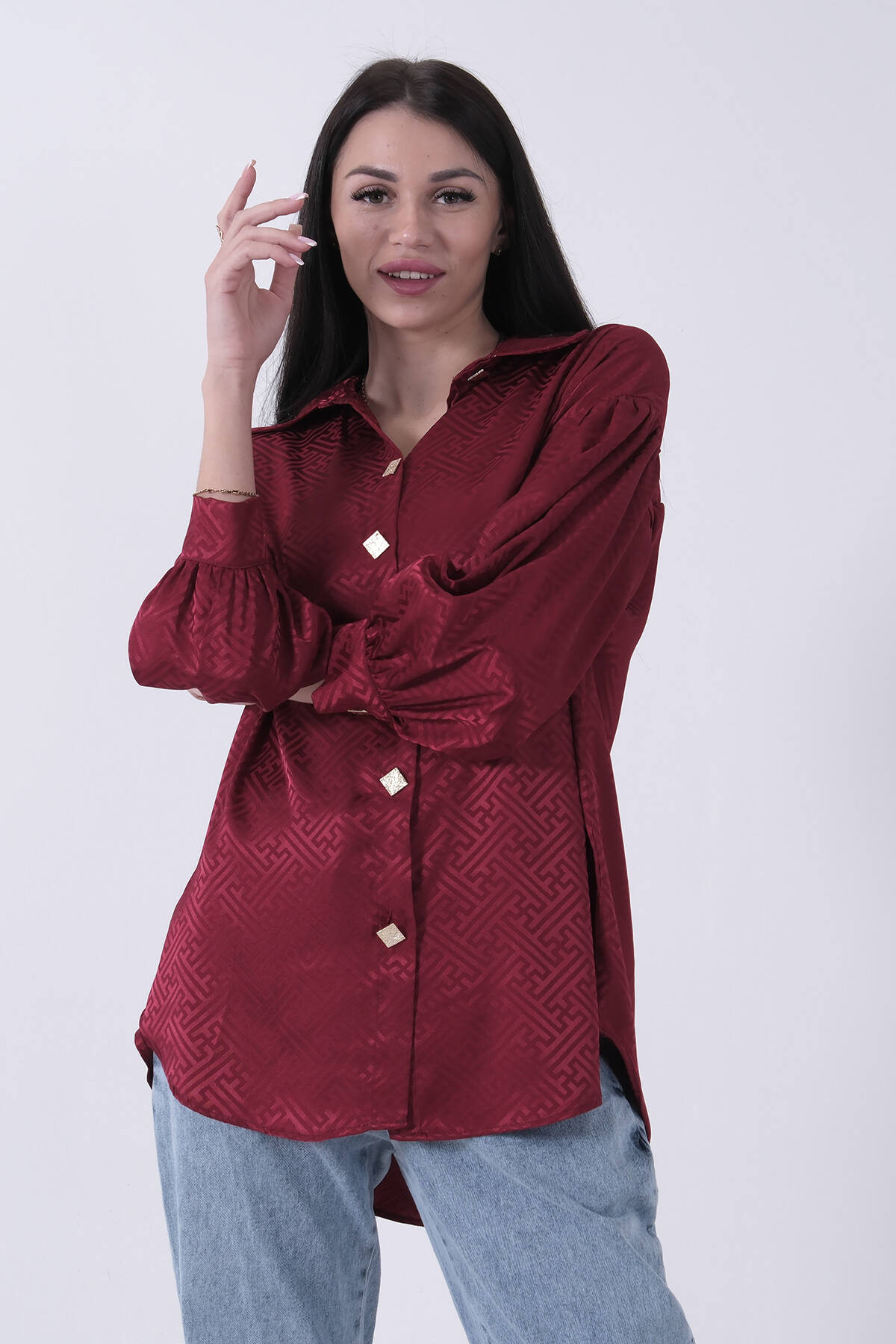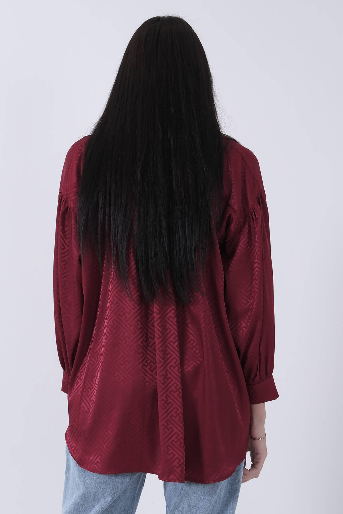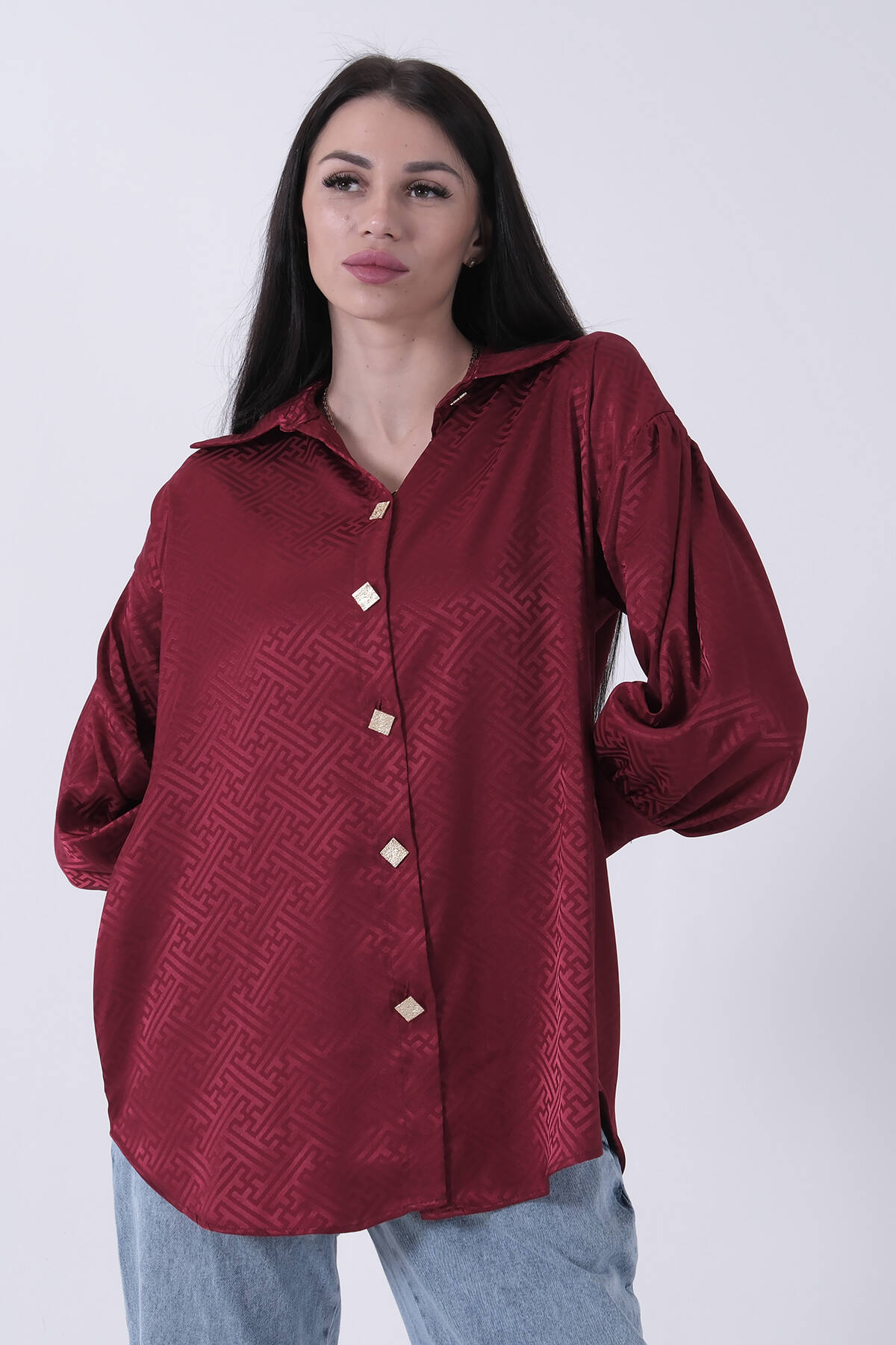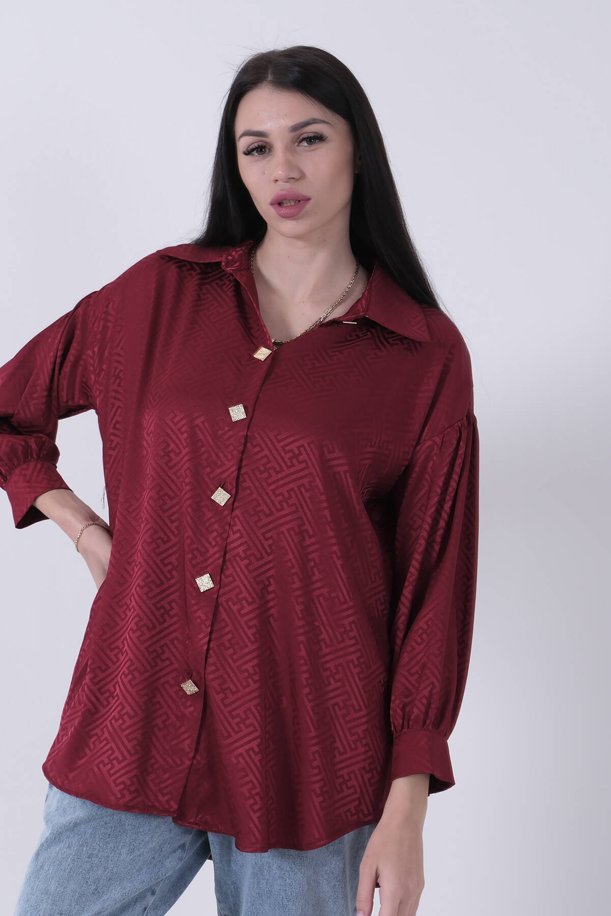 Bordo Üzeri Desenli Gold Düğme Detaylı Tunik 45951993.04