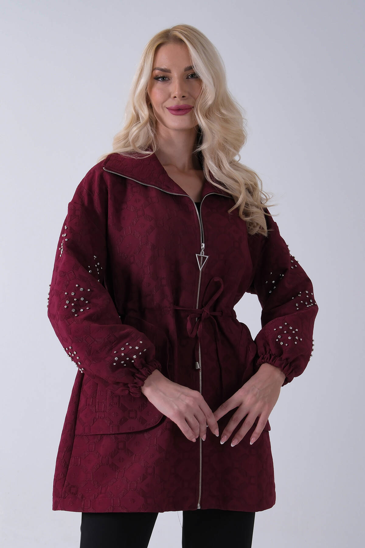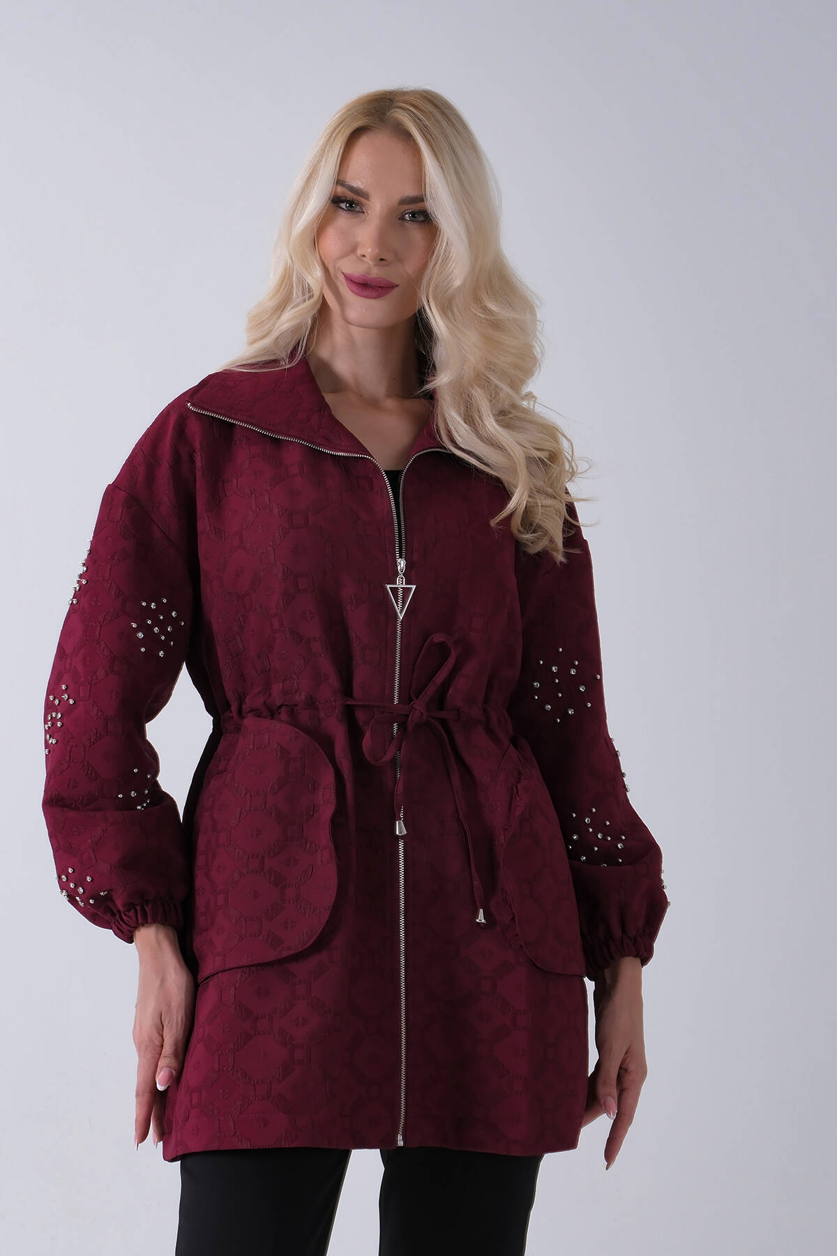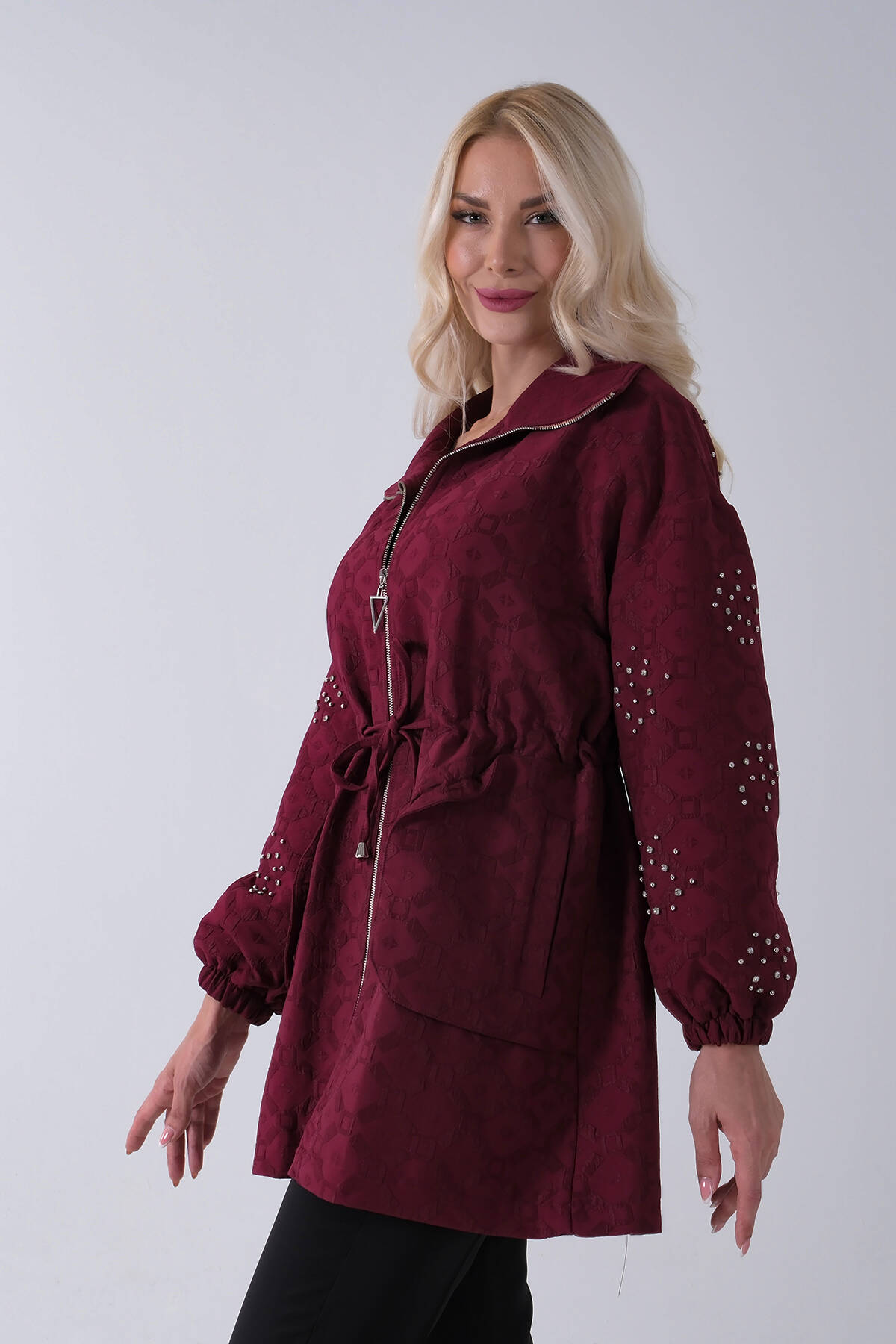 Bordo Üzeri Taş Detaylı Yandan Cepli Trenç 940140177.04