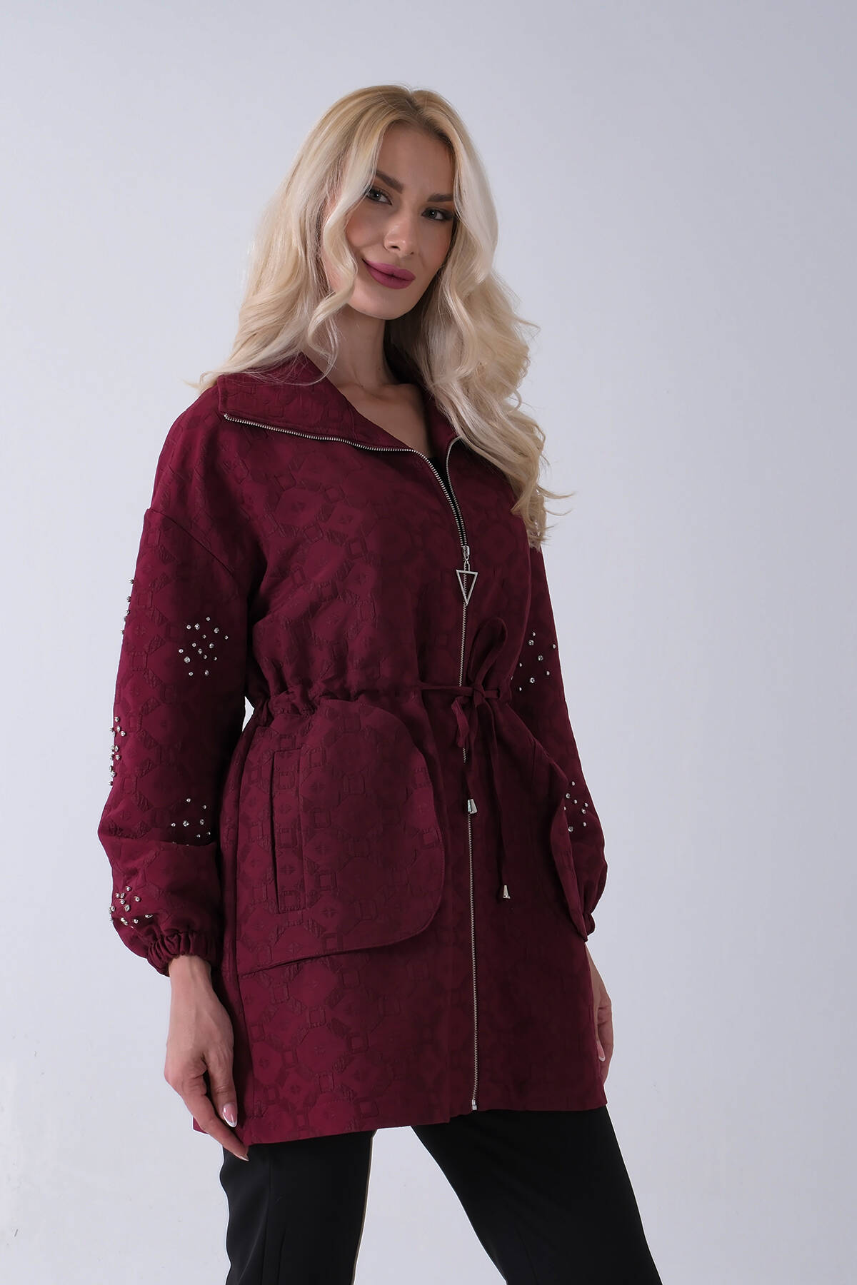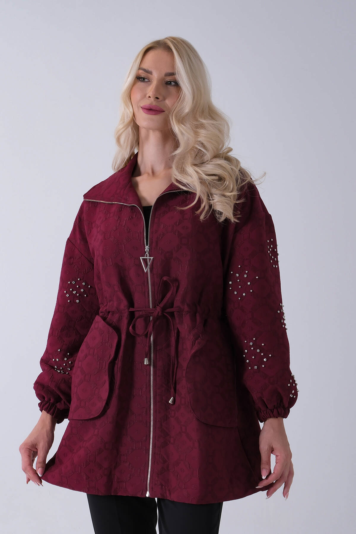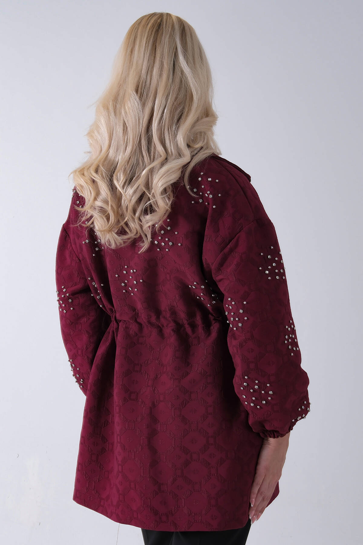 Bordo Üzeri Taş Detaylı Yandan Cepli Trenç 940140177.04