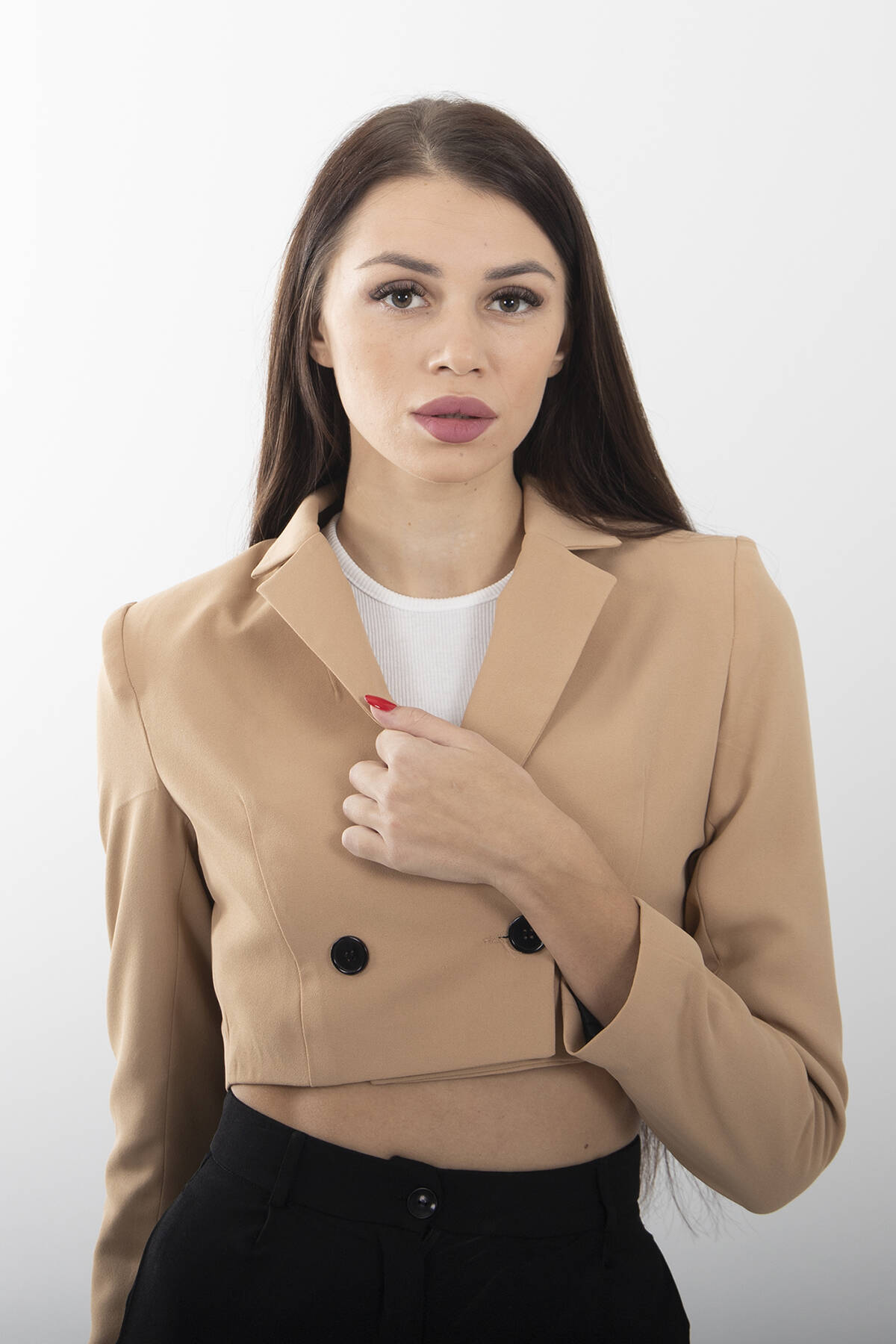 Modelin Ölçüleri : Boy: 1.80 cm / Göğüs: 88 cm / Bel: 69 cm /Basen : 94 cm Mankenin Üzerindeki Ürün 36/S Bedendir %100 Polyester Uzun Kol Kruvaze Yaka Vatkalı Astarlı Krep Kumaş Crop Blazer Ceket Ürün Boyu : 41 cm Stüdyo Çekimlerinde Renkler Işık Farklılıgından Dolayı Değişiklik Gösterebilir
