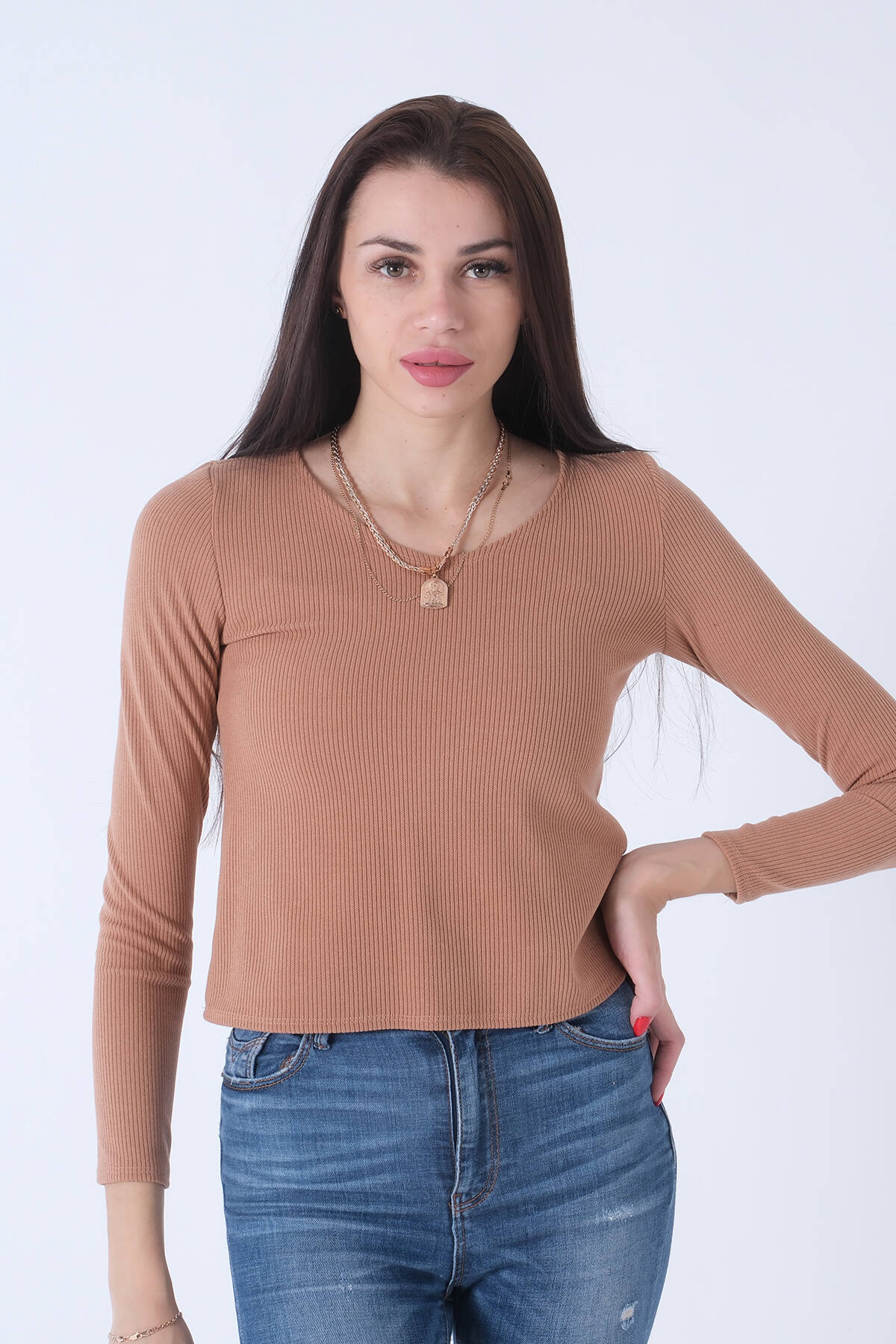 Kahve Şal Aksesuarlı Bisiklet Yaka Triko Kazak 46892633.05