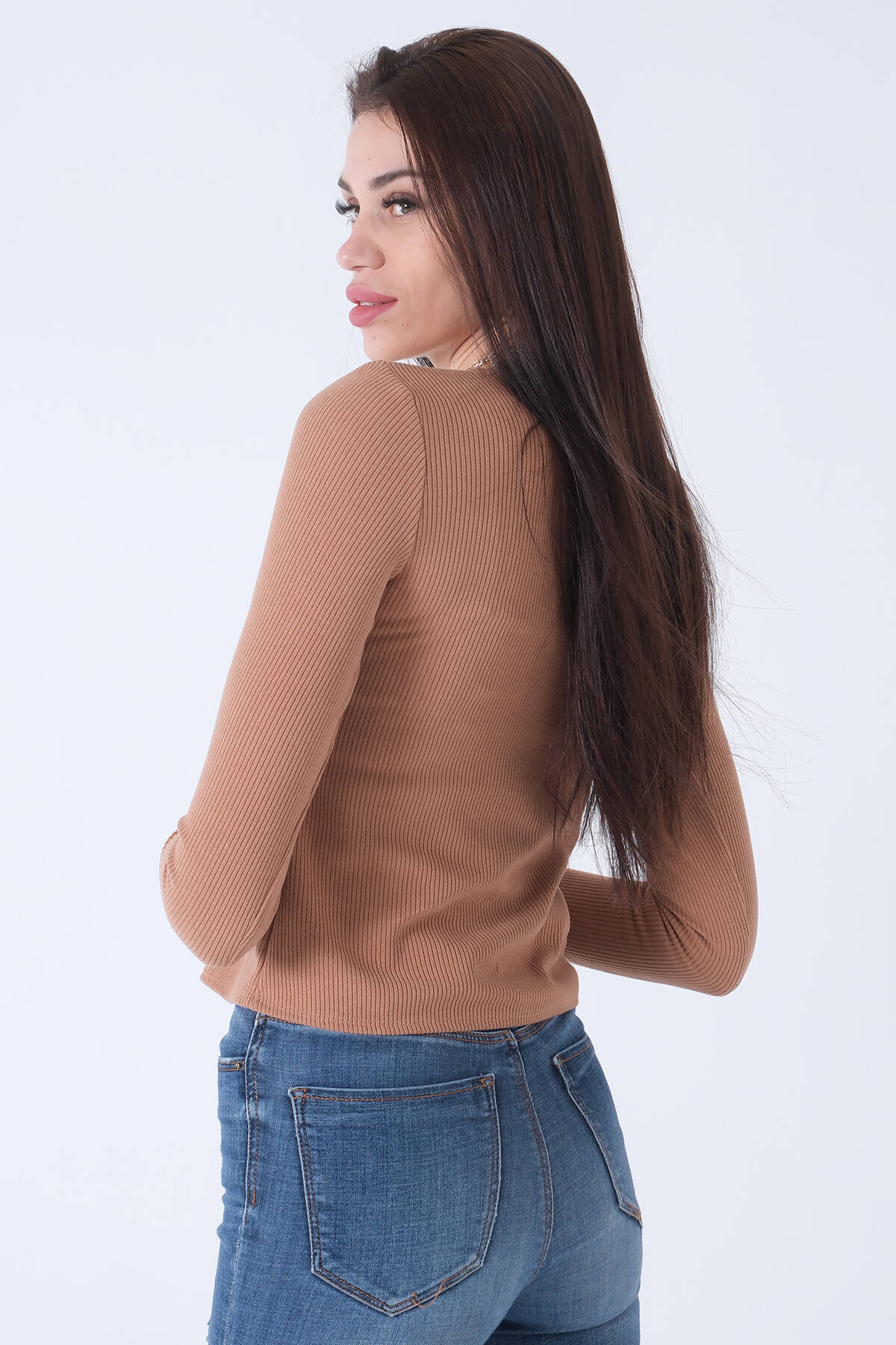 Mürdüm V Yaka Beli Lastikli Triko Kazak 46892623.21