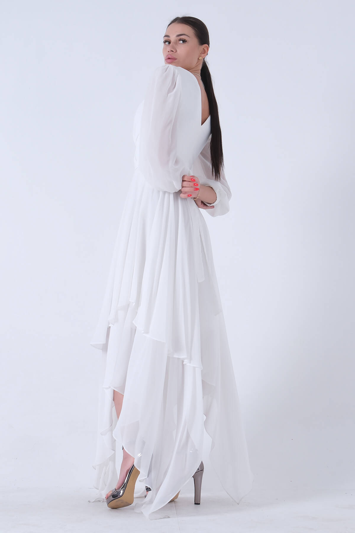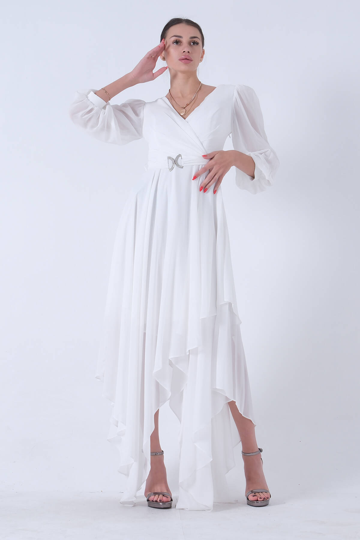 Modelin Ölçüleri : Boy: 1.80 cm / Göğüs: 88 cm / Bel: 69 cm /Basen : 94 cm Mankenin Üzerindeki Ürün 38/M Bedendir %100 Polyester Uzun Balon Kol Kruvaze Yaka Seyyar Kemerli Eteği Asimetrik Kesim Şifon Abiye Elbise Ürün Boyu : En uzun :178 En kısa : 105 cm Stüdyo Çekimlerinde Renkler Işık Farklılıgından Dolayı Değişiklik Gösterebilir (Dikkat! Ürünlerimiz güvenlik bandı ile gönderilmektedir . Güvenlik bandı olmayan ürünlerin iadesi kabul edilmeyecektir)