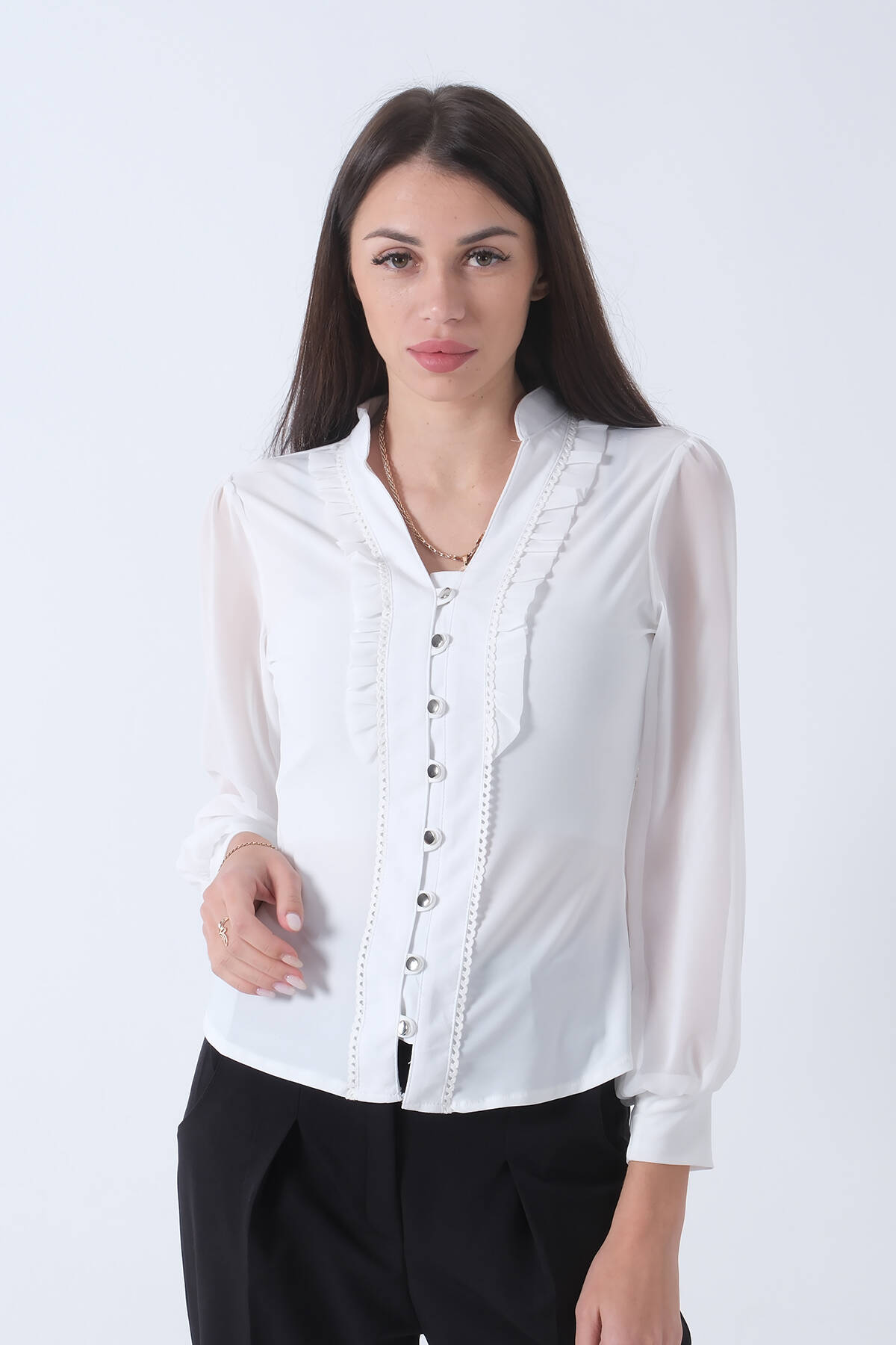 Ekru Fırfır Aksesuarlı Düğmeli Gömlek 4202760.147