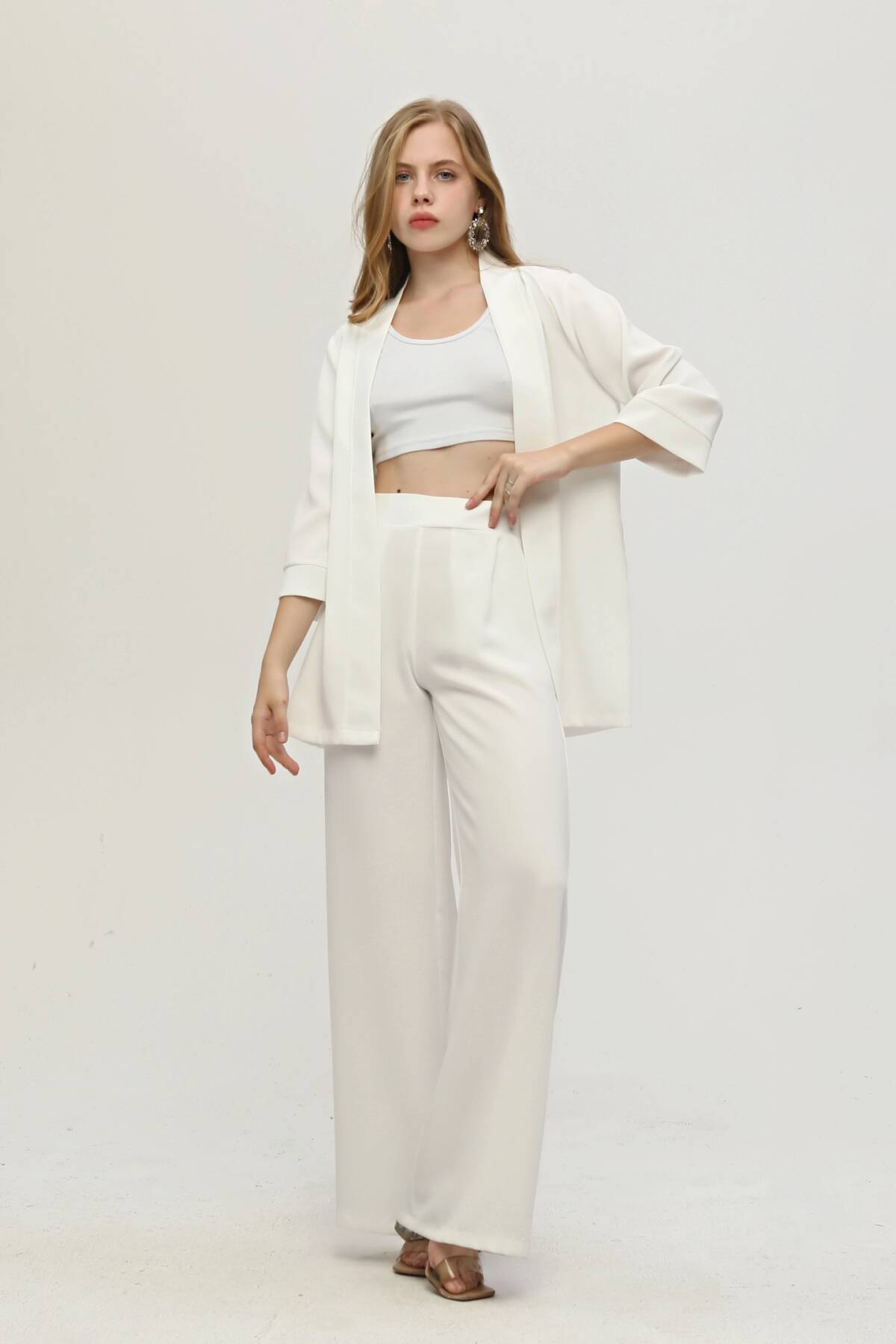 Modelin Ölçüleri : Boy: 1.80 cm / Göğüs: 88 cm / Bel: 69 cm /Basen : 94 cm Mankenin Üzerindeki Ürün 36/S Bedendir %100 Polyester Truvakar Kol Kapamasız Üst Çift Cepli Yüksek Bel Beli Lastikli Bol Paça Pantolonlu Krep Kimono Takım Ürün Boyu : Üst 72 cm Alt 108 Stüdyo Çekimlerinde Renkler Işık Farklılıgından Dolayı Değişiklik Gösterebilir