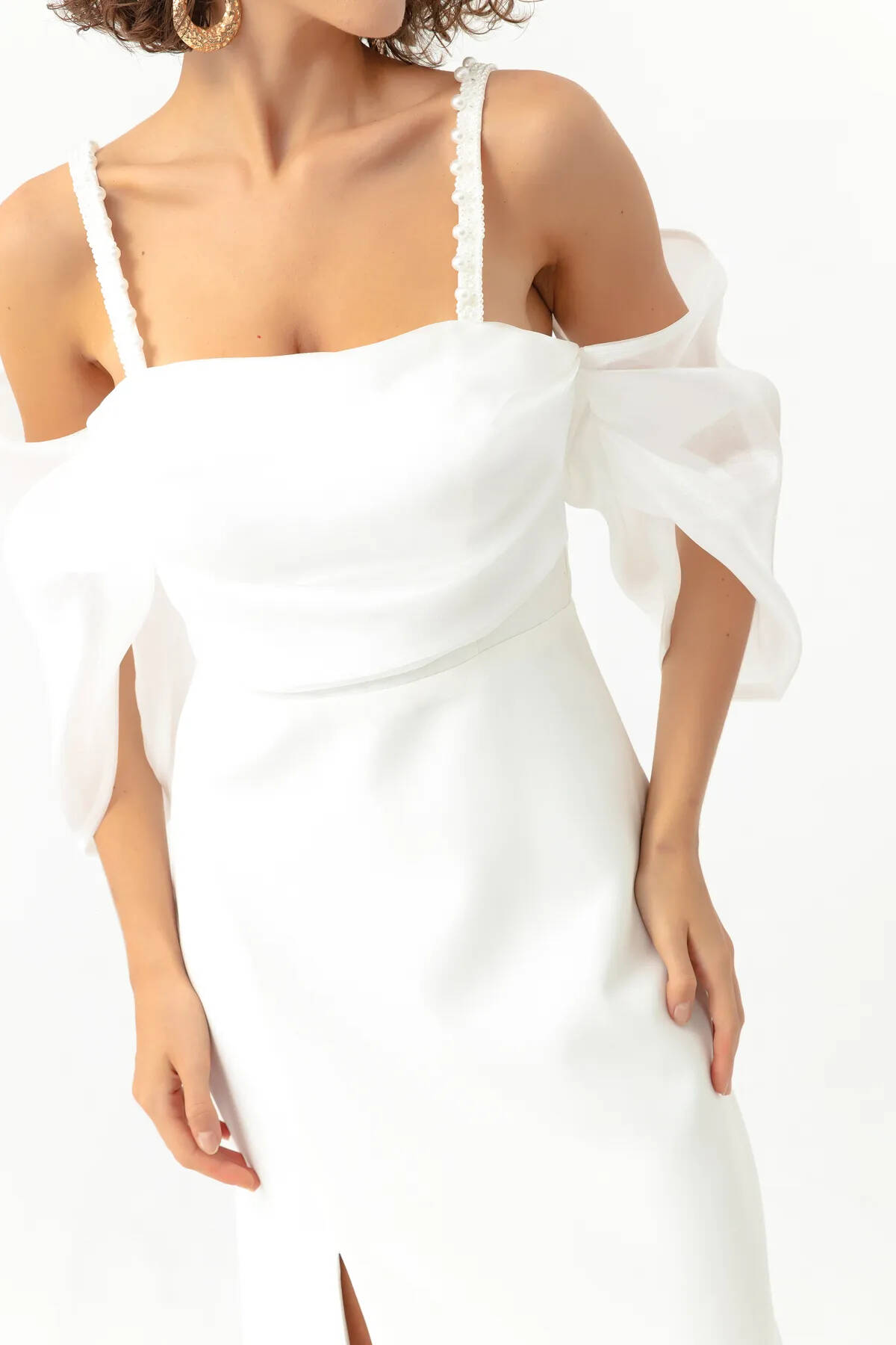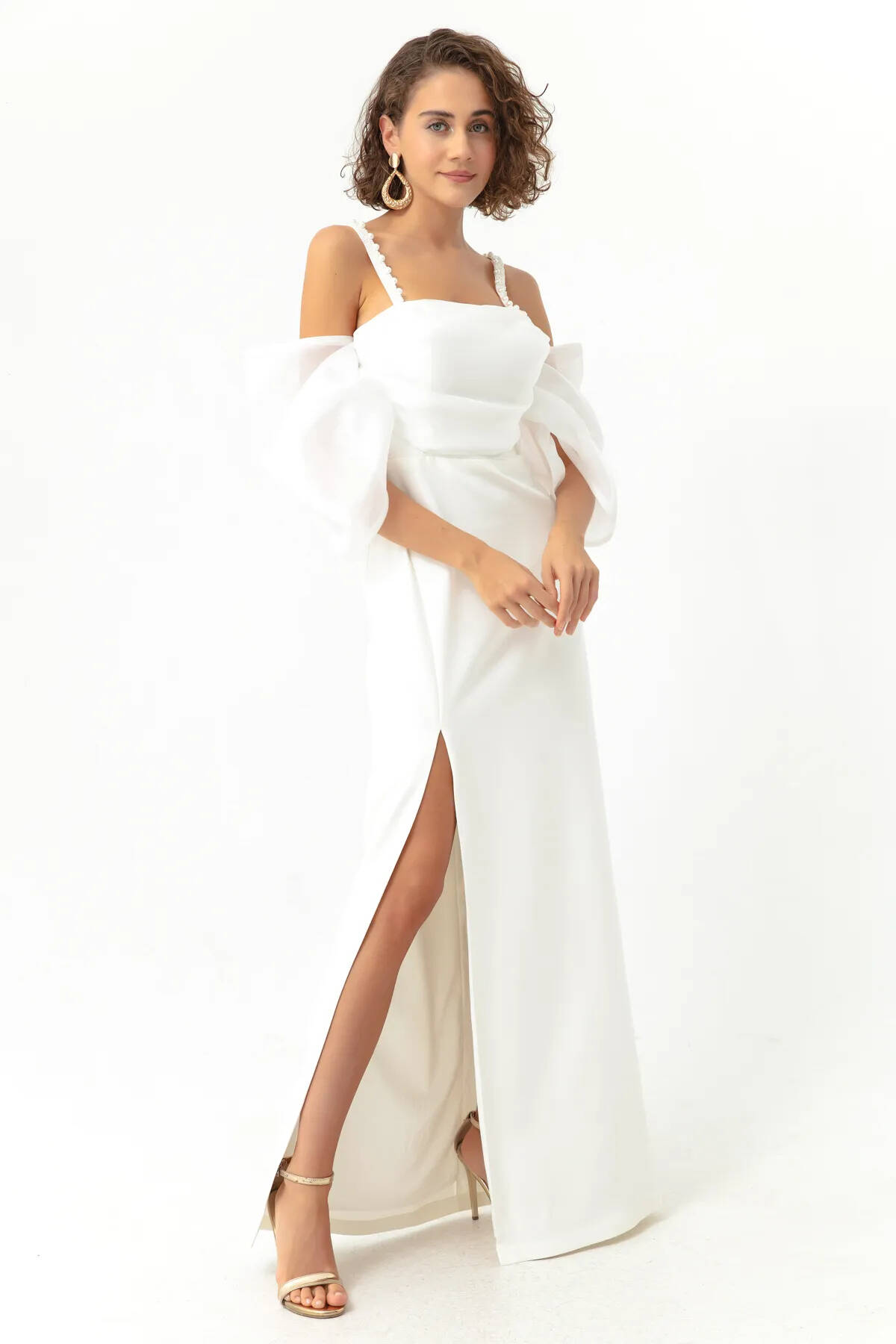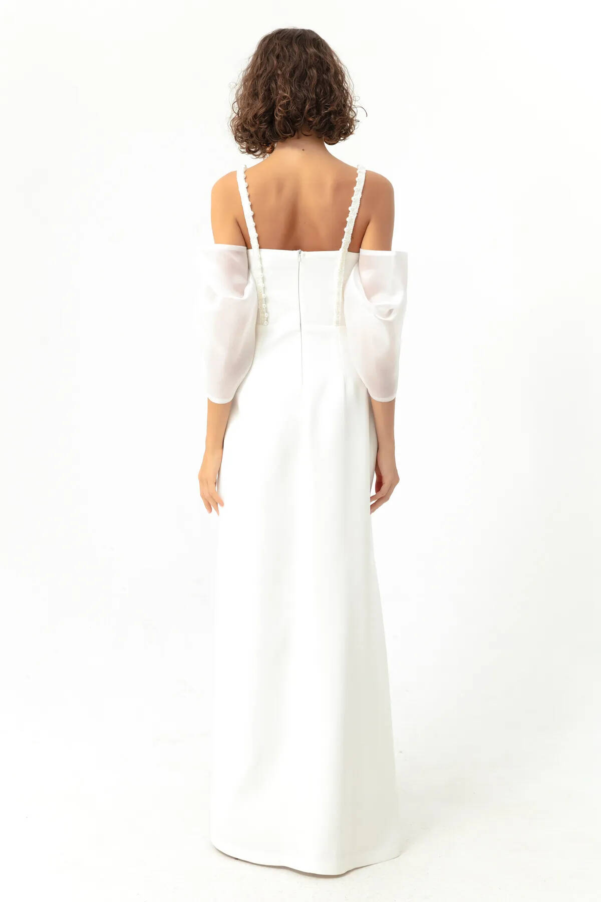 Ekru Kolları Şifon Yırtmaçlı Abiye 9705139.147