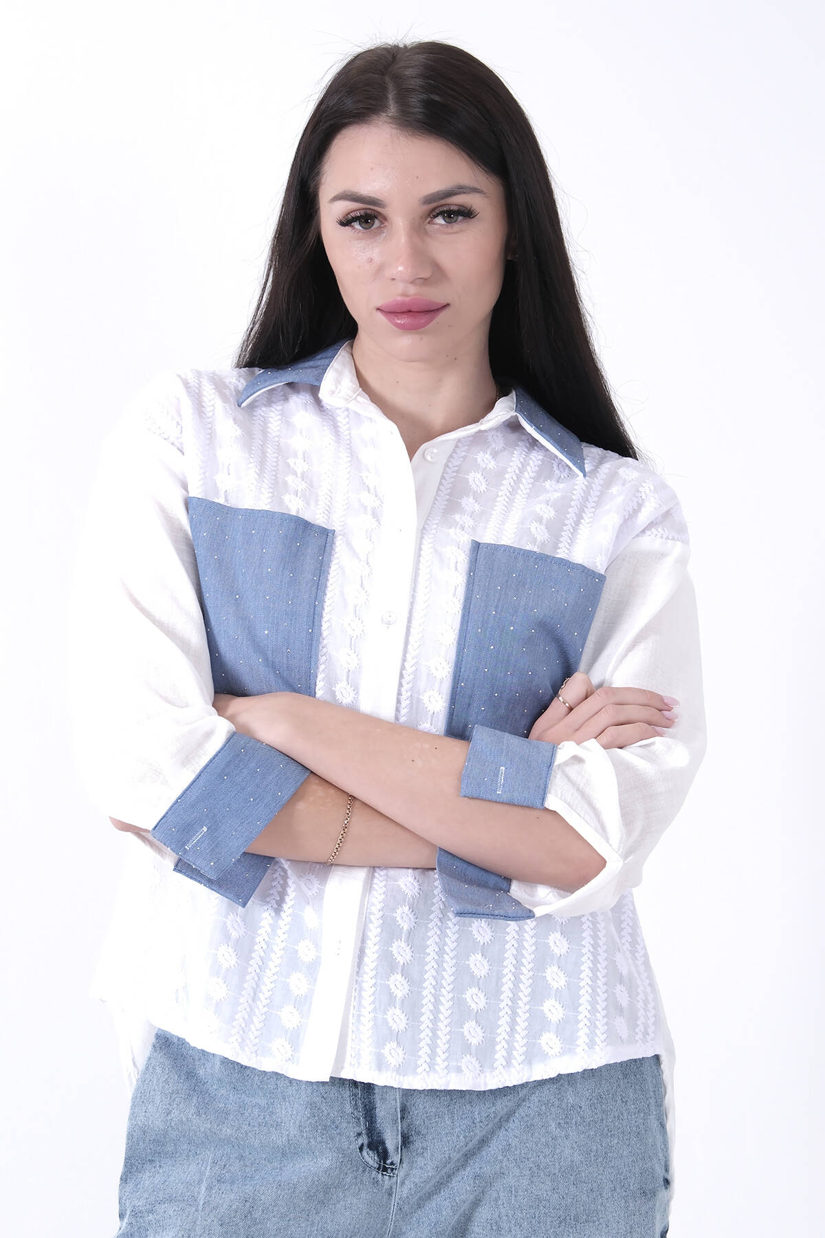 Ekru Kot Garnili Taşlı Gömlek 41650066.147