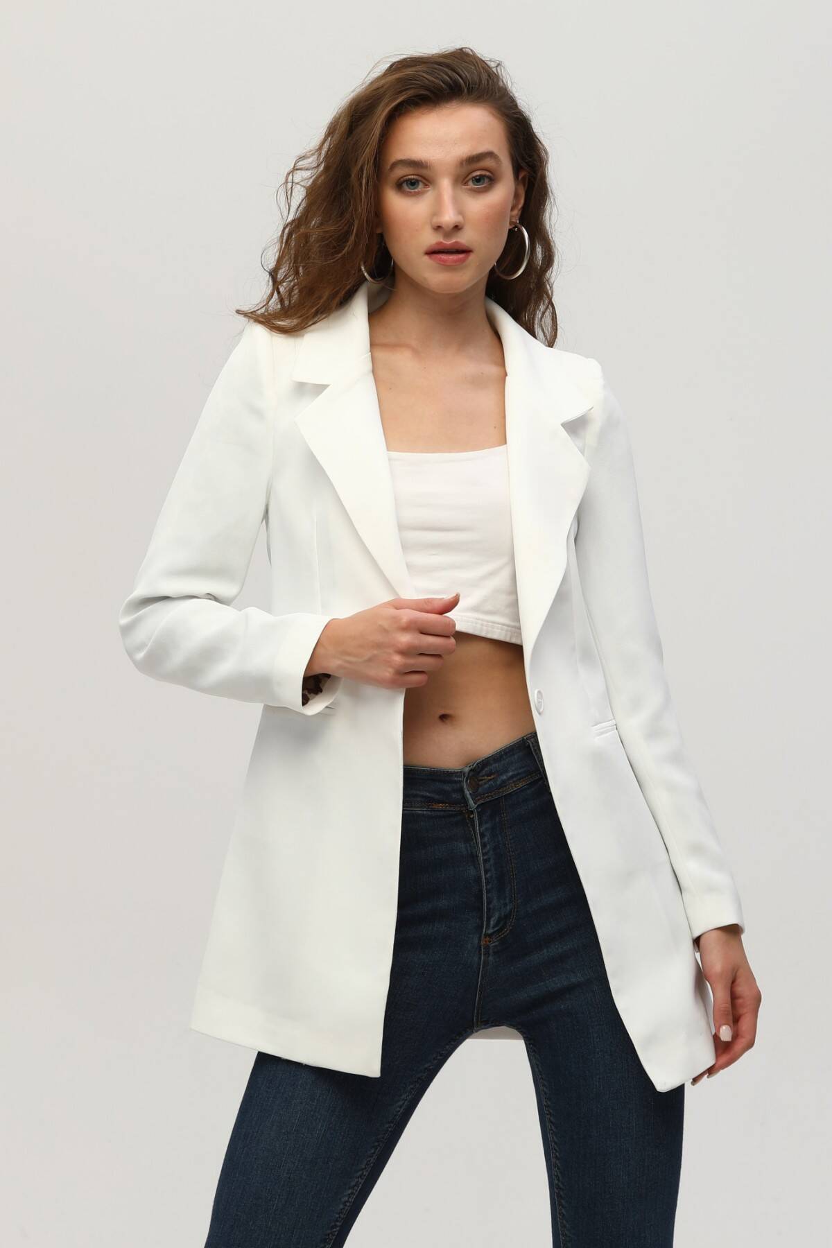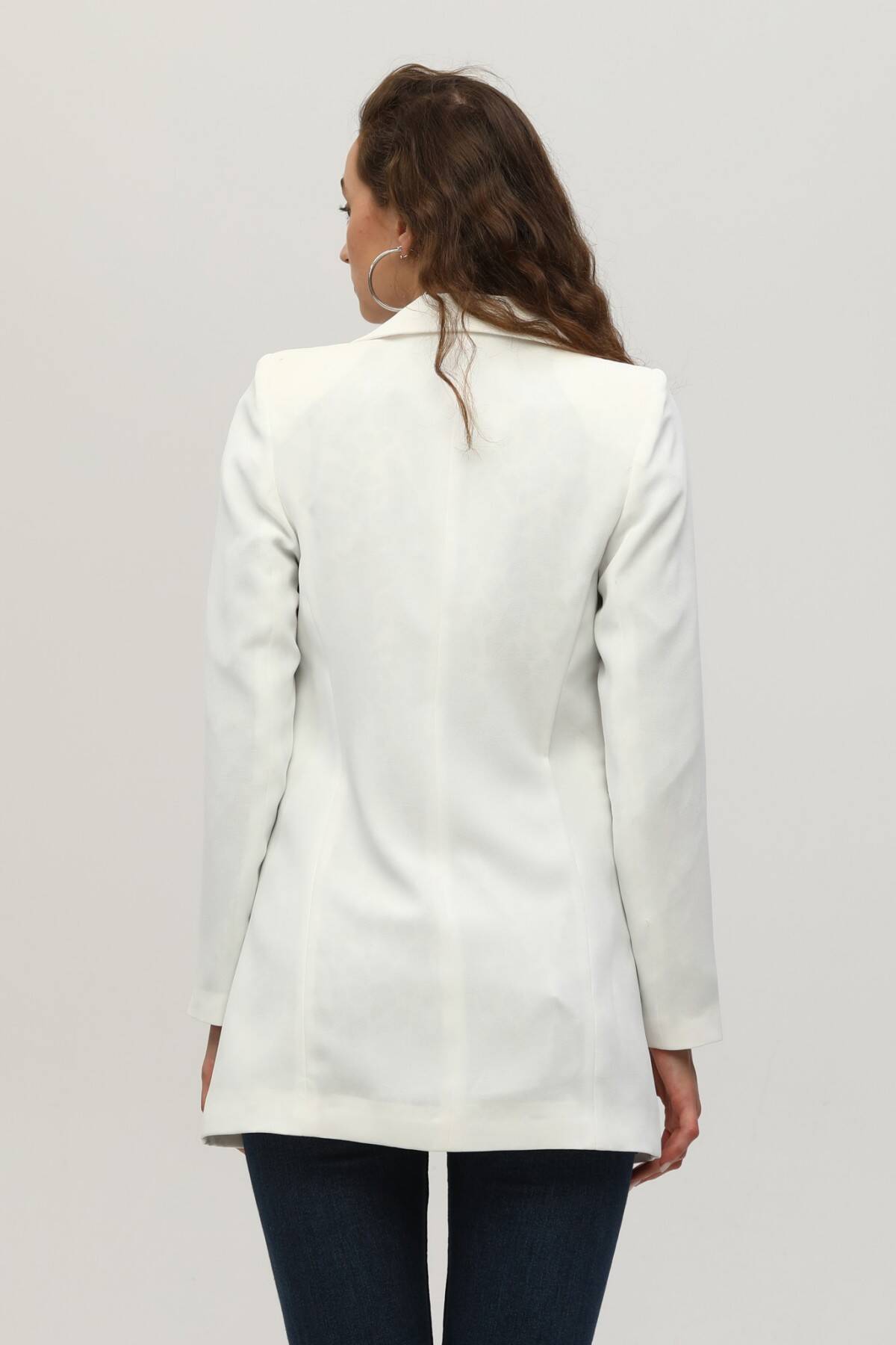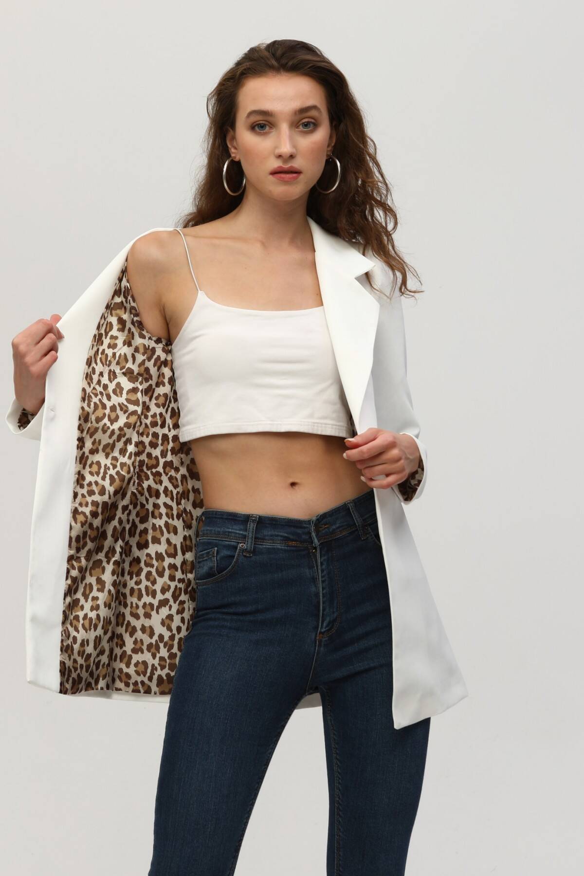 Ekru Leopar Astar Detaylı Krep Blazer Ceket 0105120.147