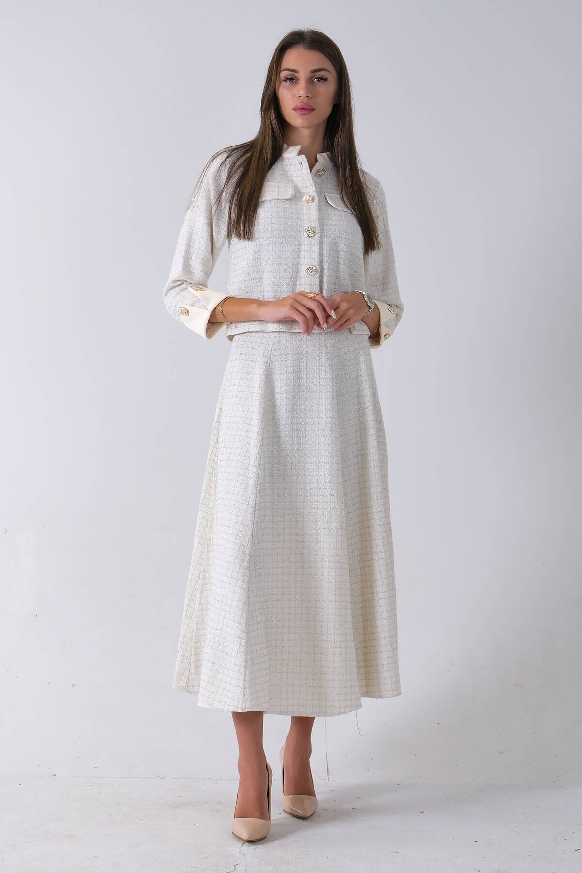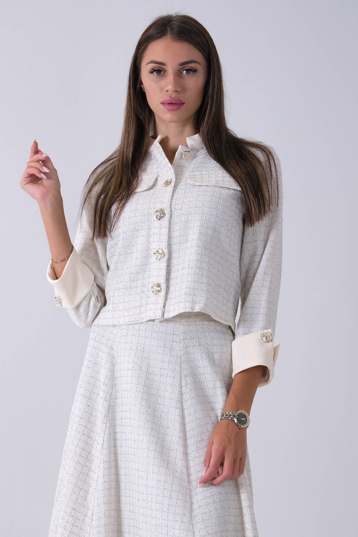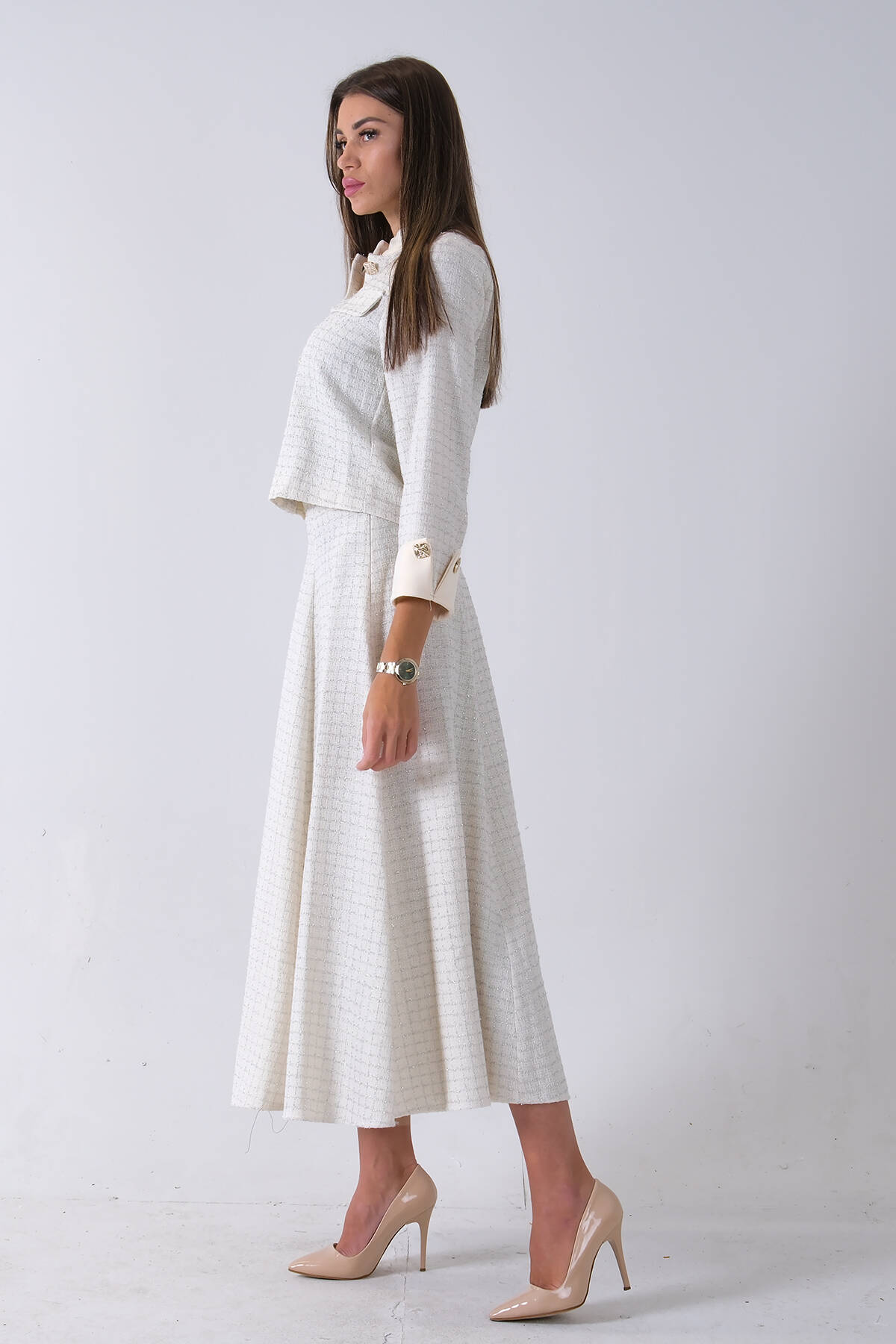 Ekru Önü Düğme Kapamalı Crop Ceket Etekli Tüvid Takım 45950601.147