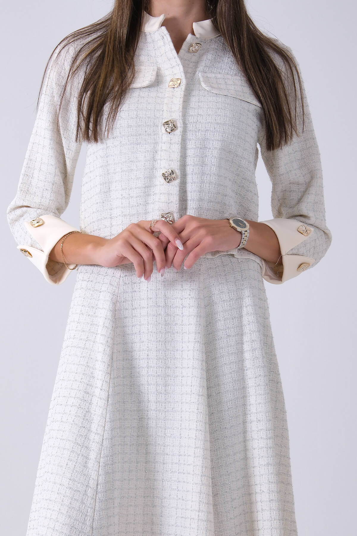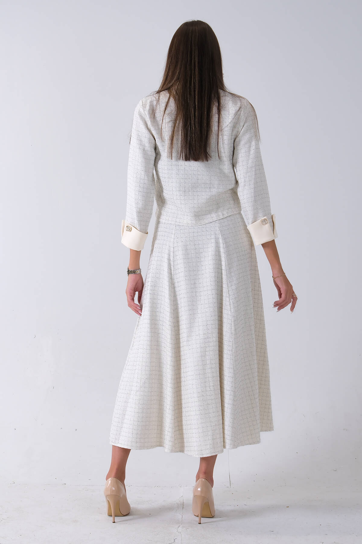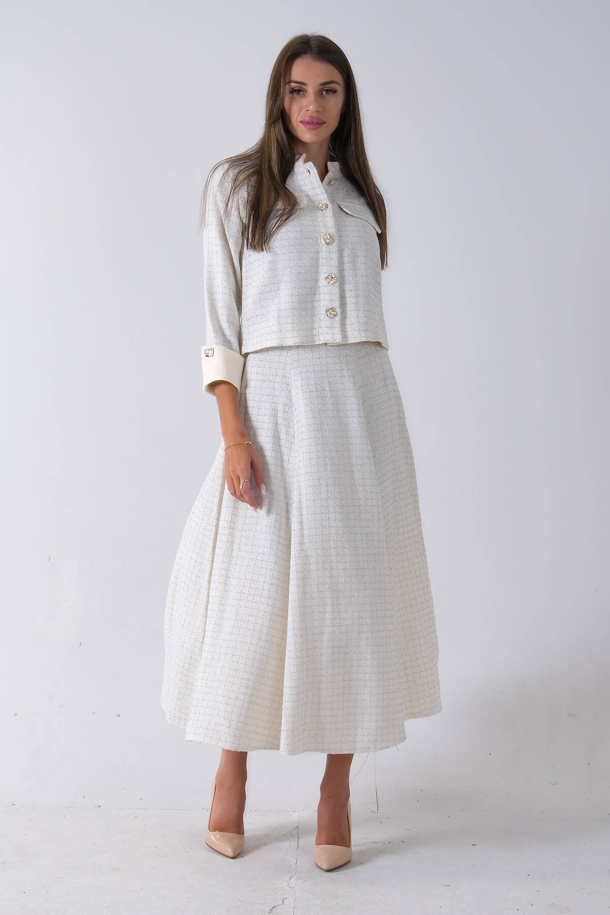 Ekru Önü Düğme Kapamalı Crop Ceket Etekli Tüvid Takım 45950601.147