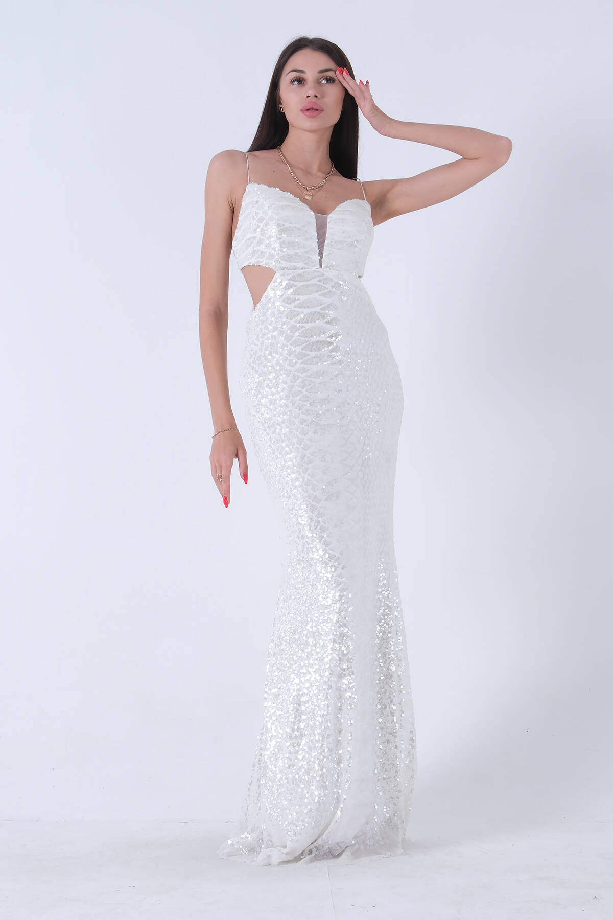 Uzun Sırt Ve Bel Dekolteli İnce Askılı Payetli Abiye