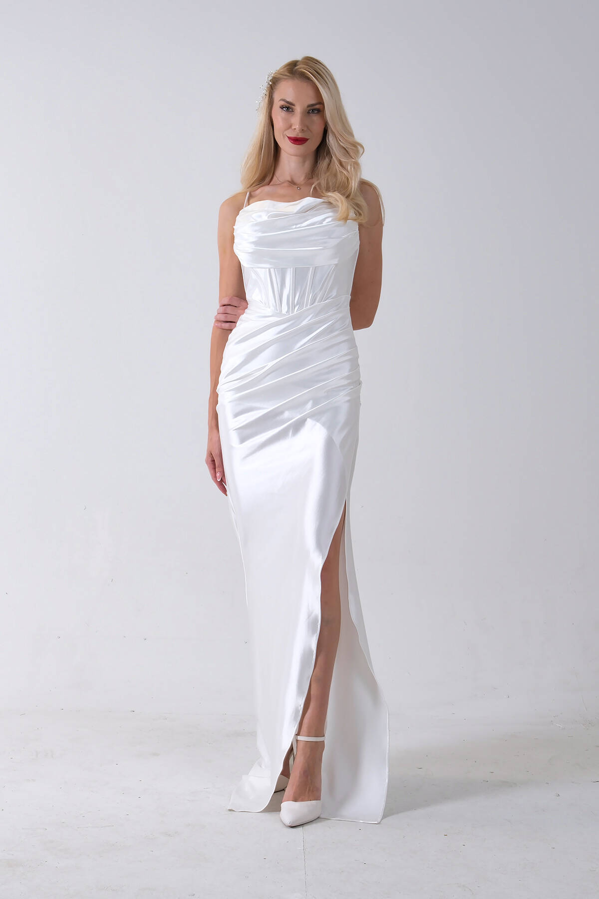 Ekru Sırtı Bağlamalı Yırtmaçlı Abiye 4522018.147