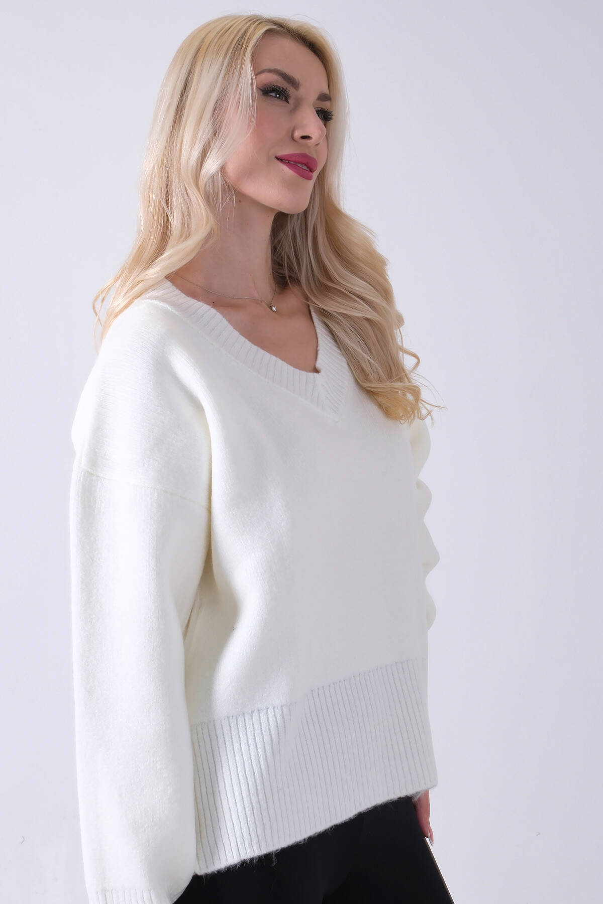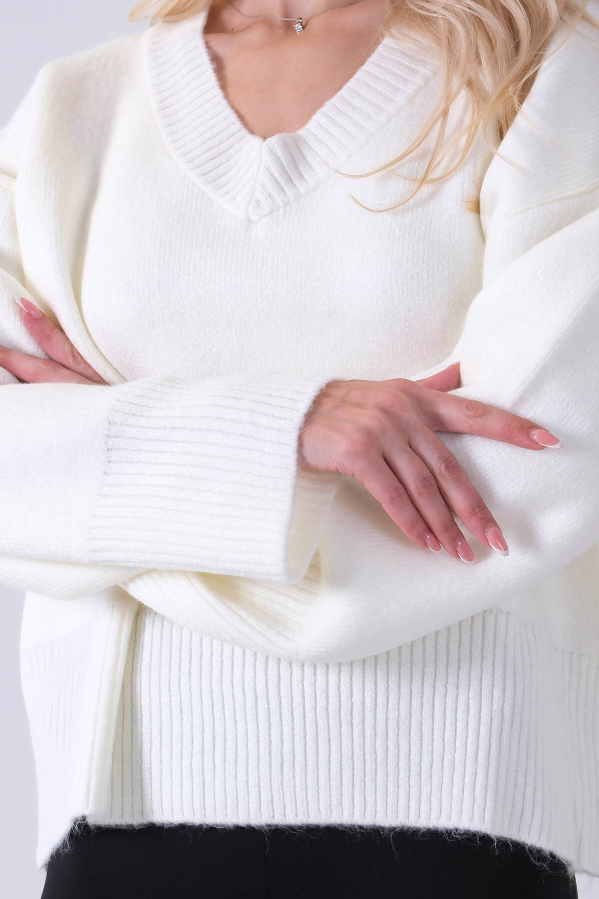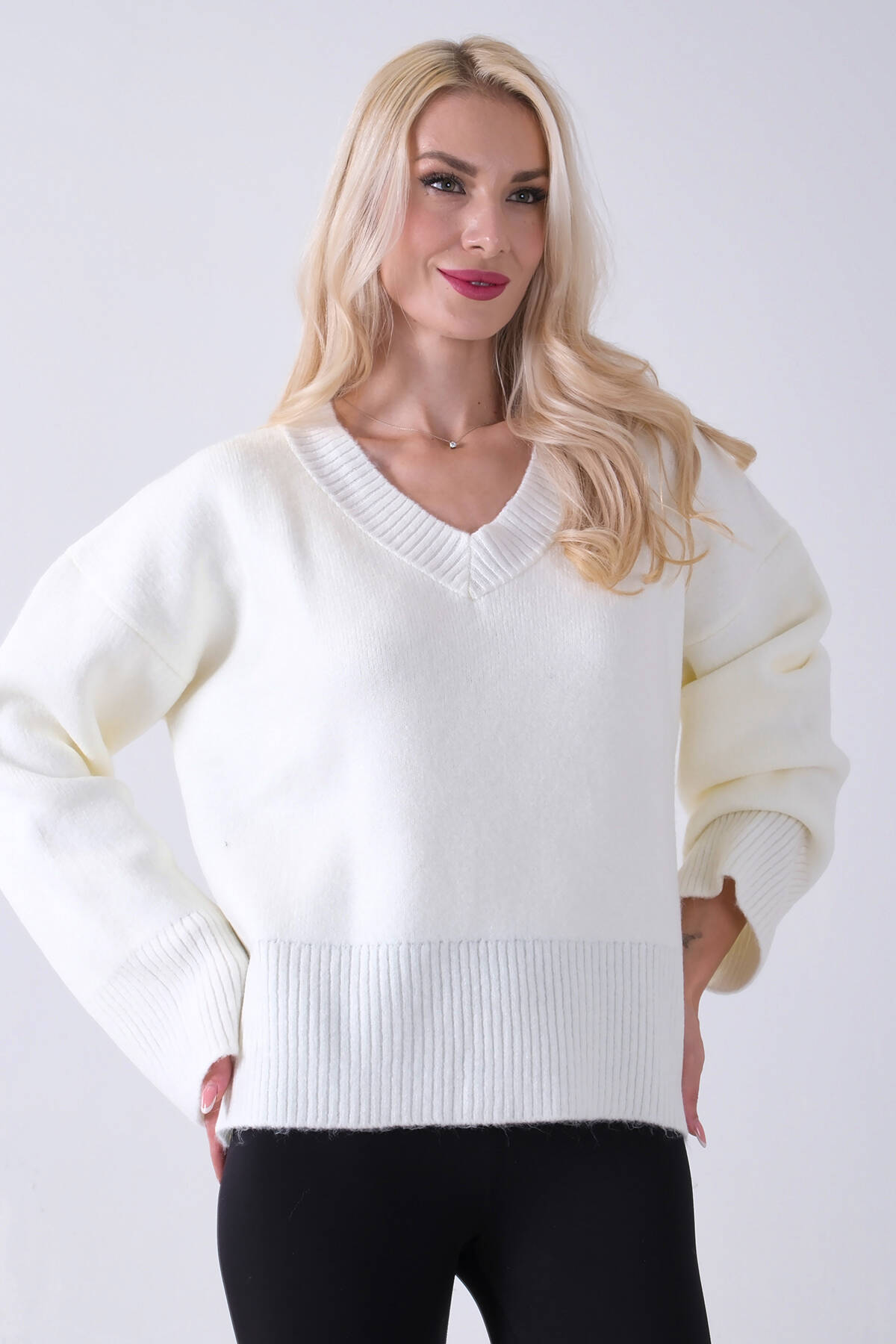 Ekru V Yaka Beli Lastikli Triko Kazak 46892623.147