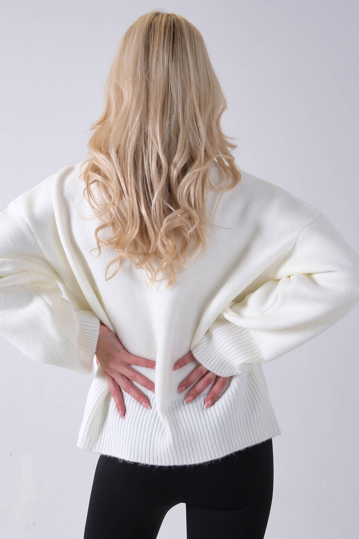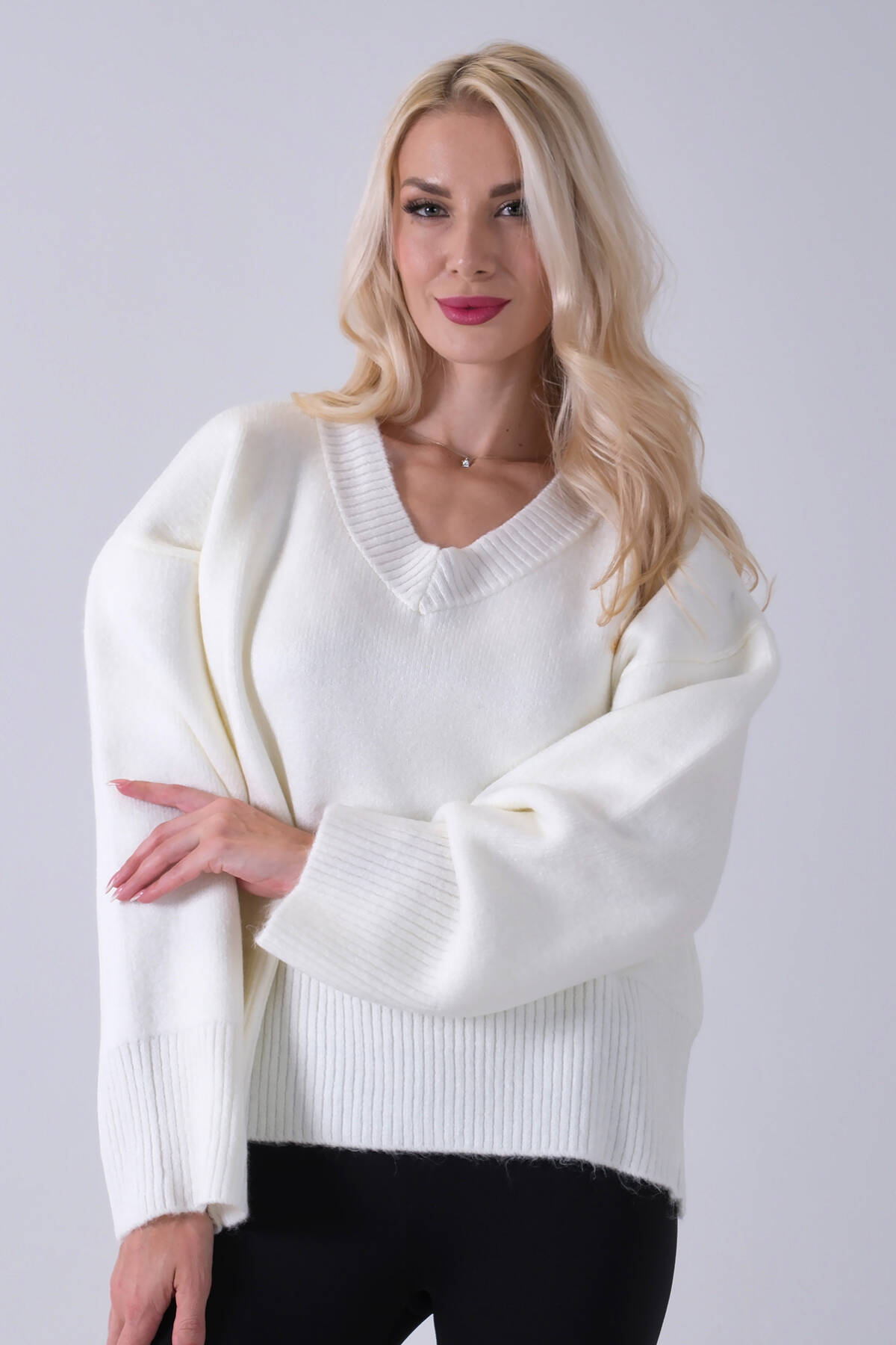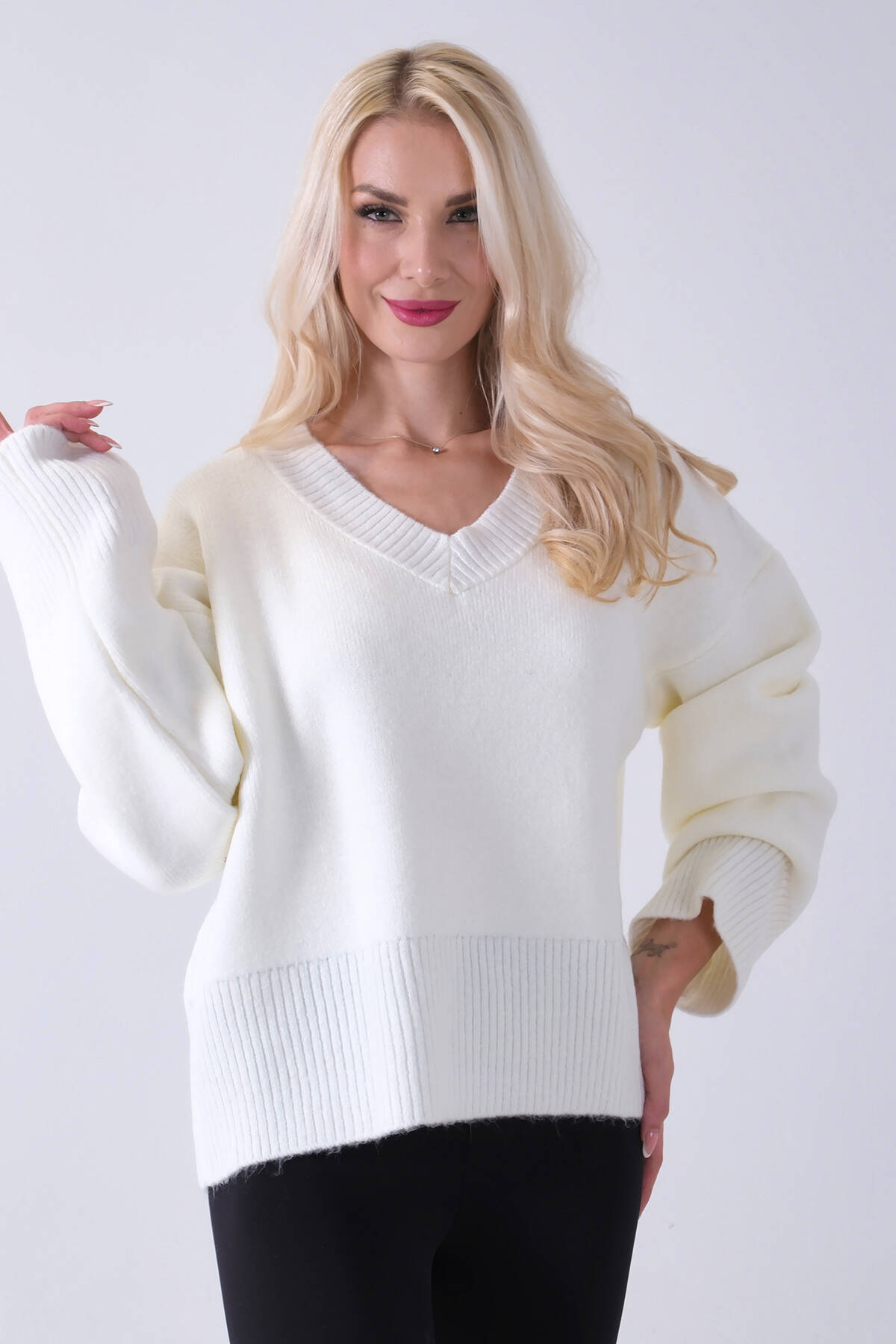 Ekru V Yaka Beli Lastikli Triko Kazak 46892623.147