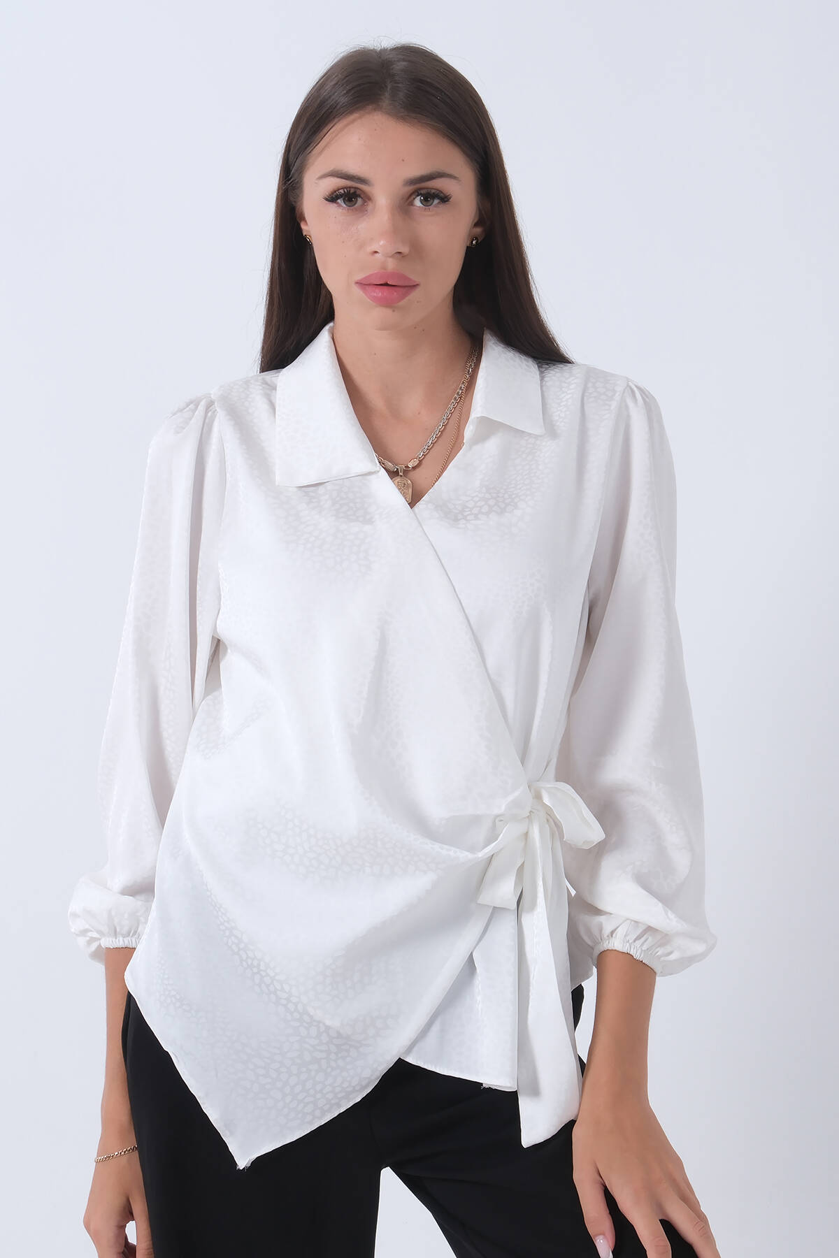 Ekru Yandan Bağlama Detaylı Bluz Gömlek 41620075.147