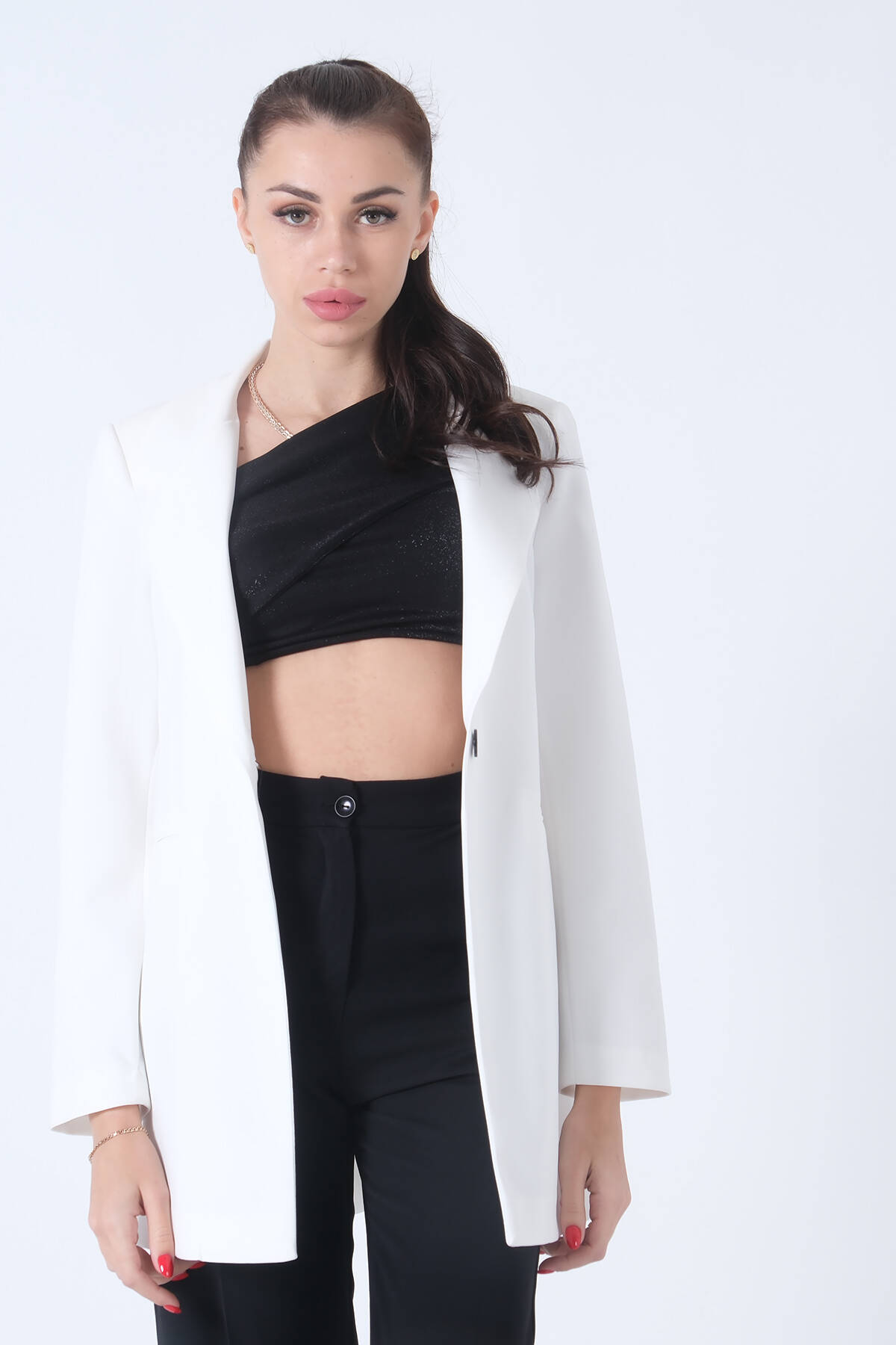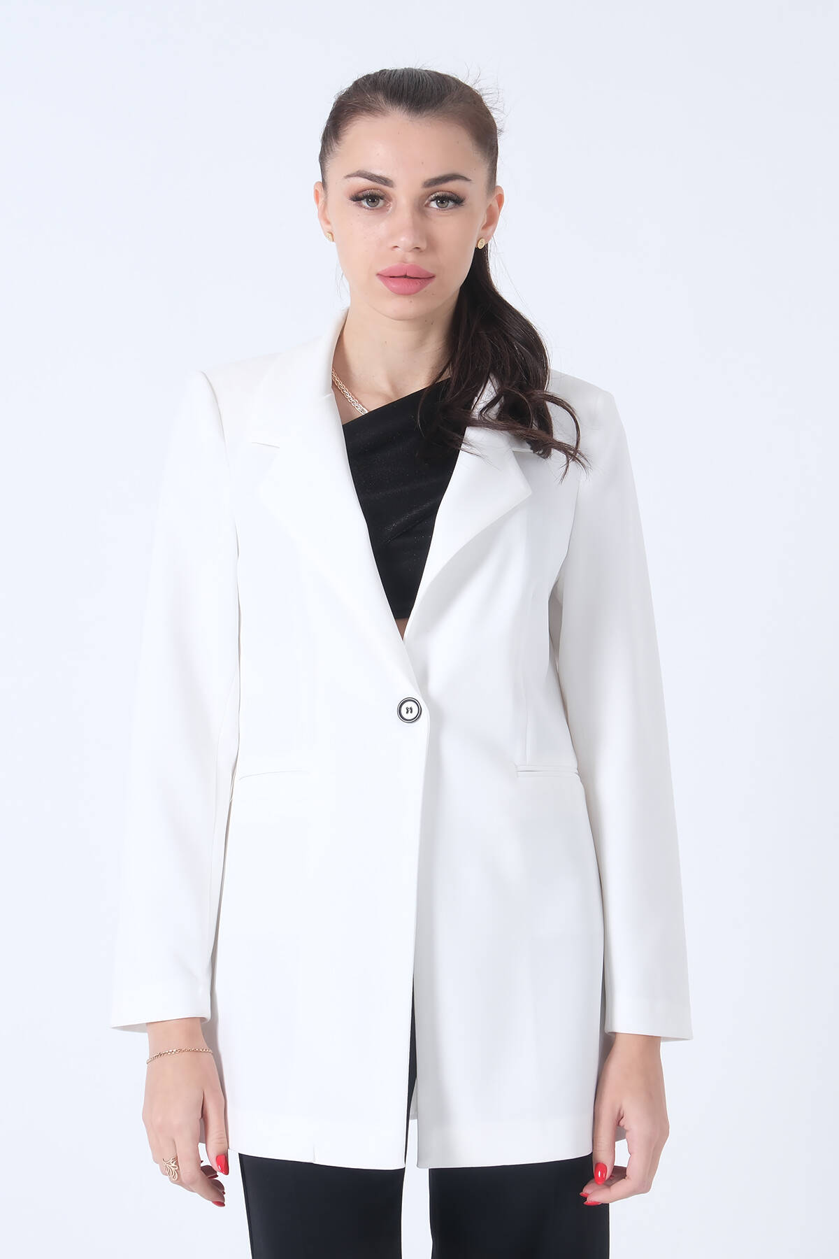 Modelin Ölçüleri : Boy: 1.80 cm / Göğüs: 88 cm / Bel: 69 cm /Basen : 94 cm Mankenin Üzerindeki Ürün 36/S Bedendir %100 Polyester Uzun Kol Klasik Yaka Zebra Astar Detaylı Tek Düğmeli Vatkalı Çift Cepli Krep Kumaş Blazer Ceket Ürün Boyu : 80 cm Stüdyo Çekimlerinde Renkler Işık Farklılıgından Dolayı Değişiklik Gösterebilir