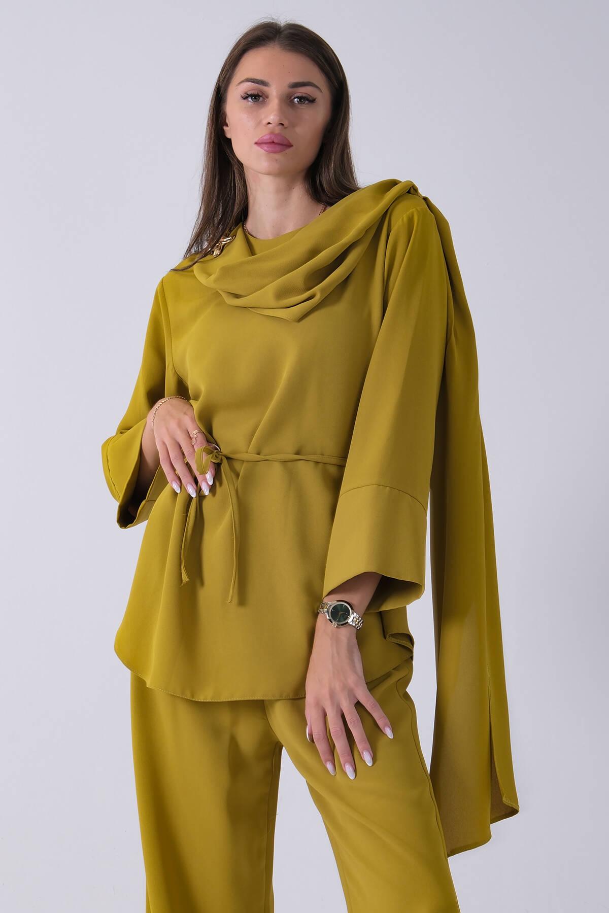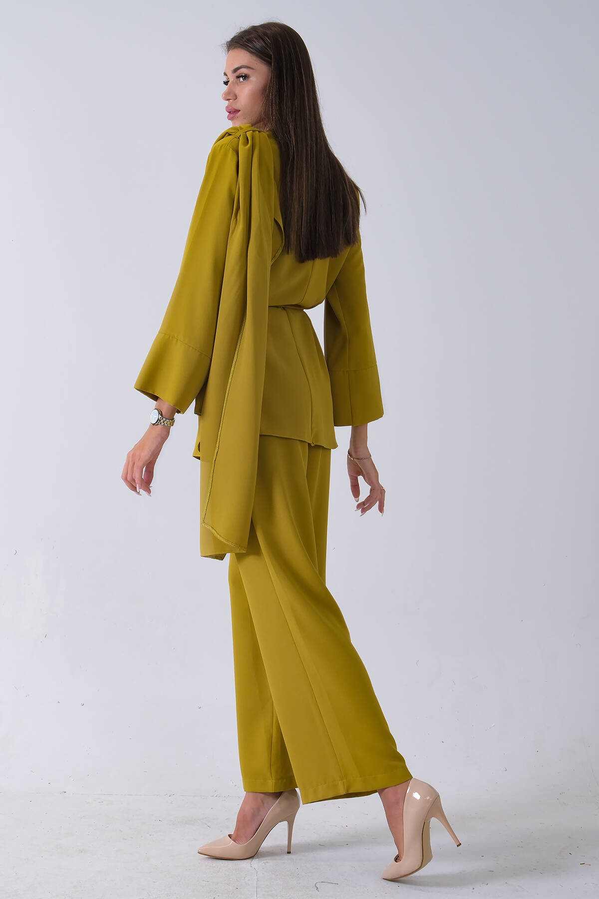 Fıstık Şal Yaka Üzeri Broş Detaylı Pantolonlu Takım 4592270.22