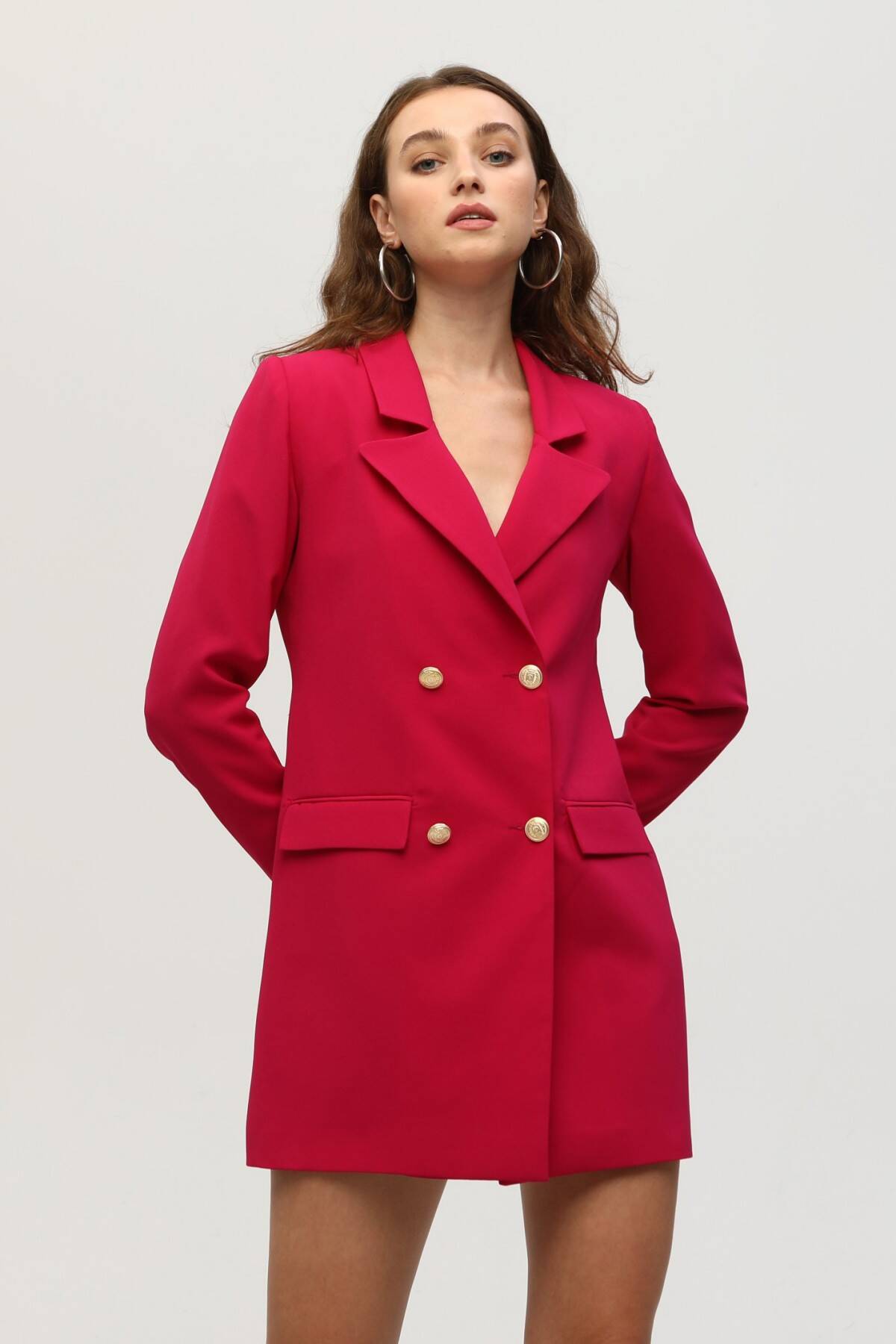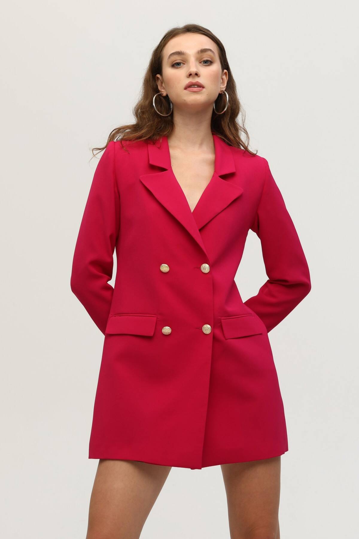 Fuşya Astarlı Düğme Kapamalı Blazer Ceket 0105123.12
