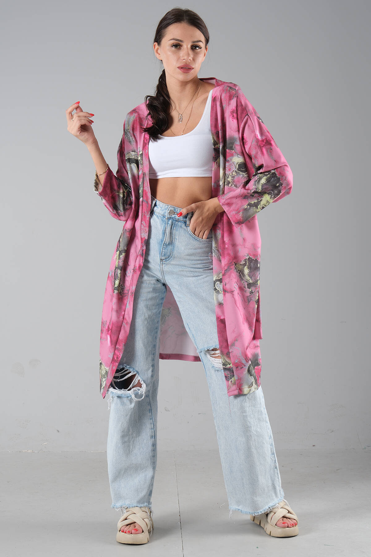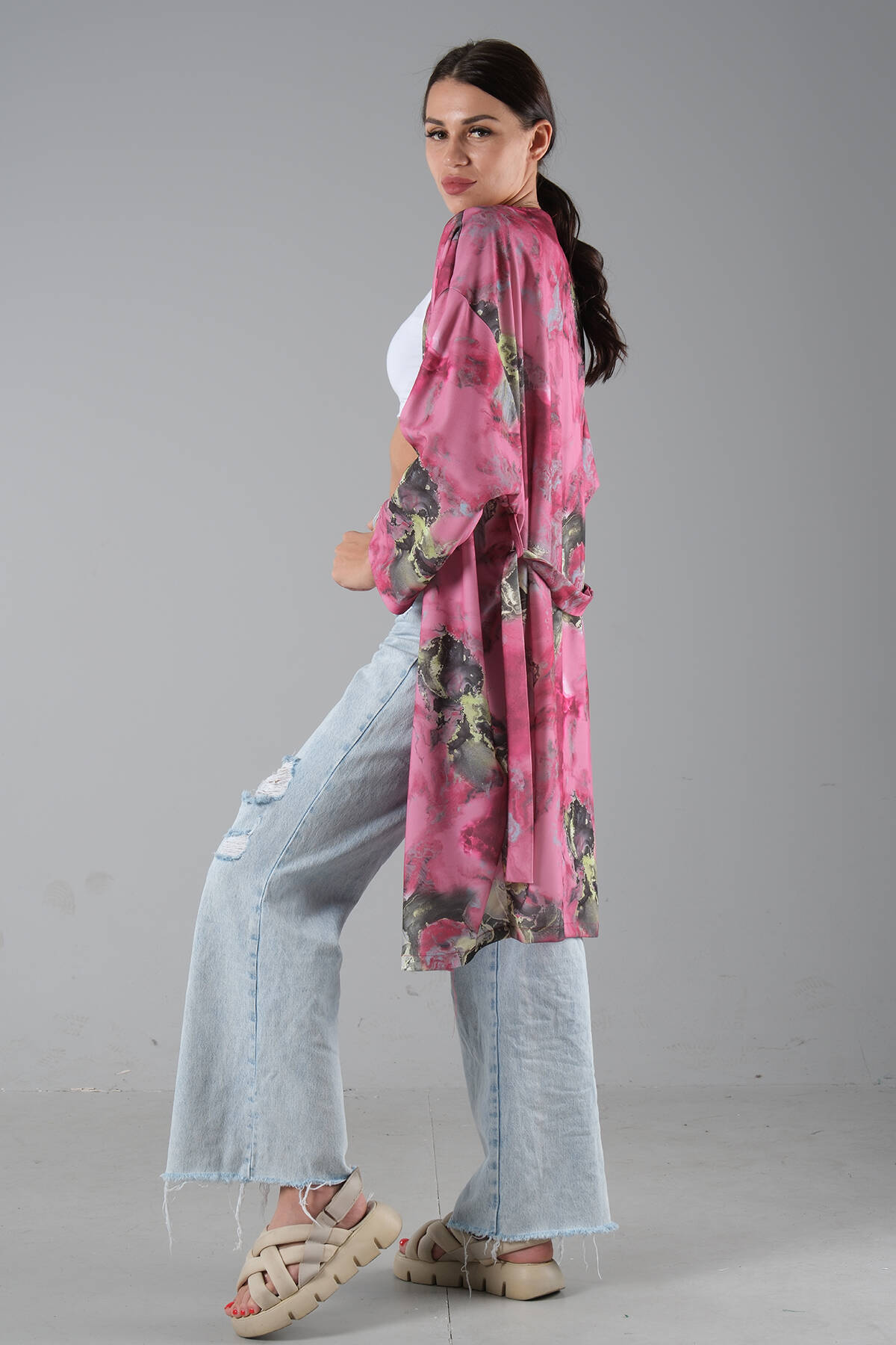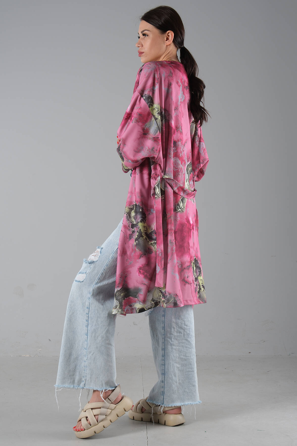 Fuşya Desenli Krep Kimono 0107129.12