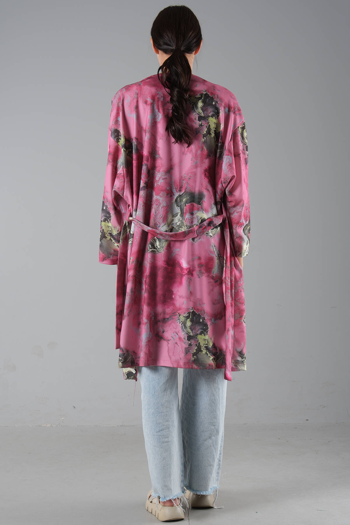 Fuşya Krep Belden Kuşaklı Kimono 0107121.12