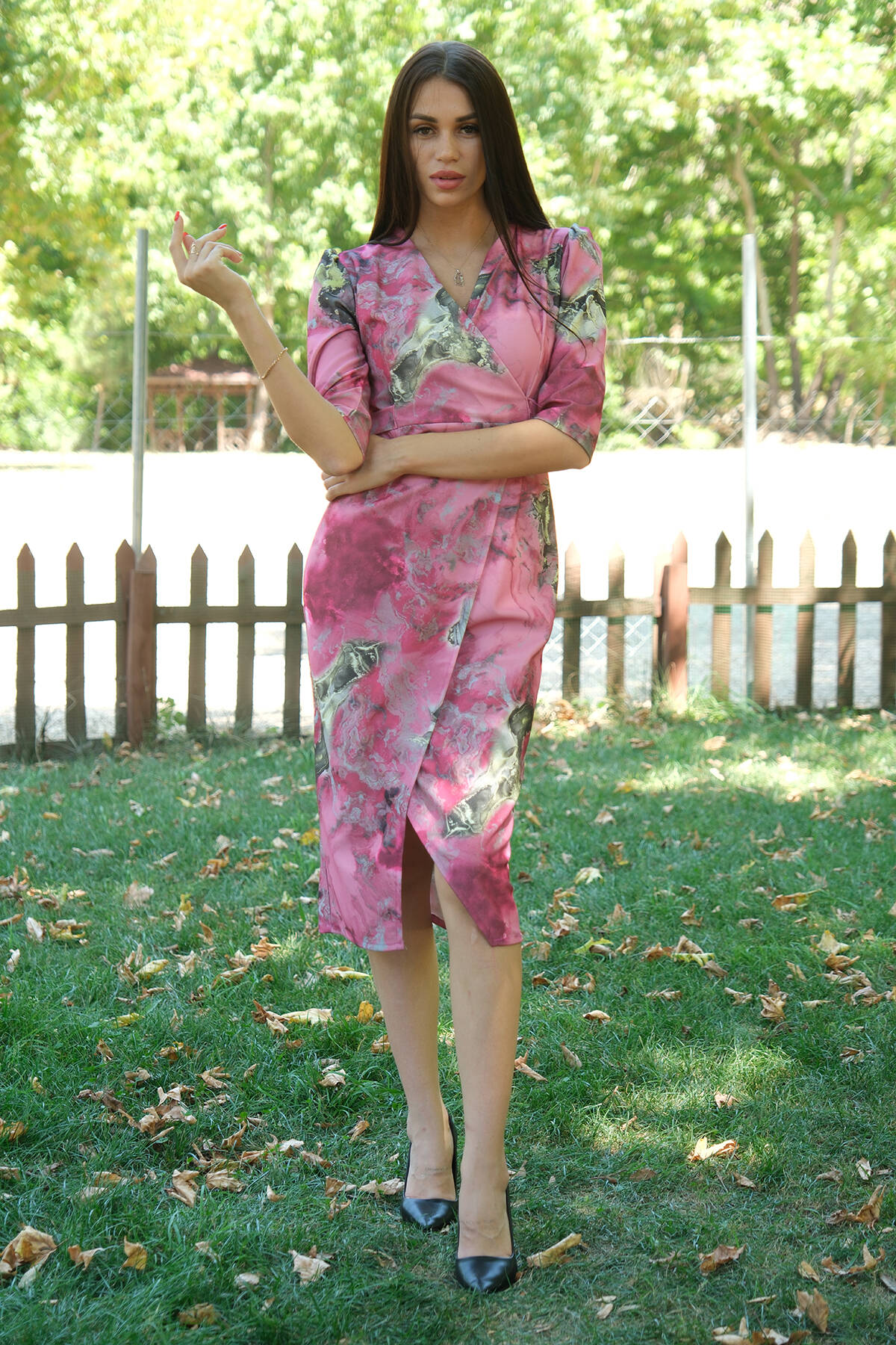 Fuşya Kruvaze Yaka Midi Boy Krep Elbise 01040101.12