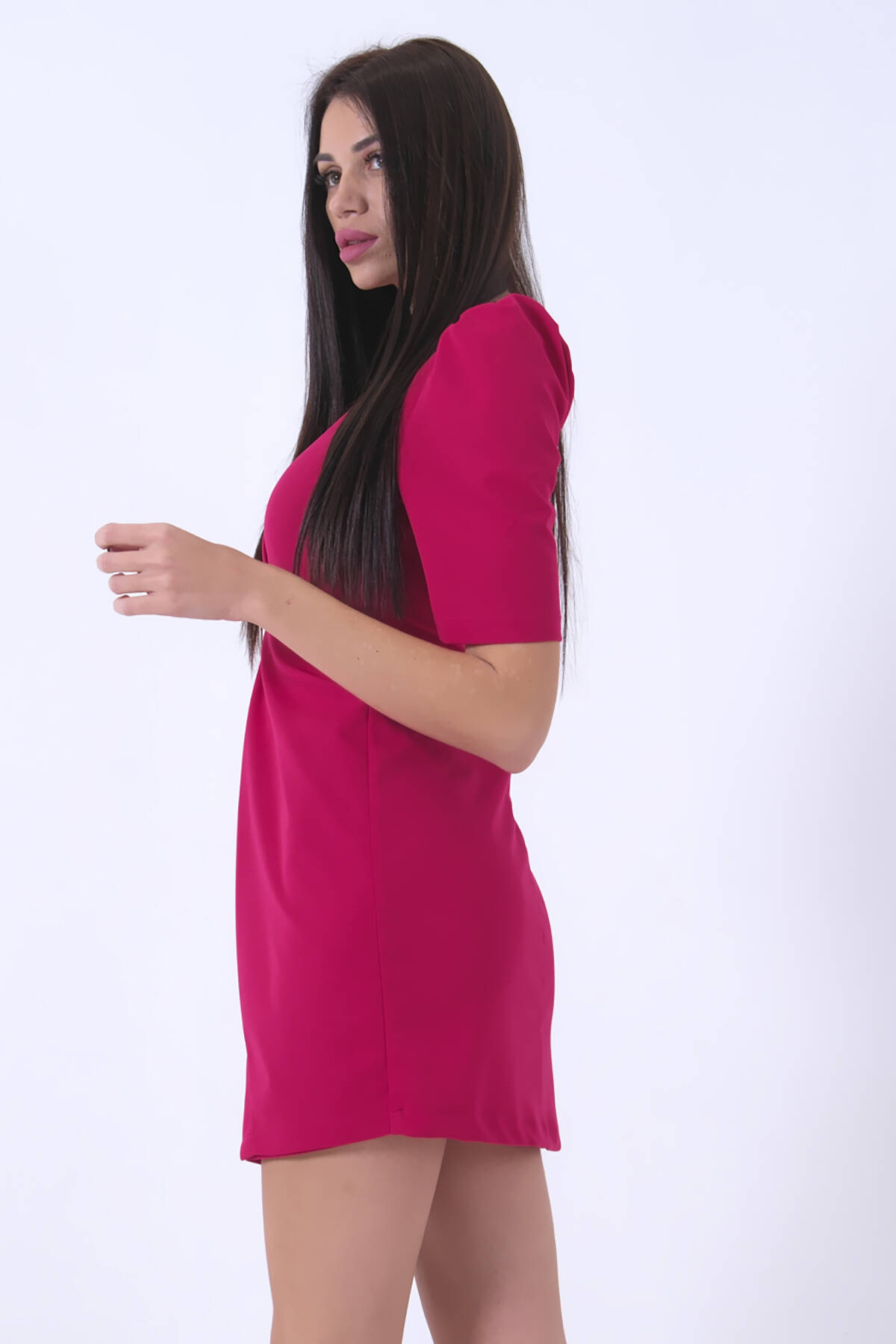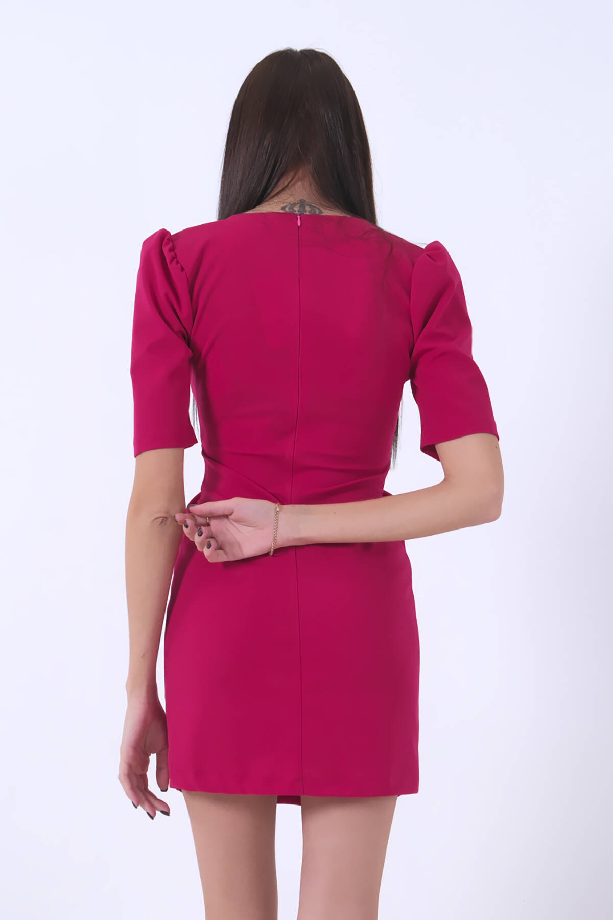 Modelin Ölçüleri : Boy: 1.75 cm / Göğüs: 90 cm / Bel: 60 cm /Basen : 90 cm Mankenin Üzerindeki Ürün 36/S Bedendir %100 Polyester Kruvaze Yaka Eteği Çapraz Önden Yırtmaçlı Kısa Elbise Ürün Boyu: 85 cm Stüdyo Çekimlerinde Renkler Işık Farklılıgından Dolayı Değişiklik Gösterebilir.