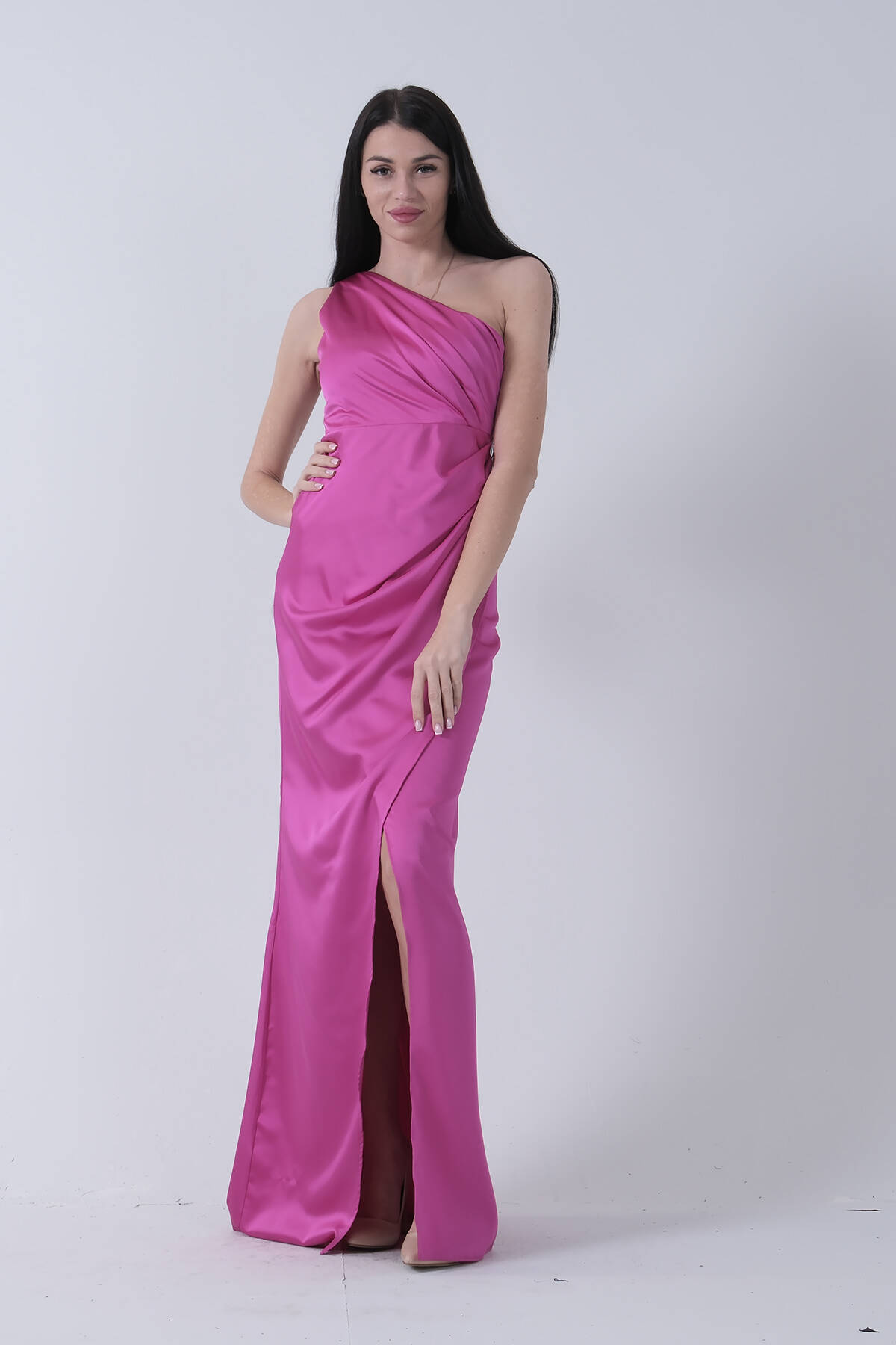 Fuşya Önü Yırtmaçlı Tek Omuz Şık Abiye 0801563.12