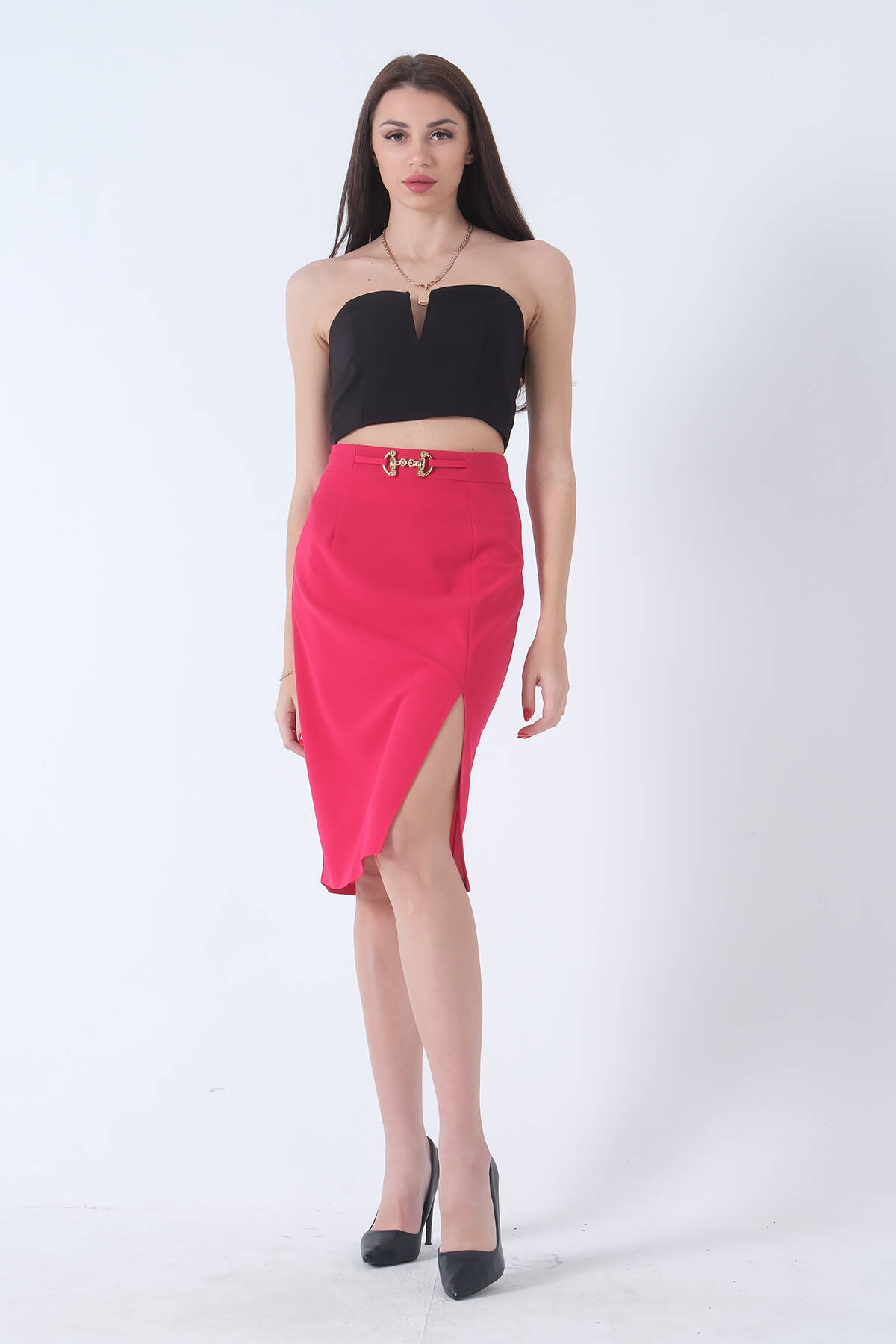 Kısa Yandan Yırtmaçlı Kemer Toka Detaylı Kalem Etek