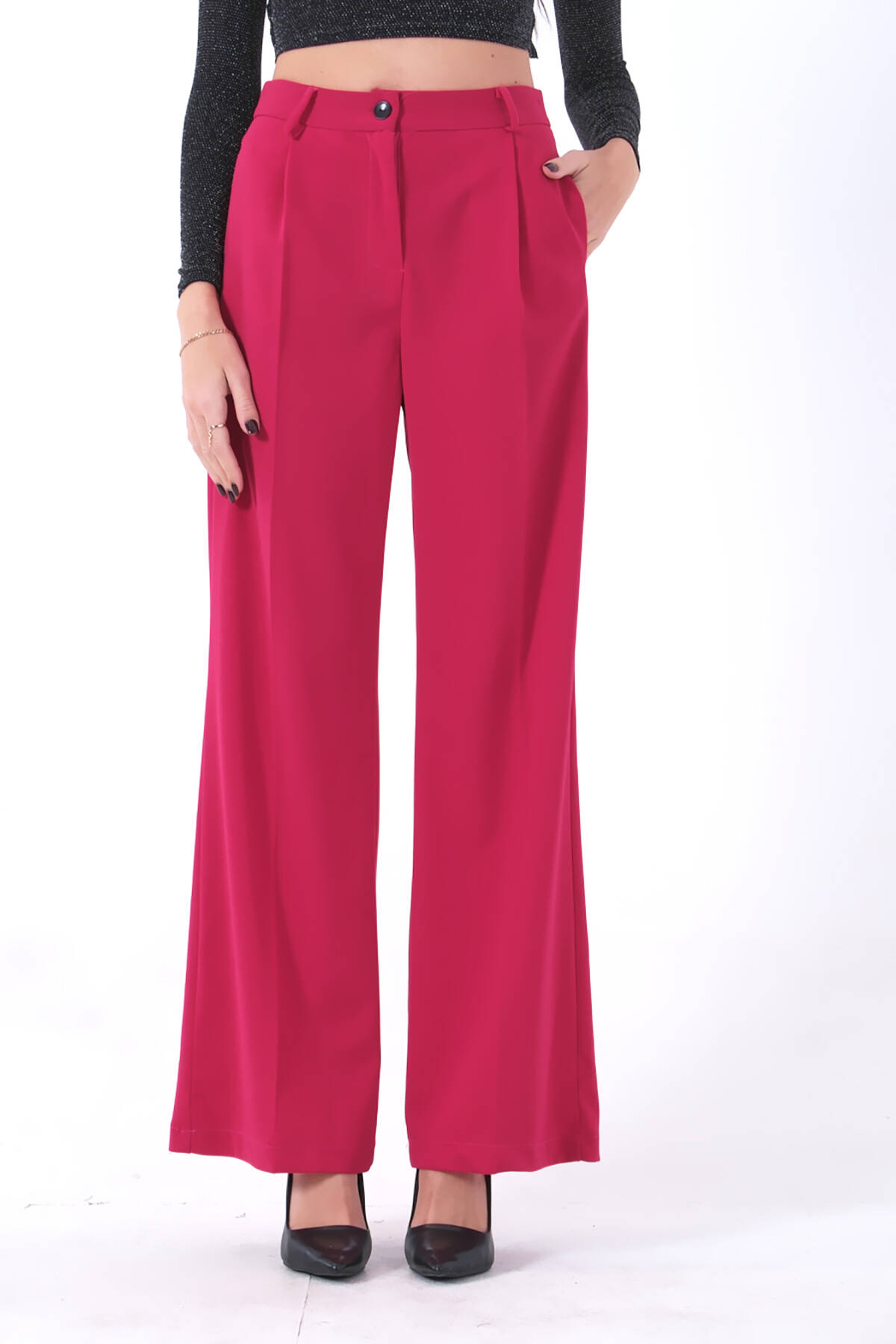 Modelin Ölçüleri : Boy: 1.80 cm / Göğüs: 88 cm / Bel: 69 cm /Basen : 94 cm Mankenin Üzerindeki Ürün 36/S Bedendir %100 Polyester Yüksek Bel Bol Paça Palazzo Pantolon Ürün Boyu : 108 cm Stüdyo Çekimlerinde Renkler Işık Farklılıgından Dolayı Değişiklik Gösterebilir