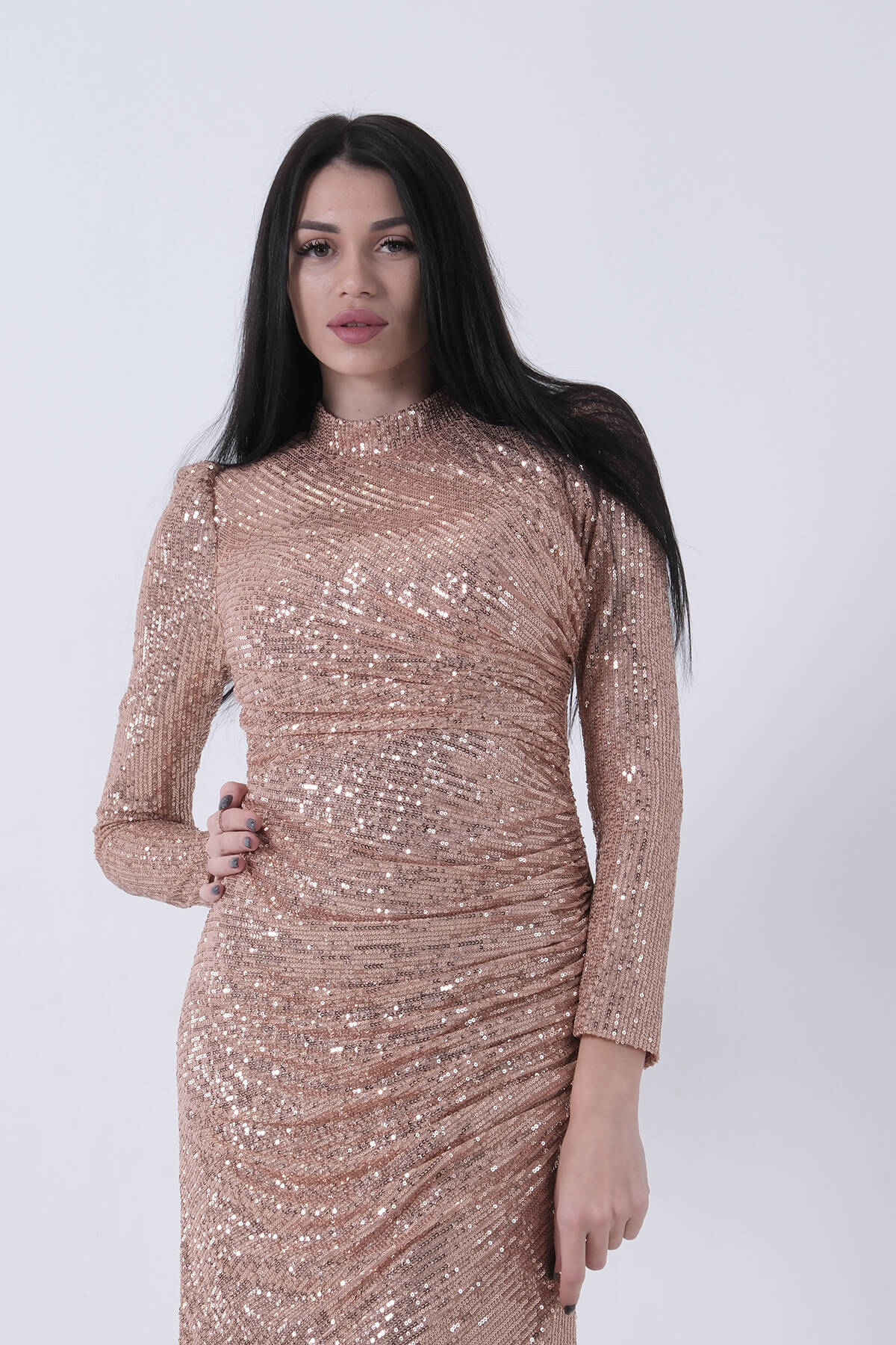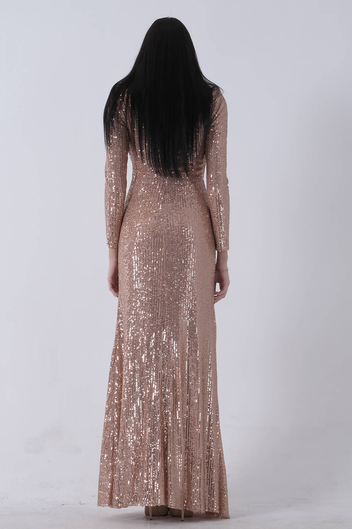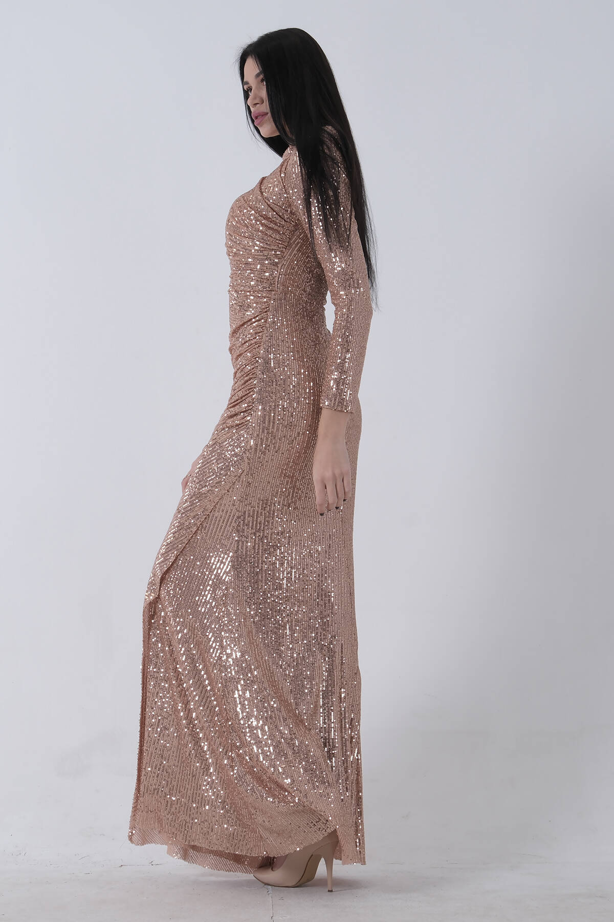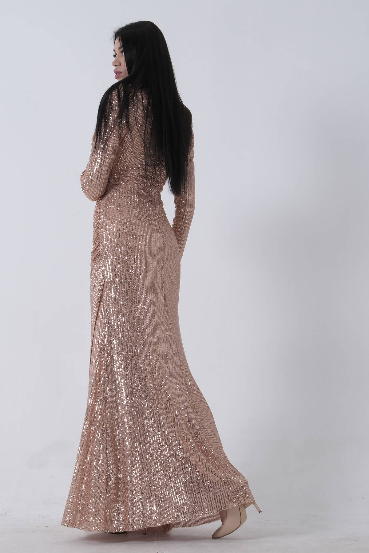 Gold Bisiklet Yaka Pul Payetli Yırtmaçlı Abiye 0801057.122