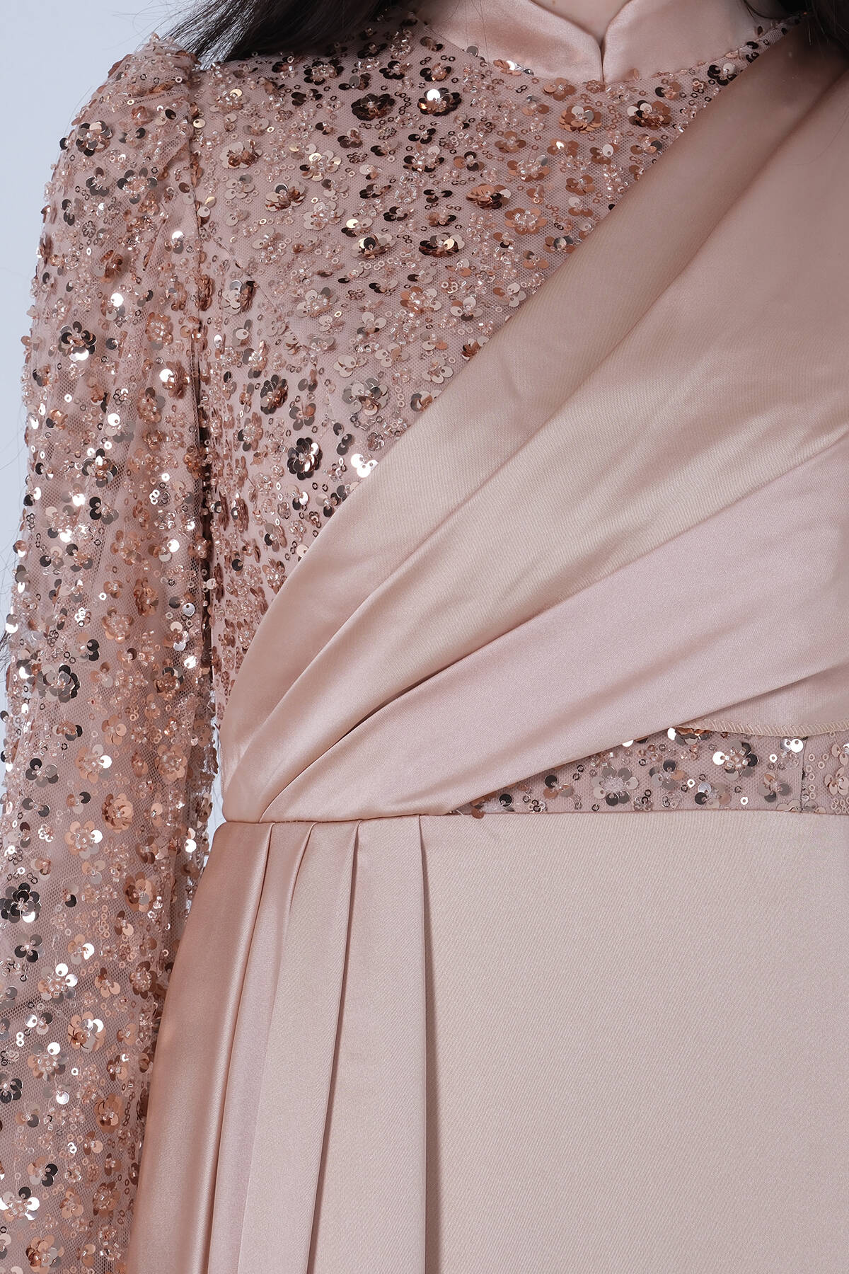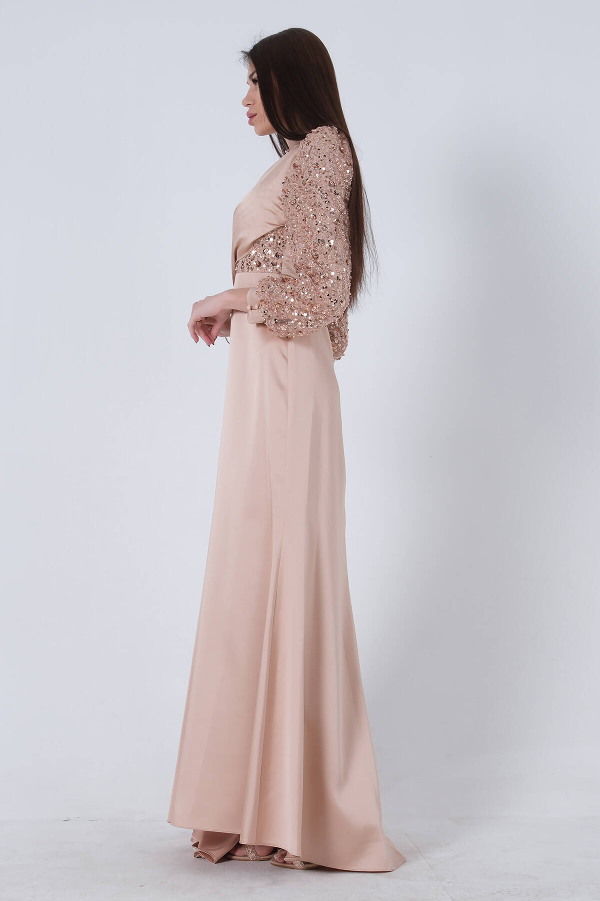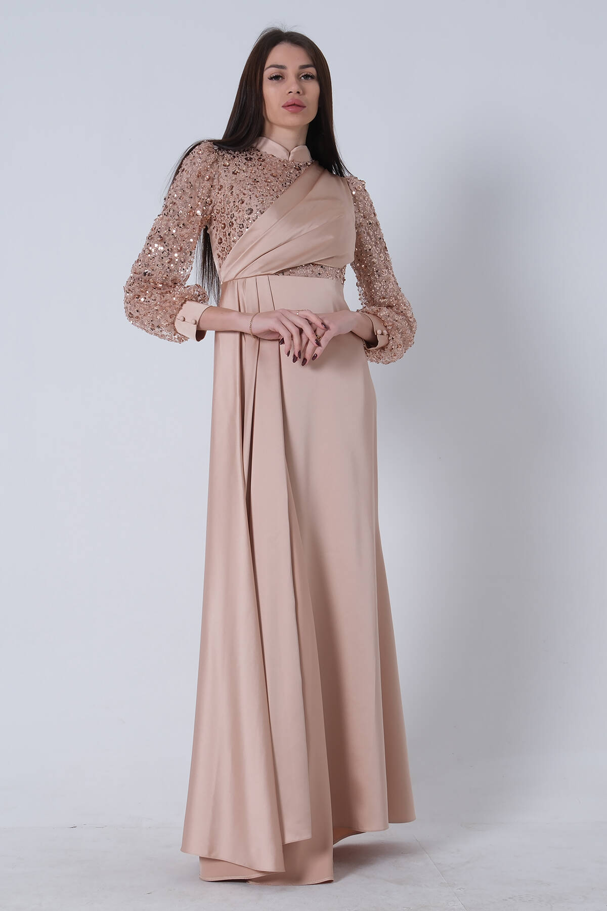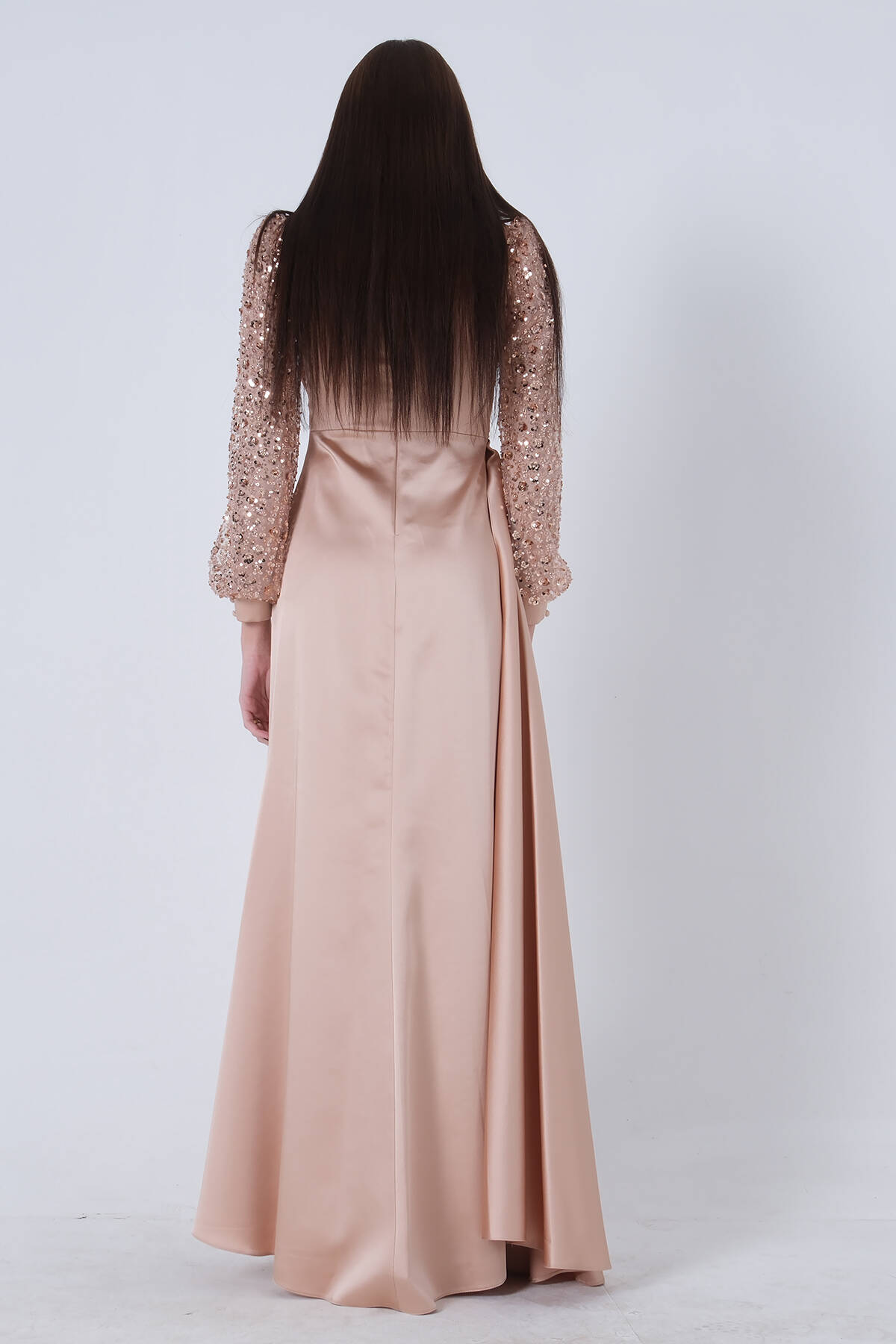Gold Drapeli Payet Üst Detaylı Eteği Saten Tesettür Abiye 6502504.122
