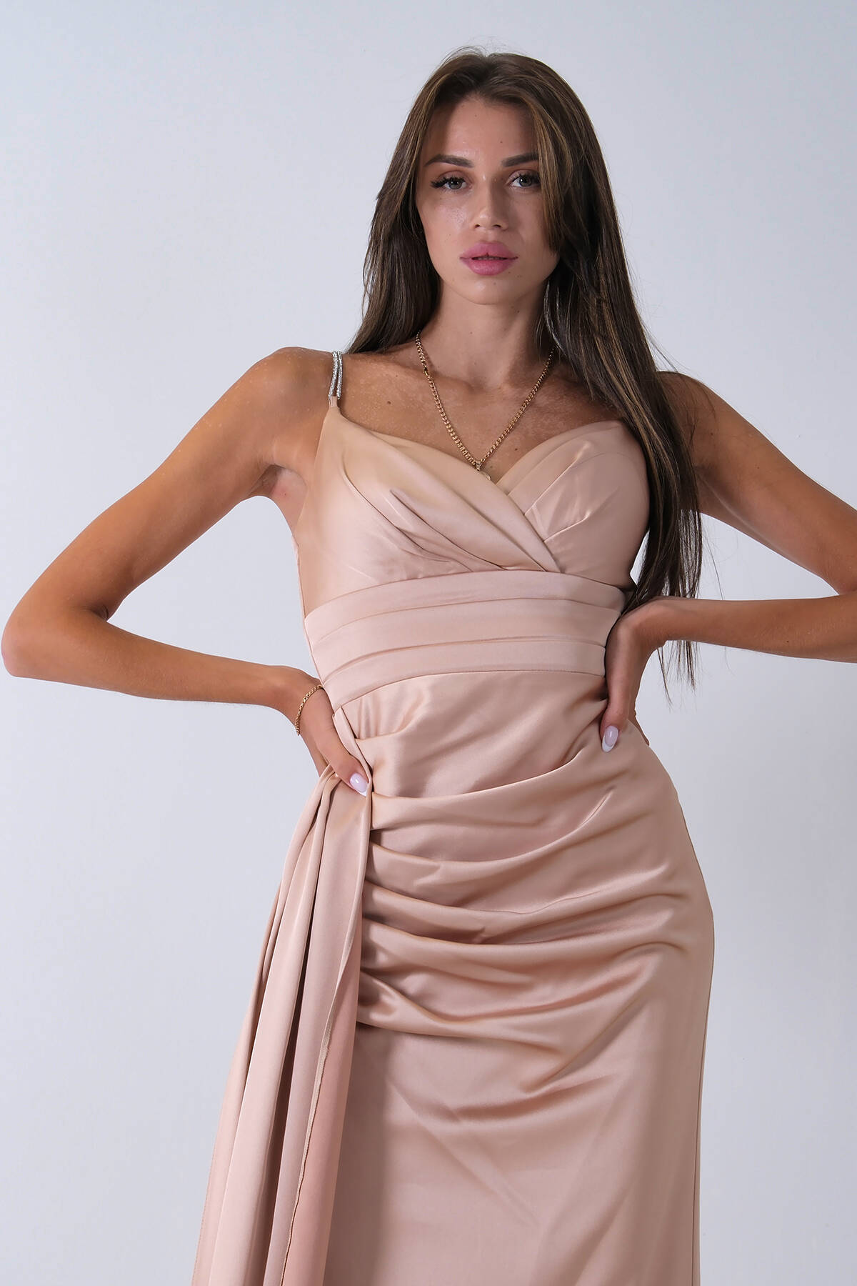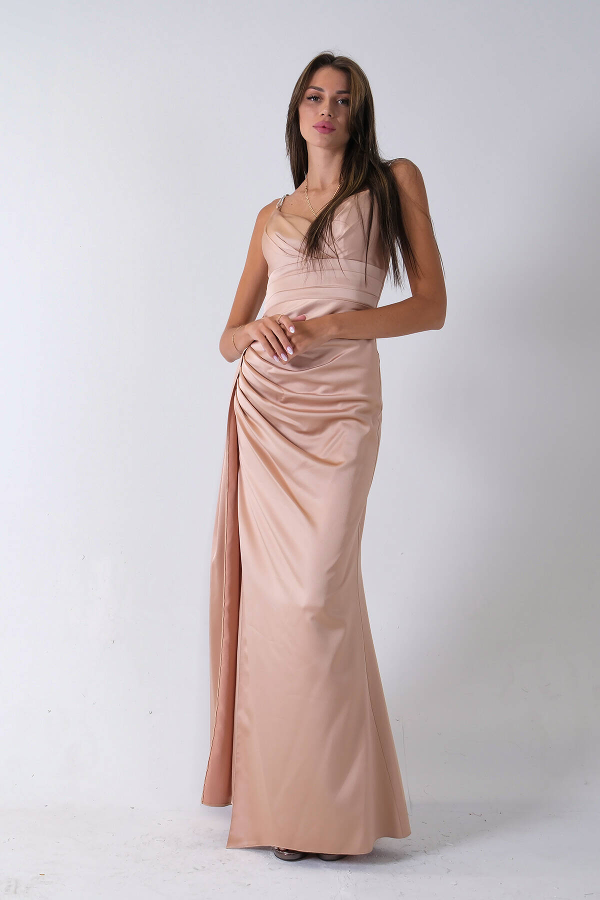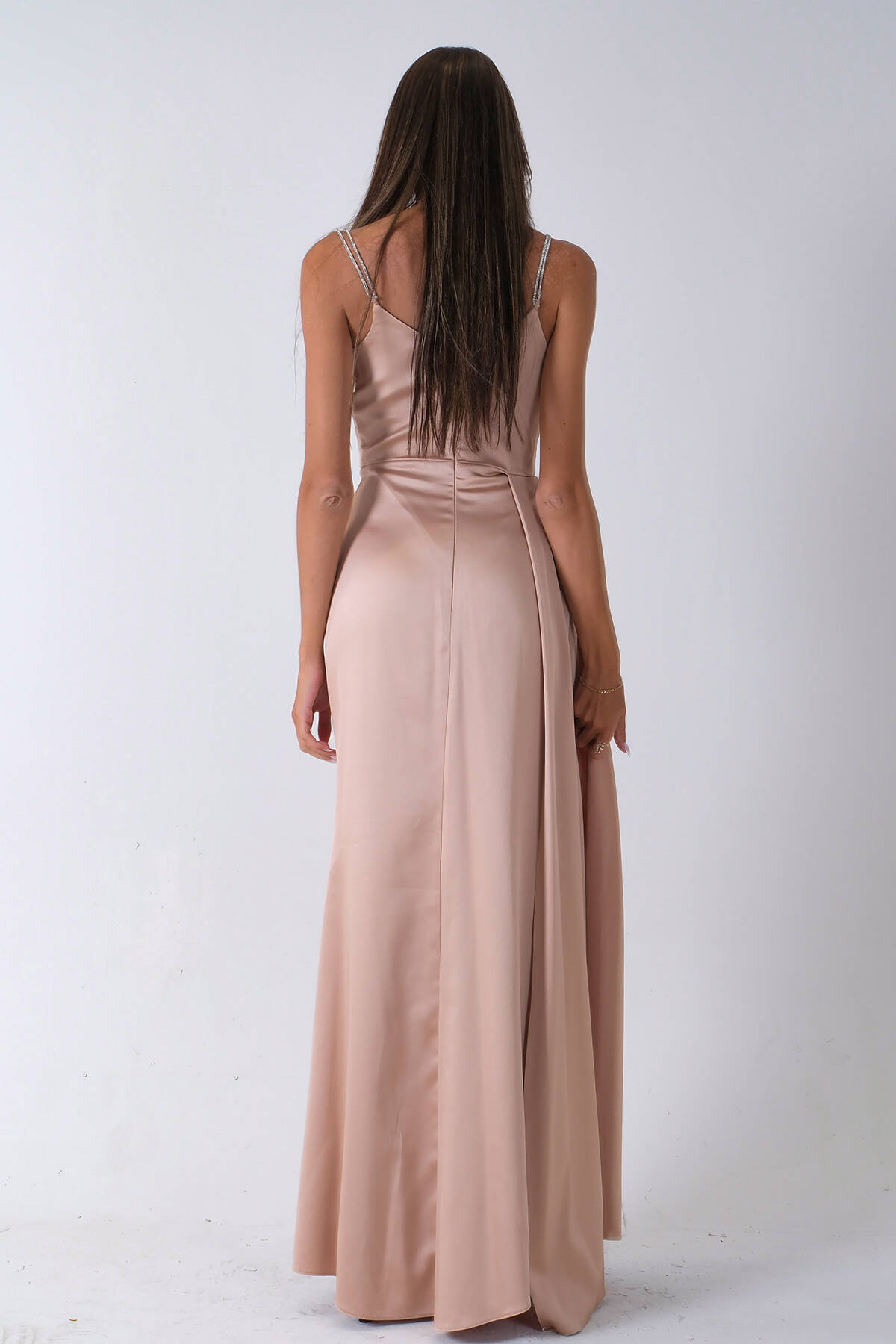 Gold Gümüş Askı Detaylı Yırtmaçlı Straplez Abiye 0801023.122