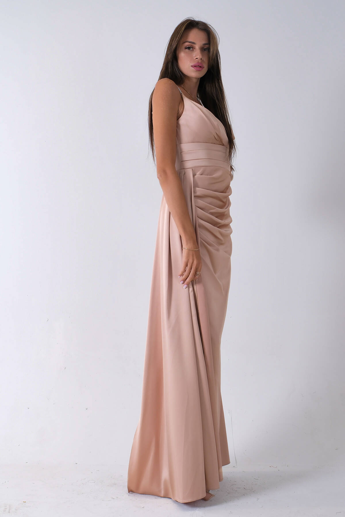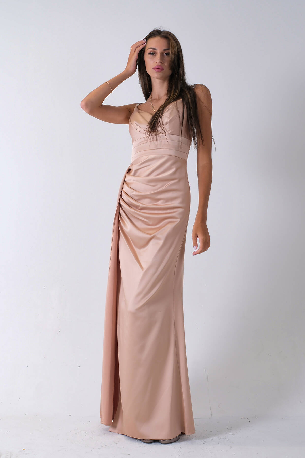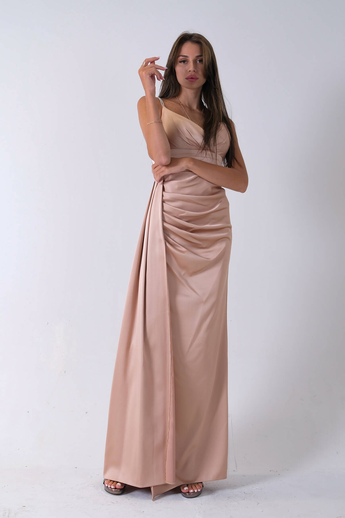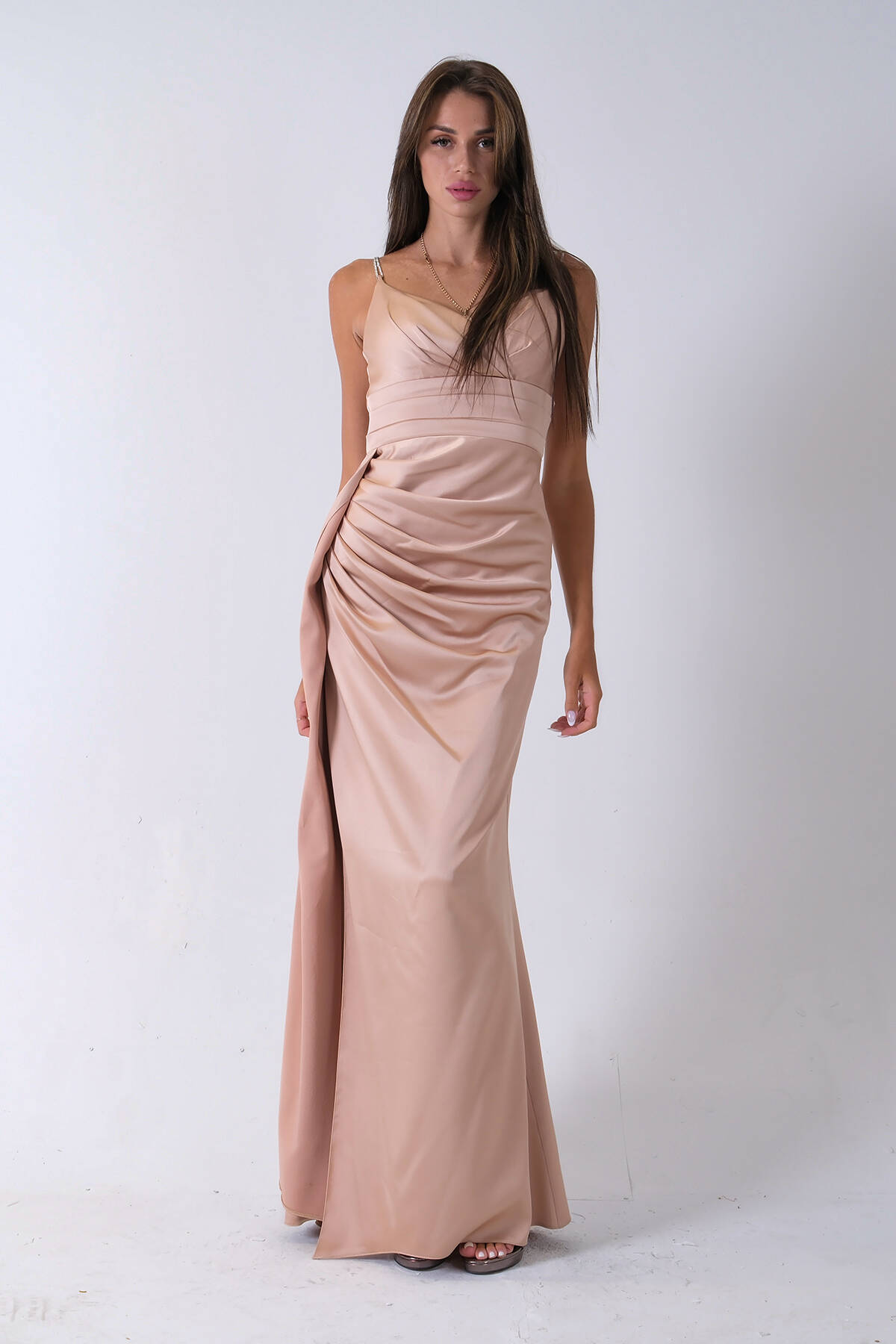 Gold Gümüş Askı Detaylı Yırtmaçlı Straplez Abiye 0801023.122