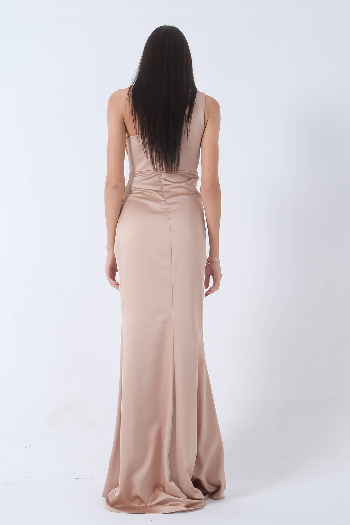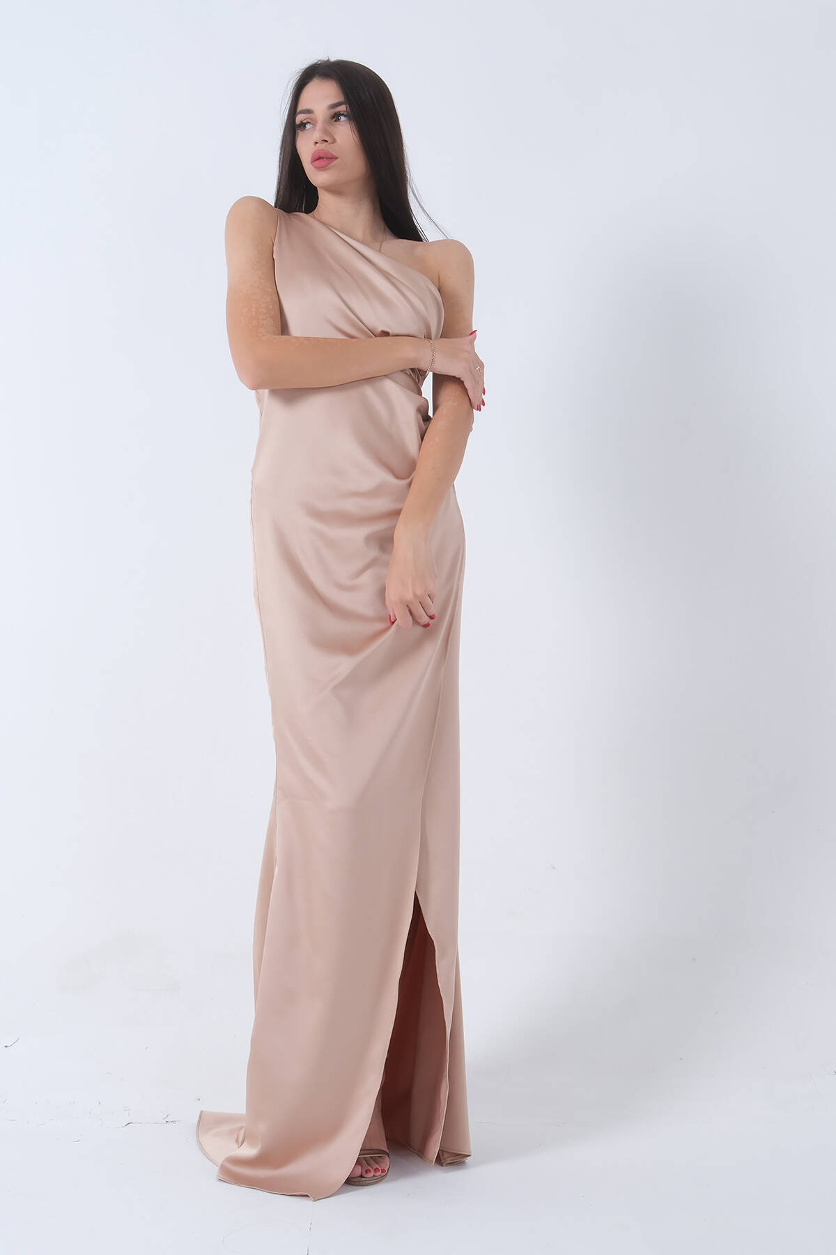 Gold Önü Yırtmaçlı Tek Omuz Şık Abiye 0801563.122