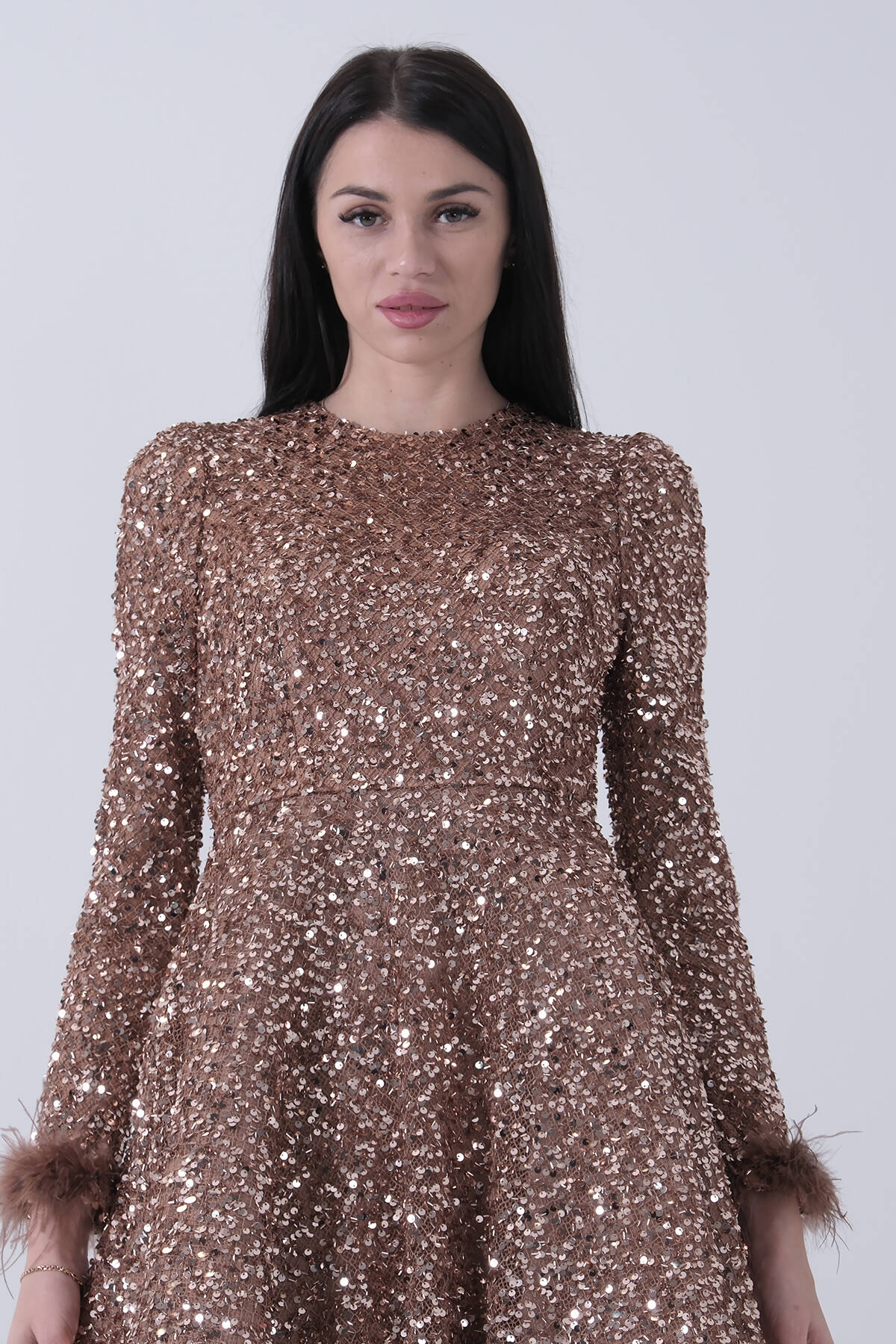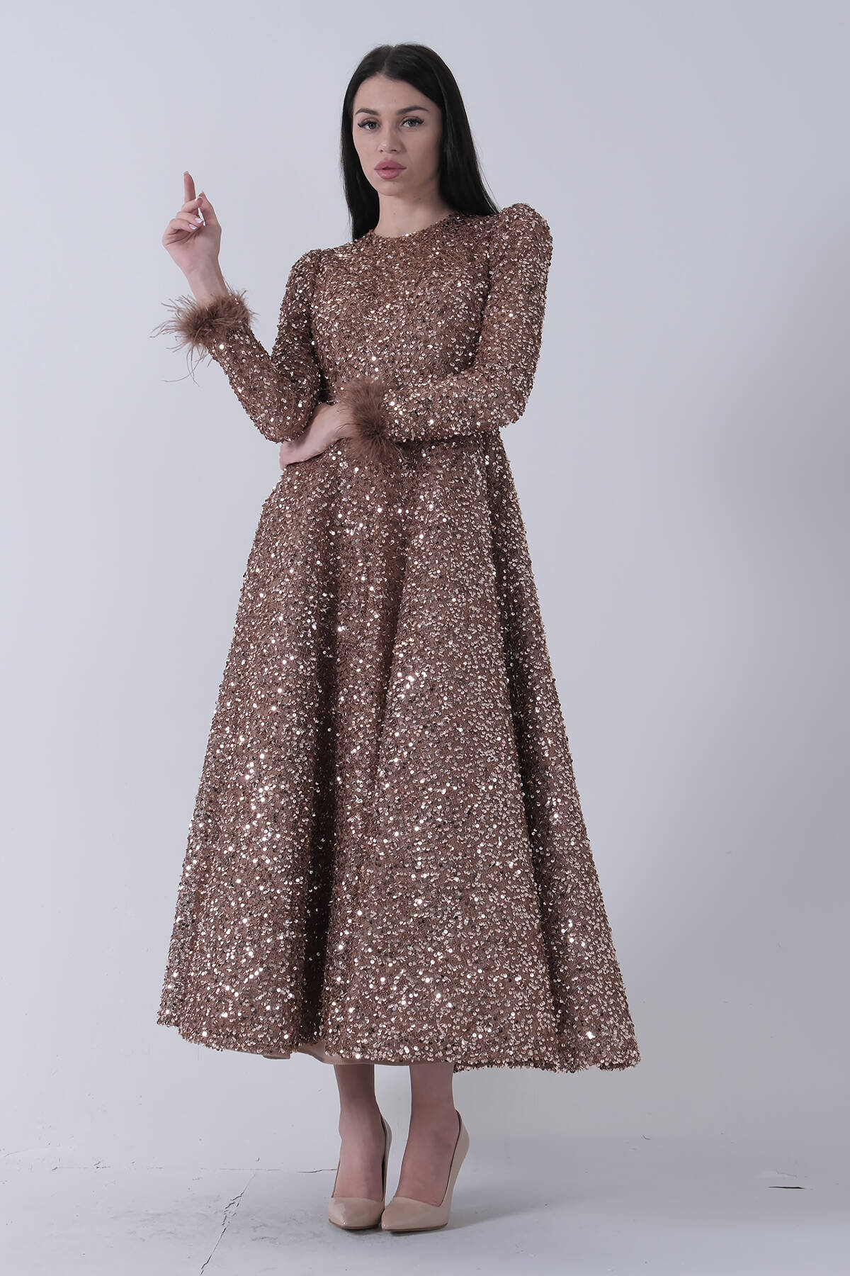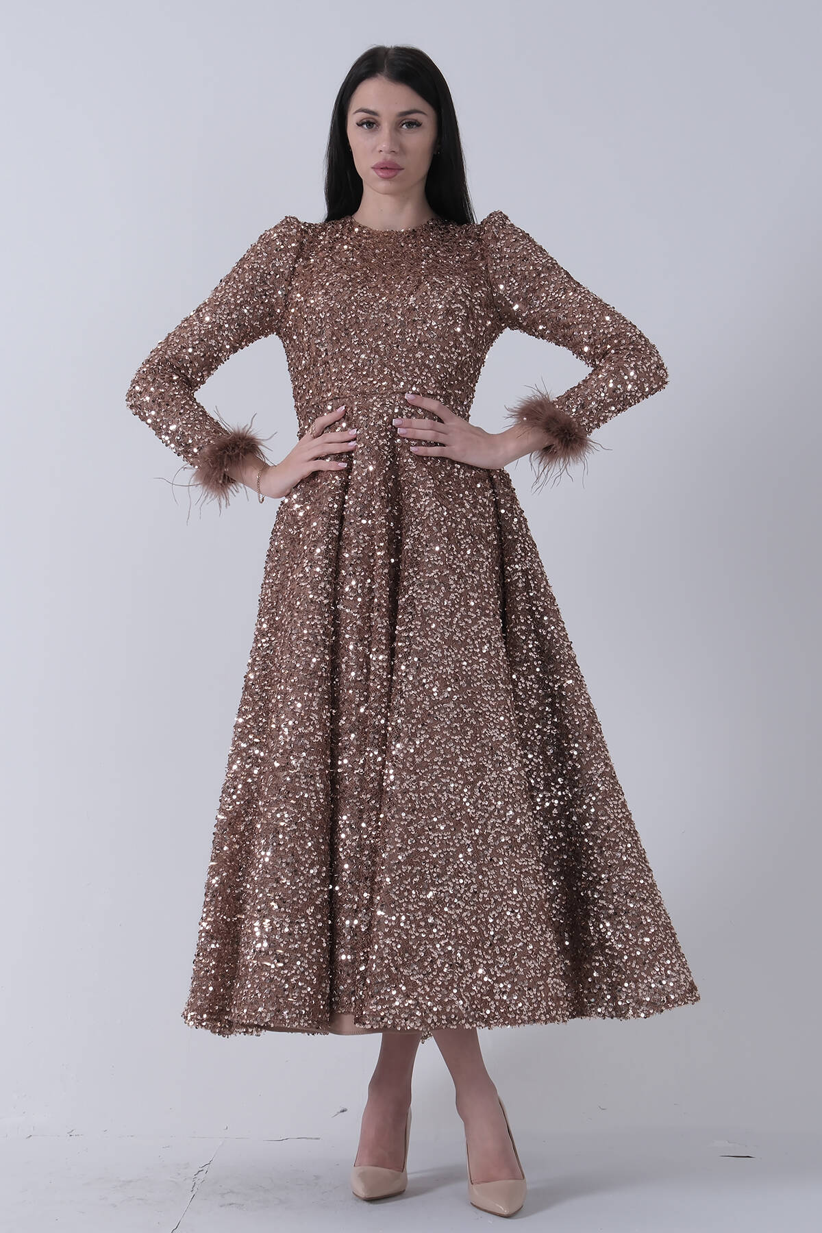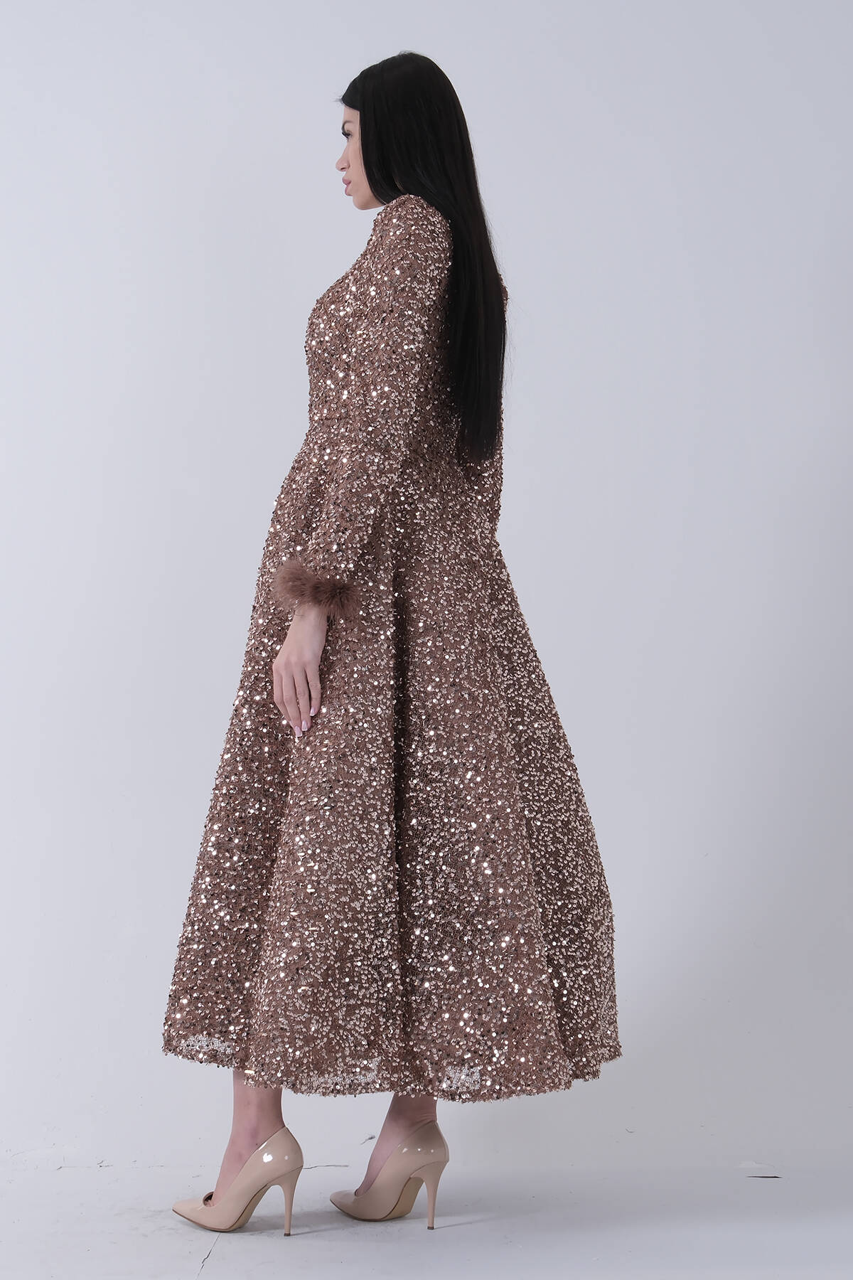 Gold Pul Payetli Kol Ucu Tüylü Tesettür Abiye 6502492.122