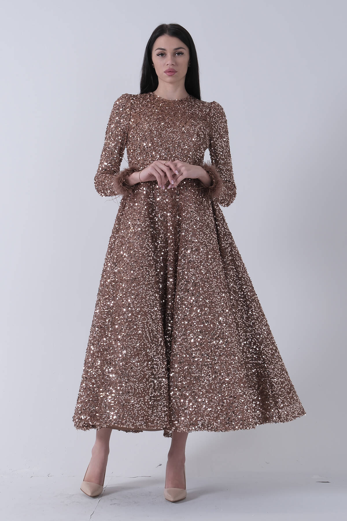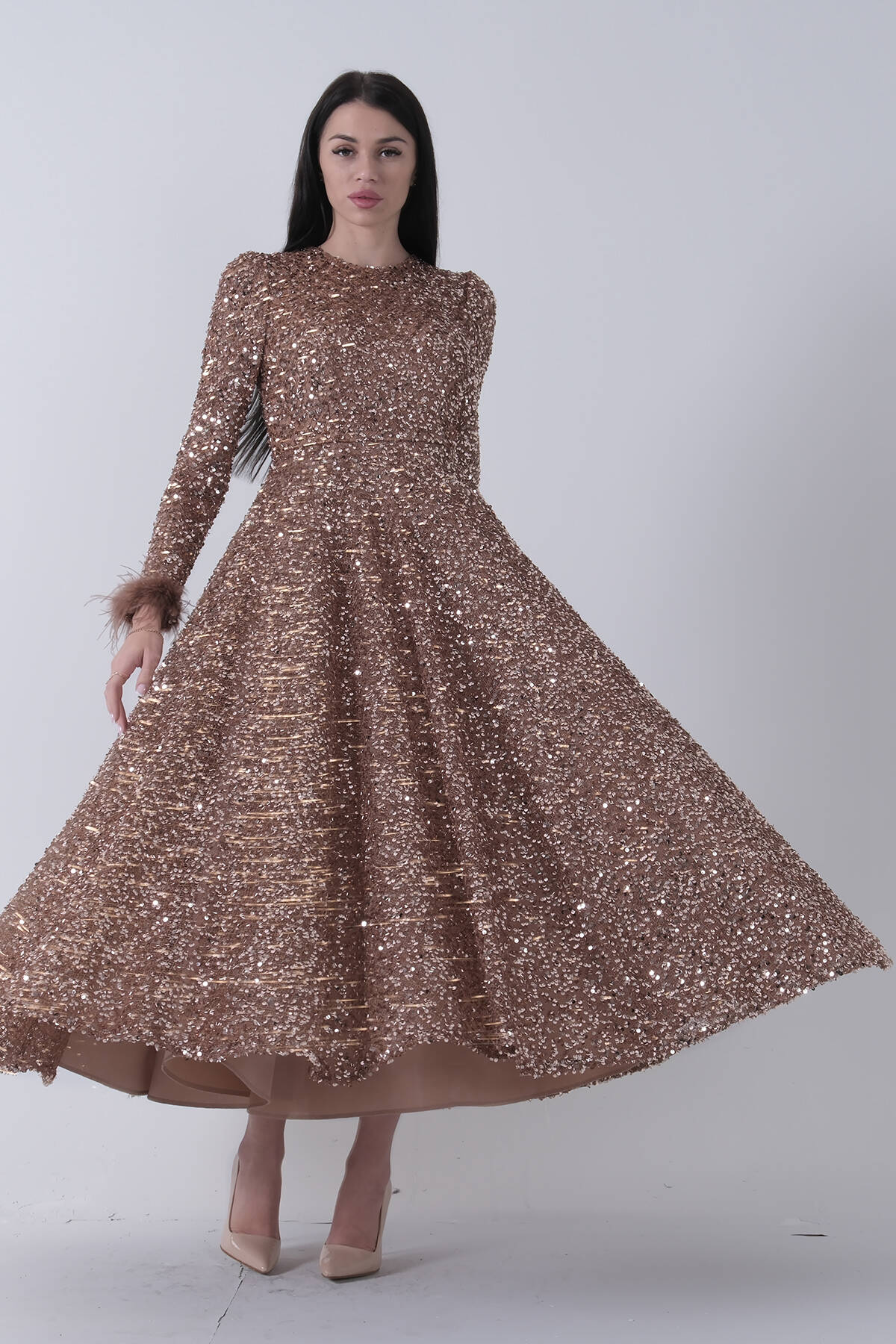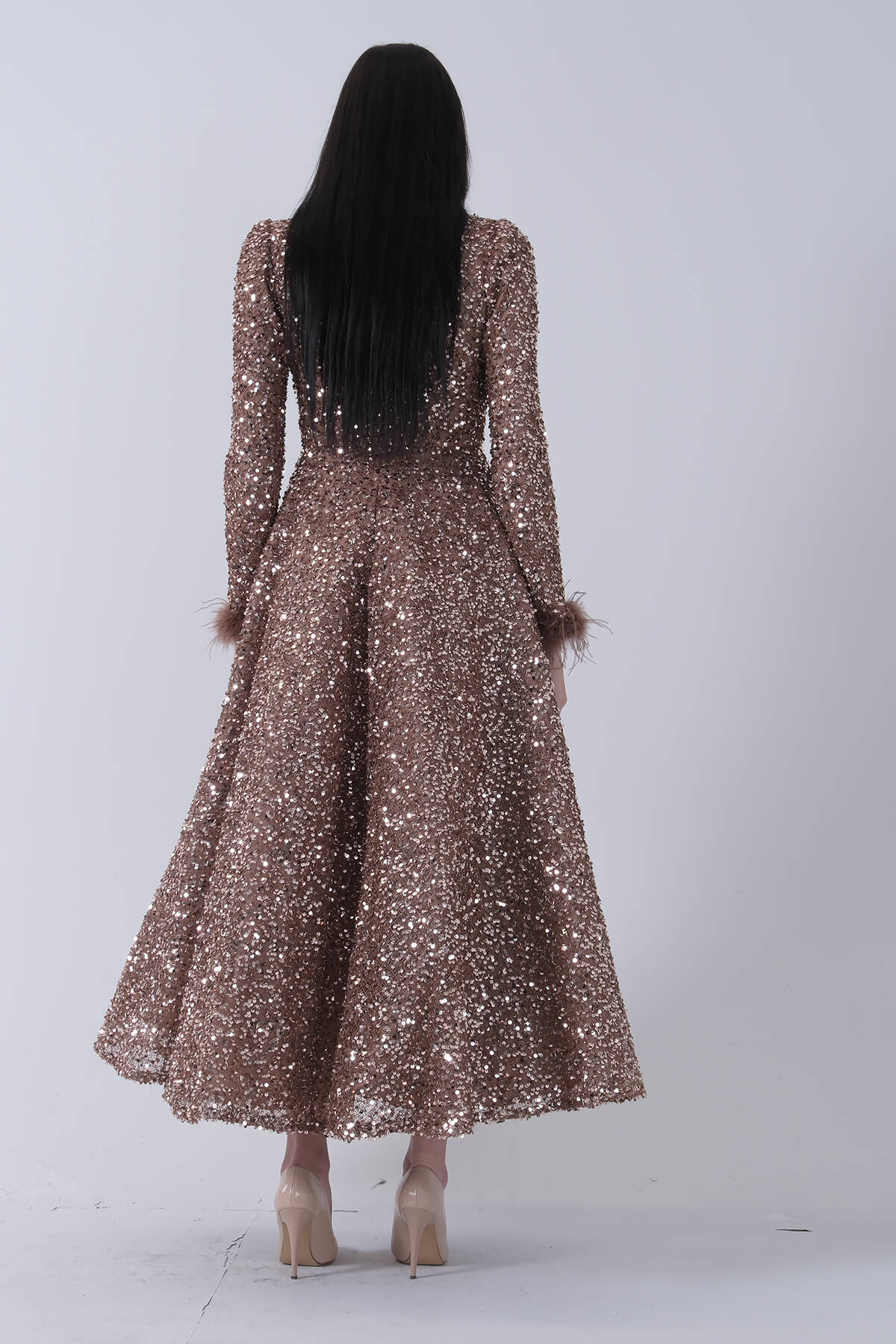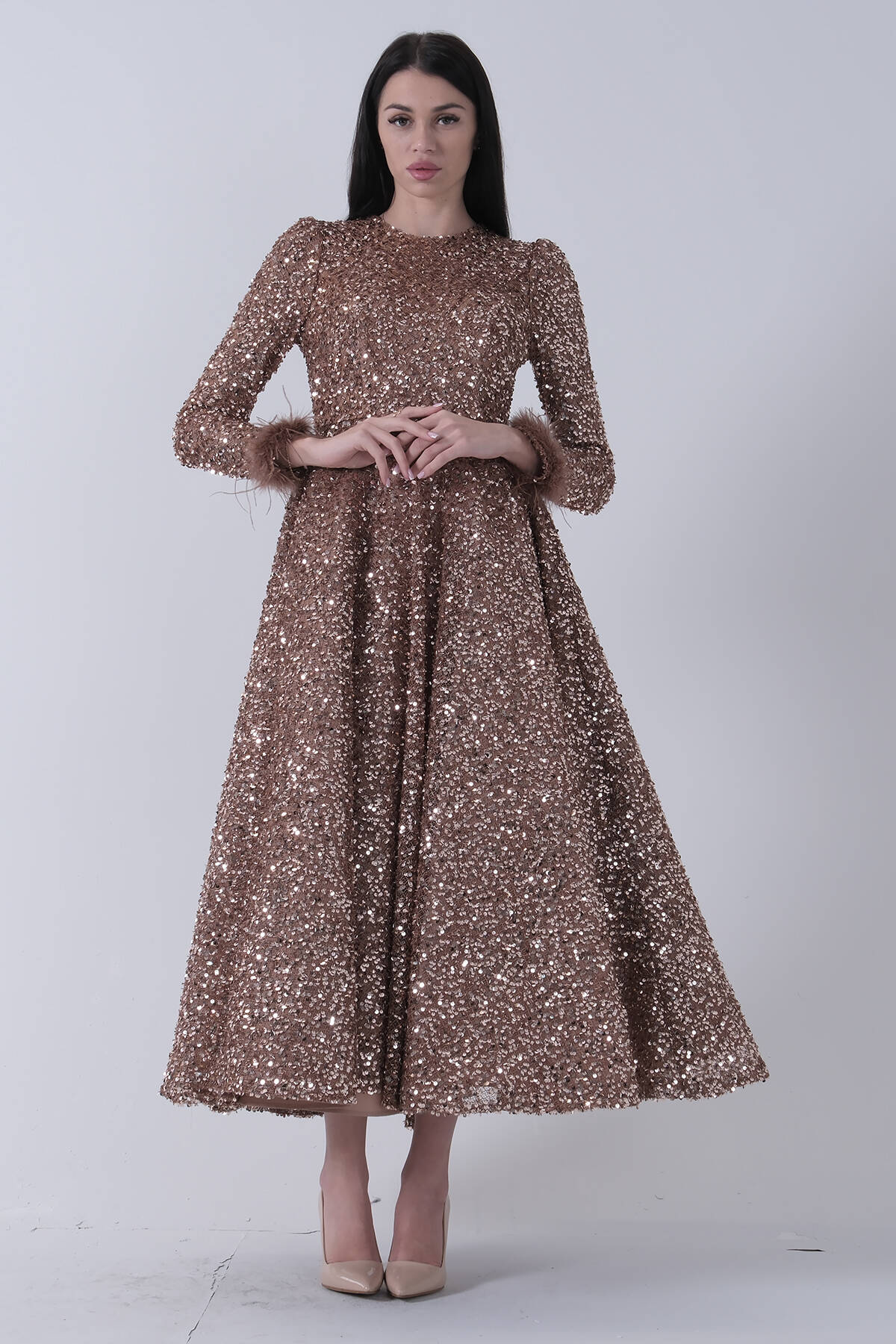 Gold Pul Payetli Kol Ucu Tüylü Tesettür Abiye 6502492.122