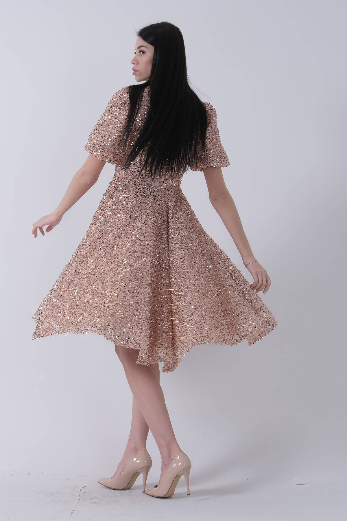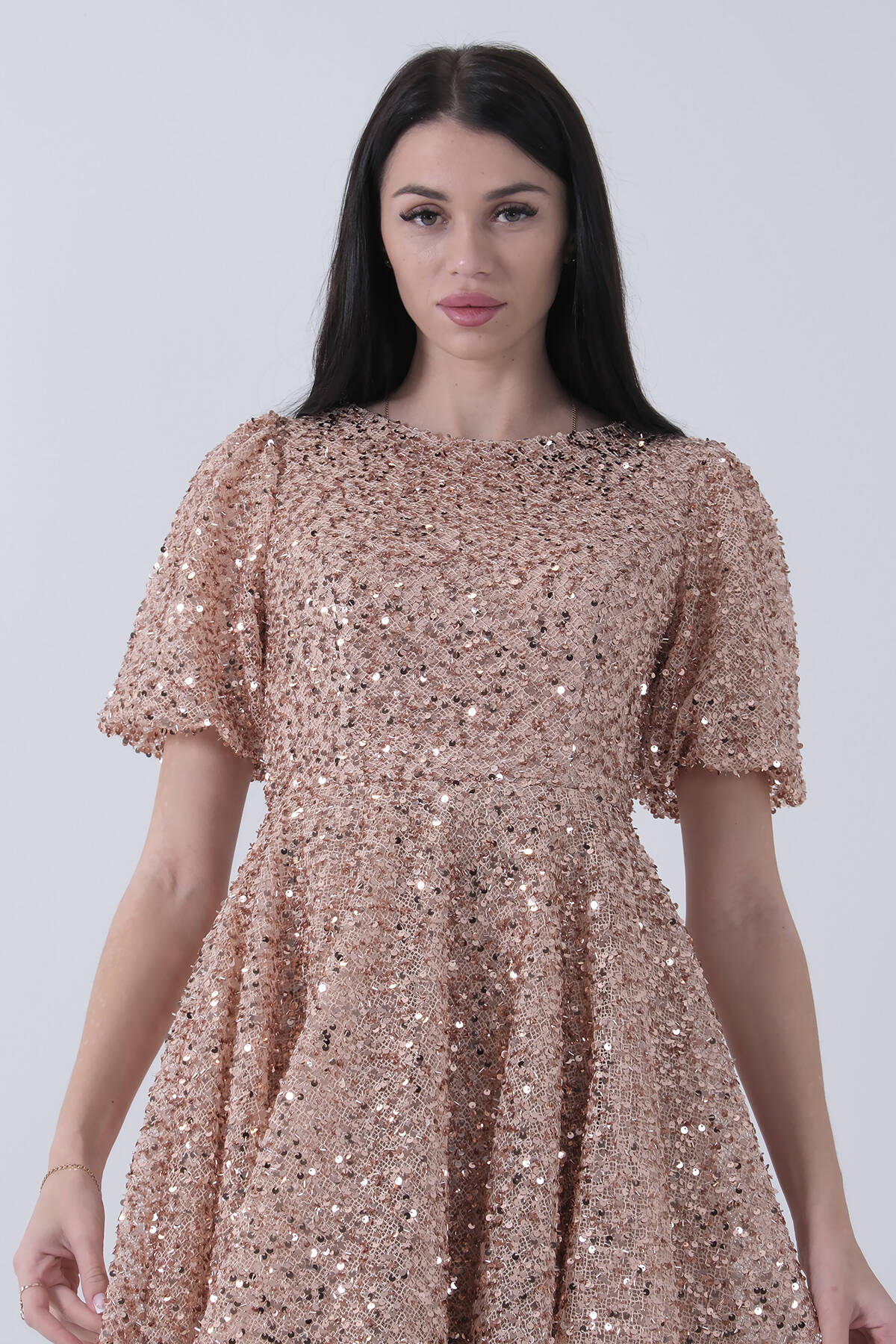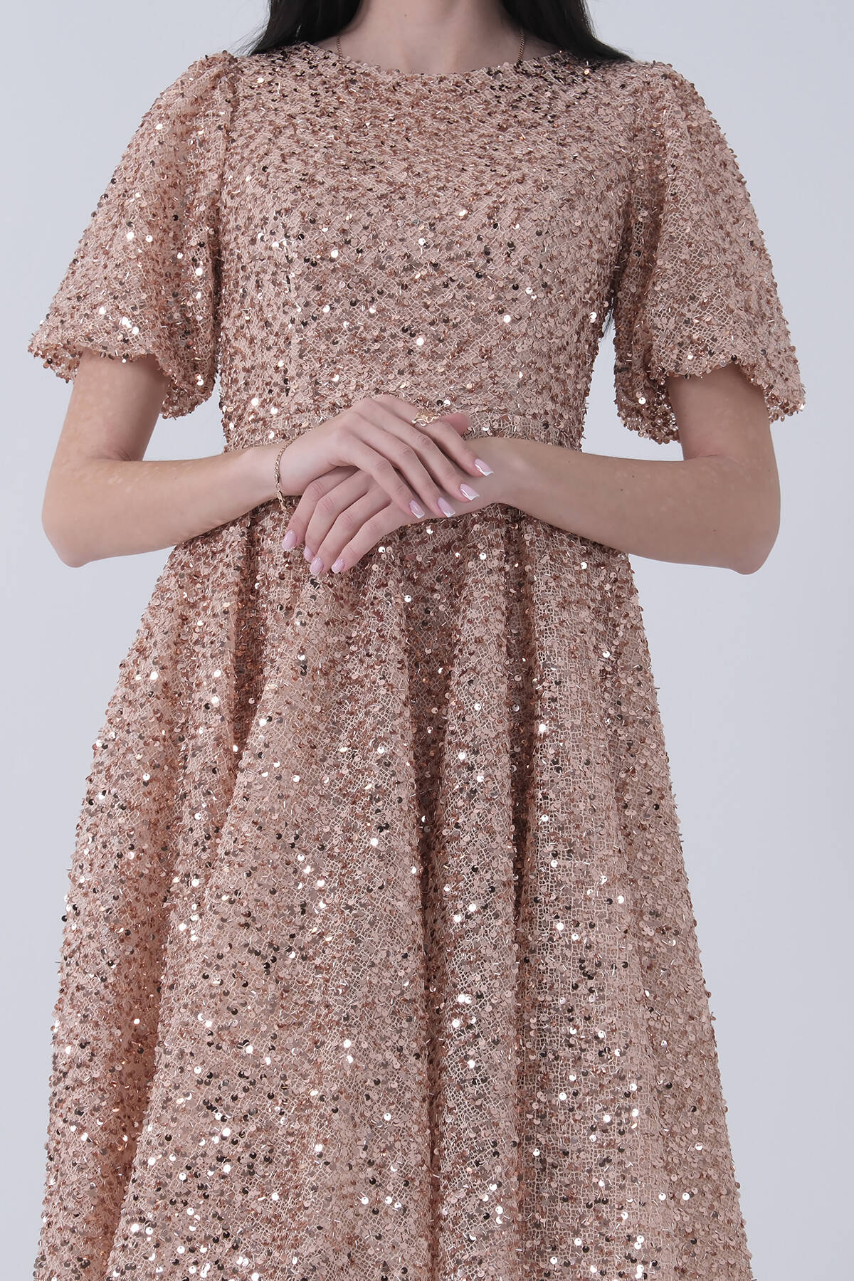 Gold Pul Payetli Midi Boy Kısakol Abiye 6502498.122