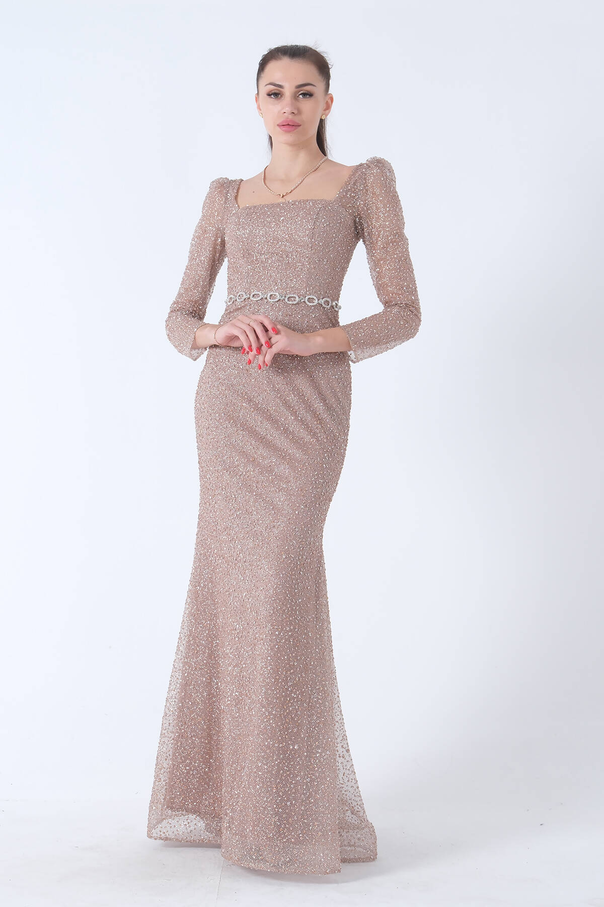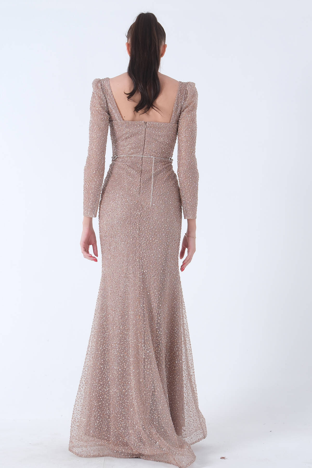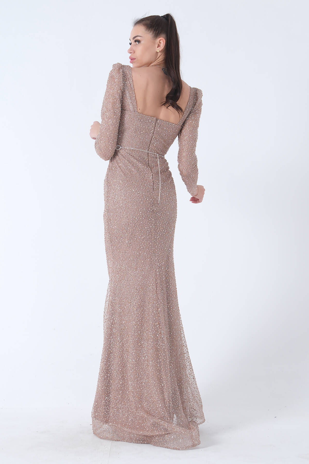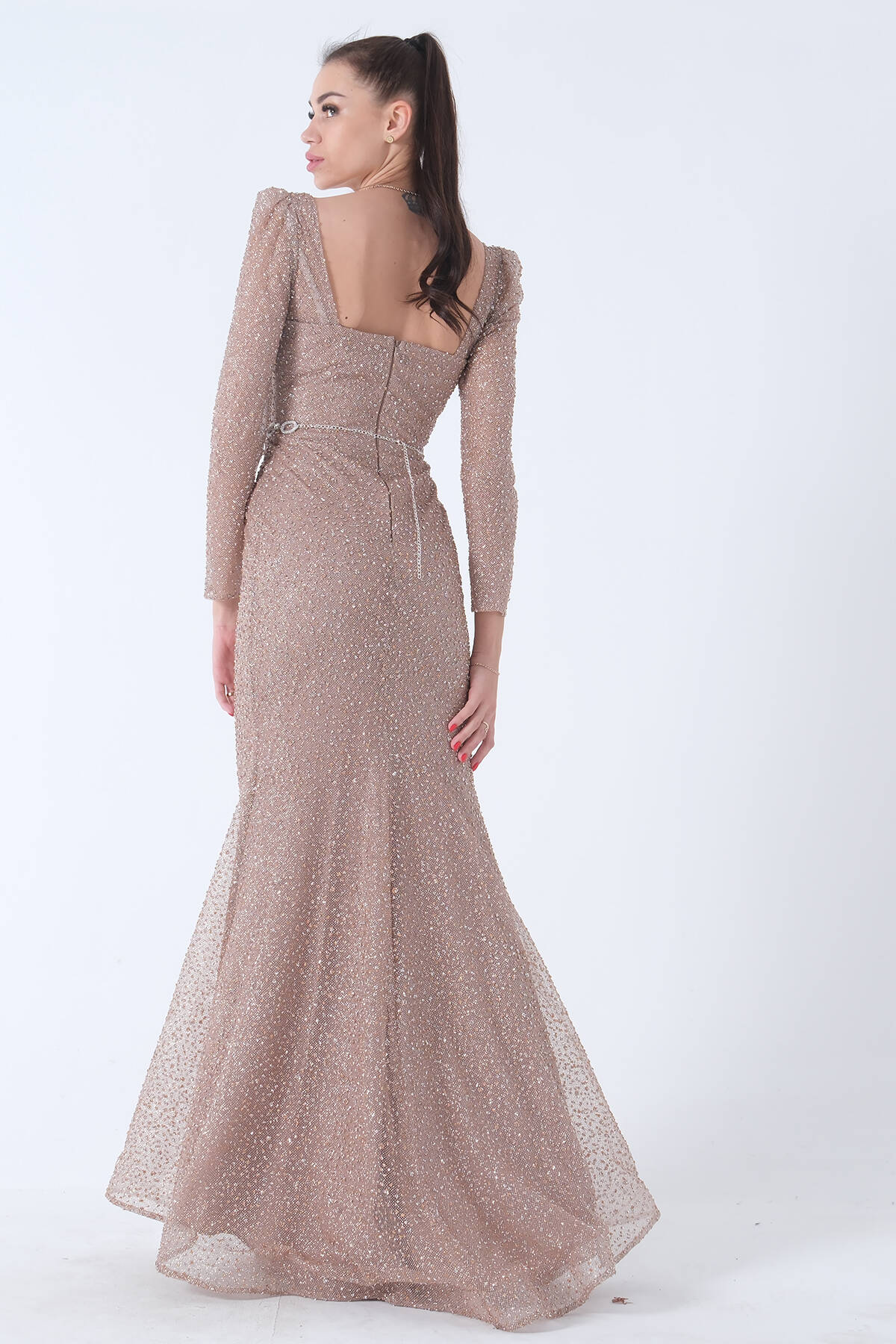 Gold Taş İşlemeli Balık Abiye Elbise 9705141.122