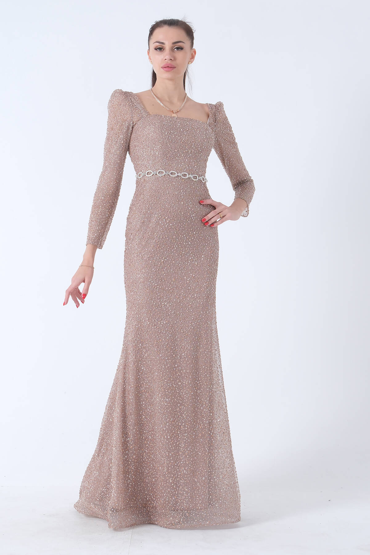 Gold Taş İşlemeli Uzun Balık Abiye 0801056.122