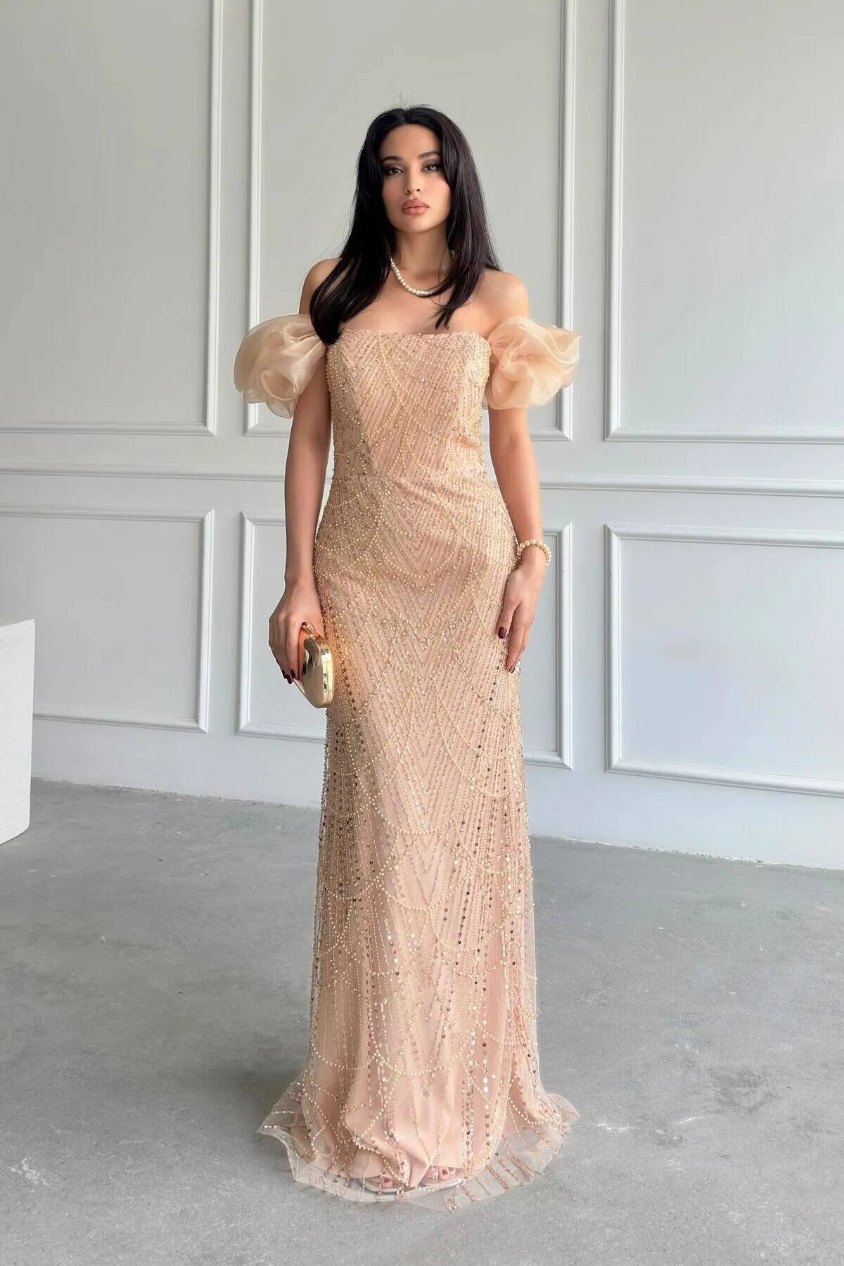Gold Taş İşlemeli Balon Kol Abiye 0801053.122