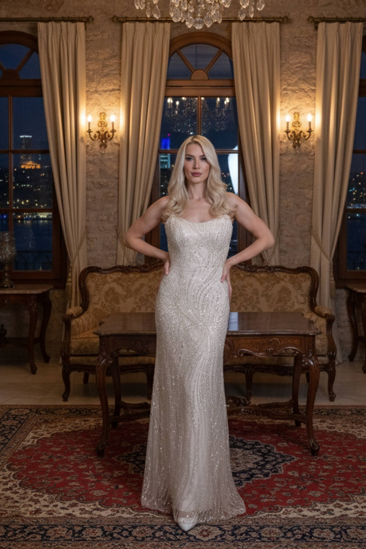 Gold Taş İşlemeli Uzun Balık Abiye 0801056.122