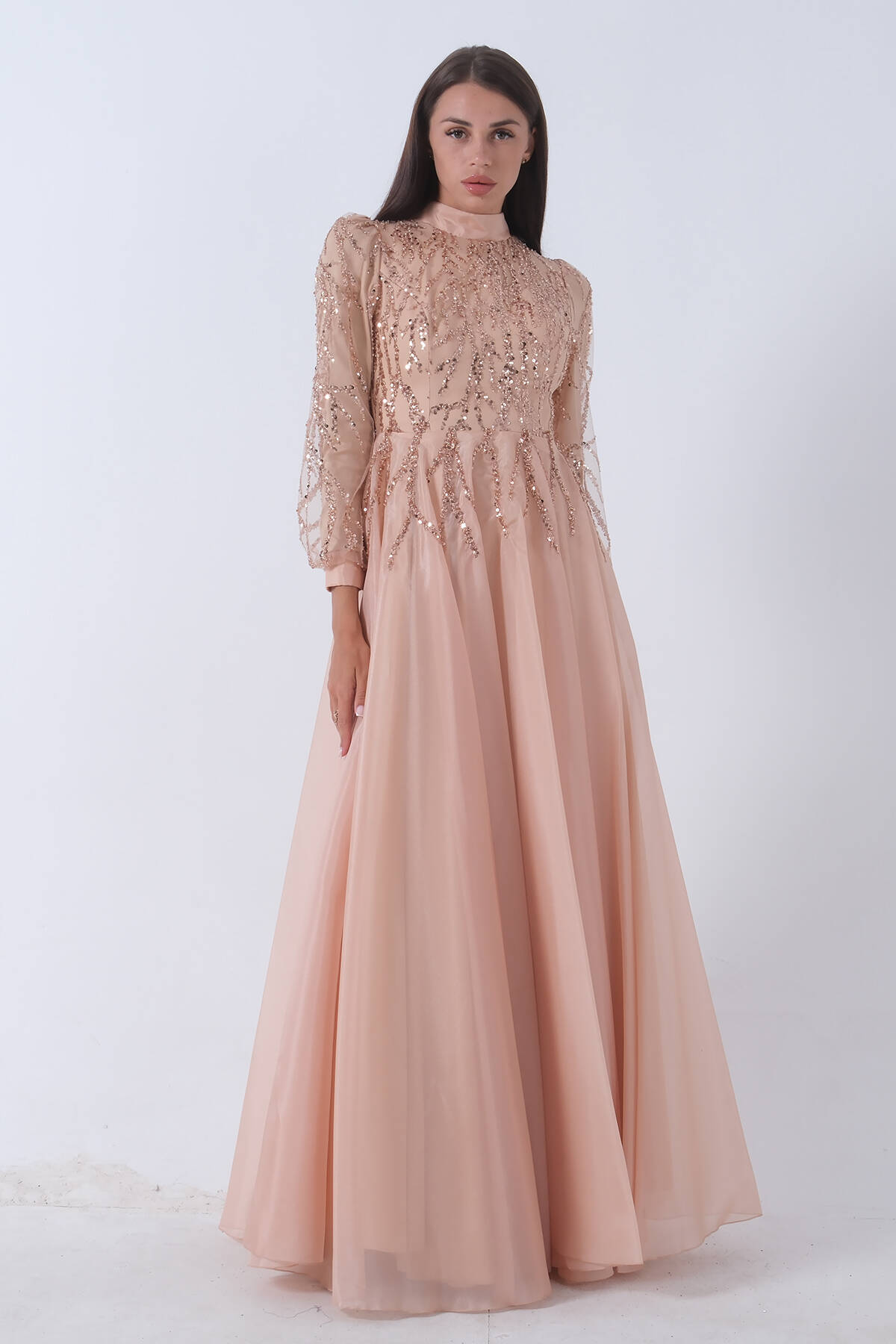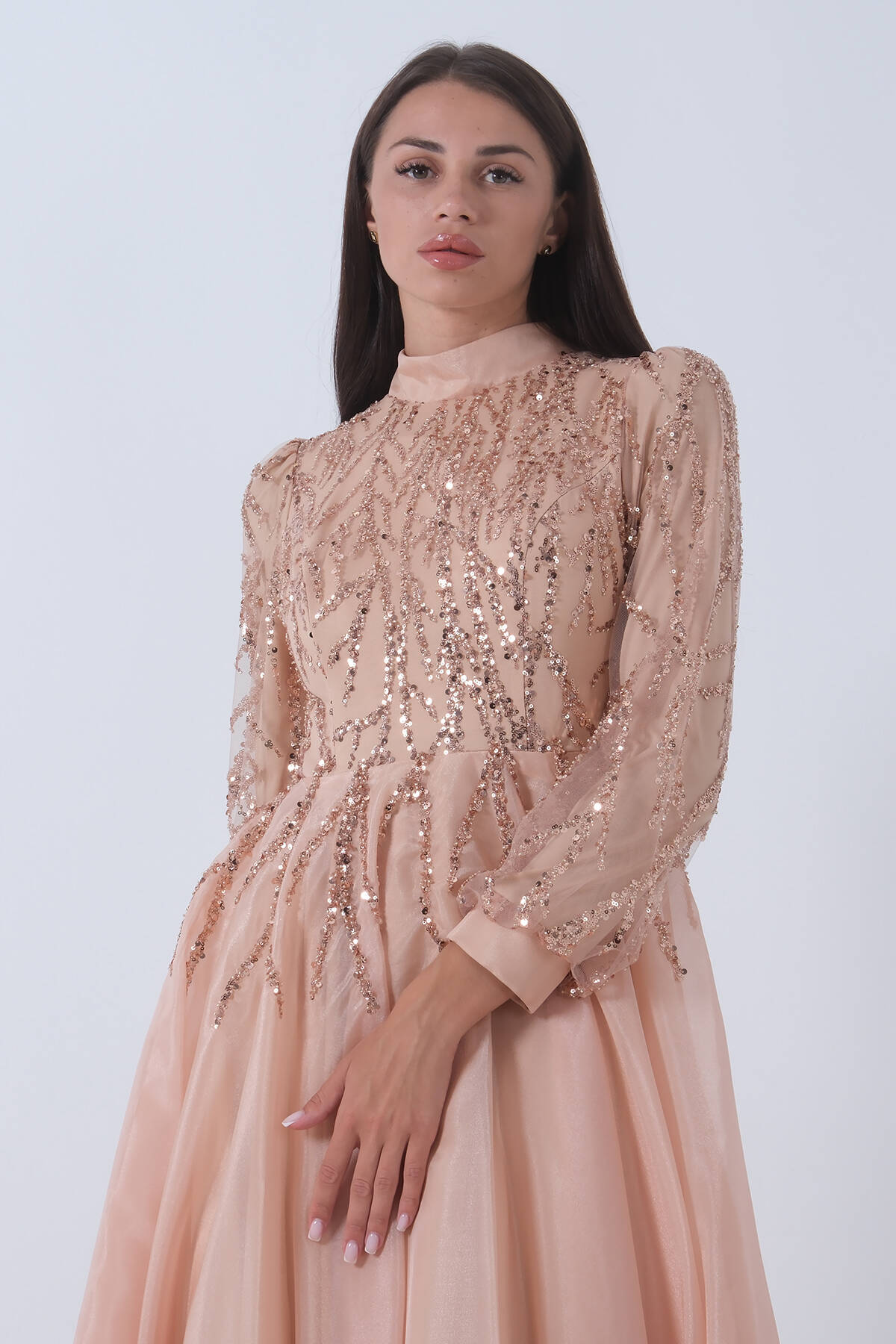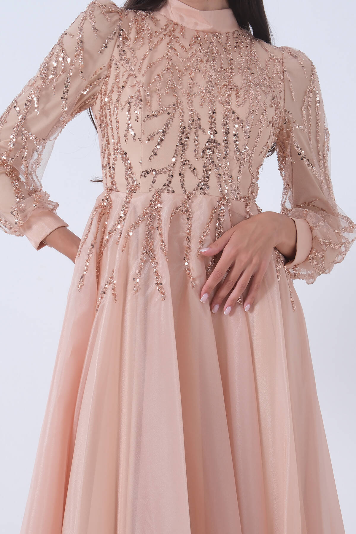 Gold Pul Payetli Kol Ucu Tüylü Tesettür Abiye 6502492.122