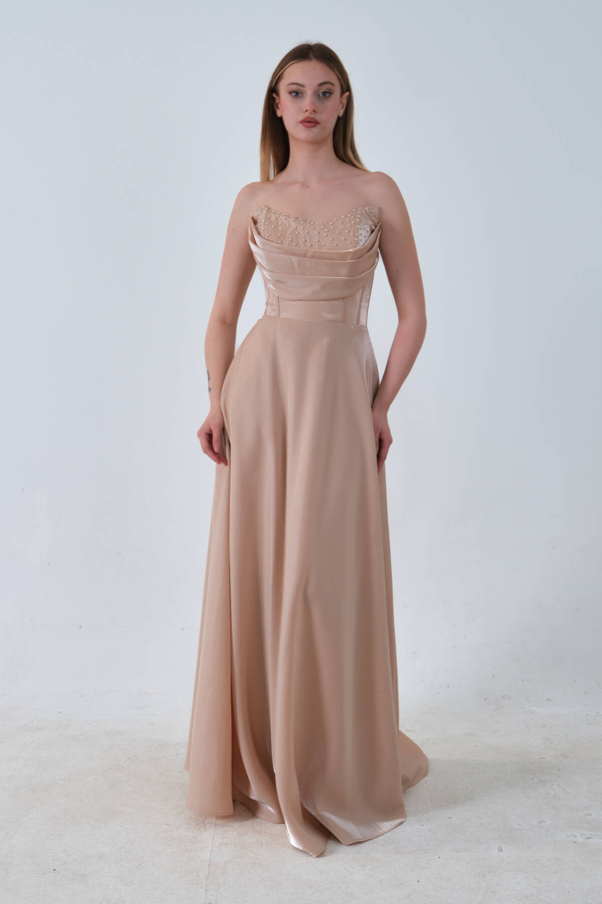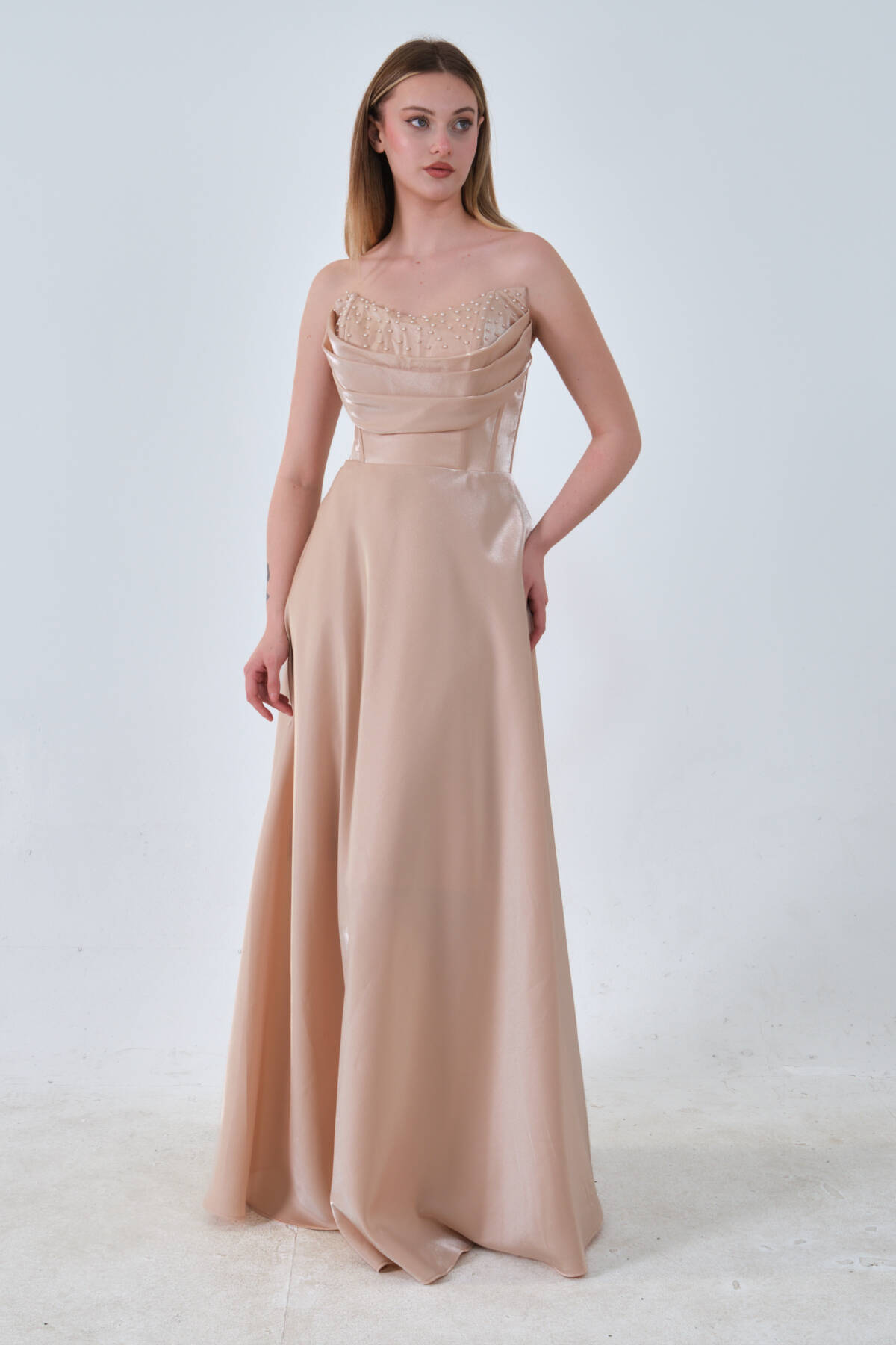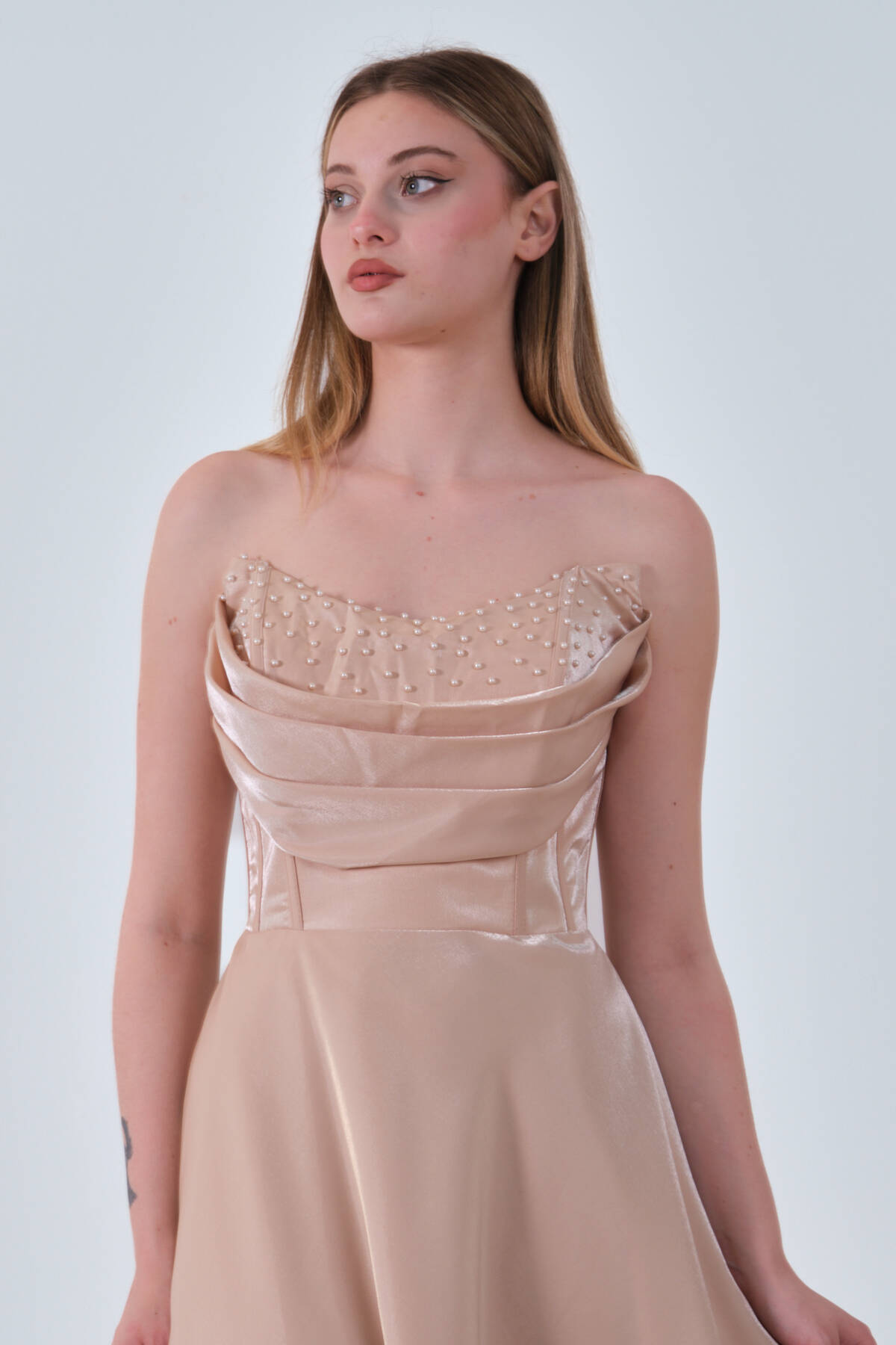 Gold Yaka Boncuk Detaylı Drapeli Abiye 0801087.122