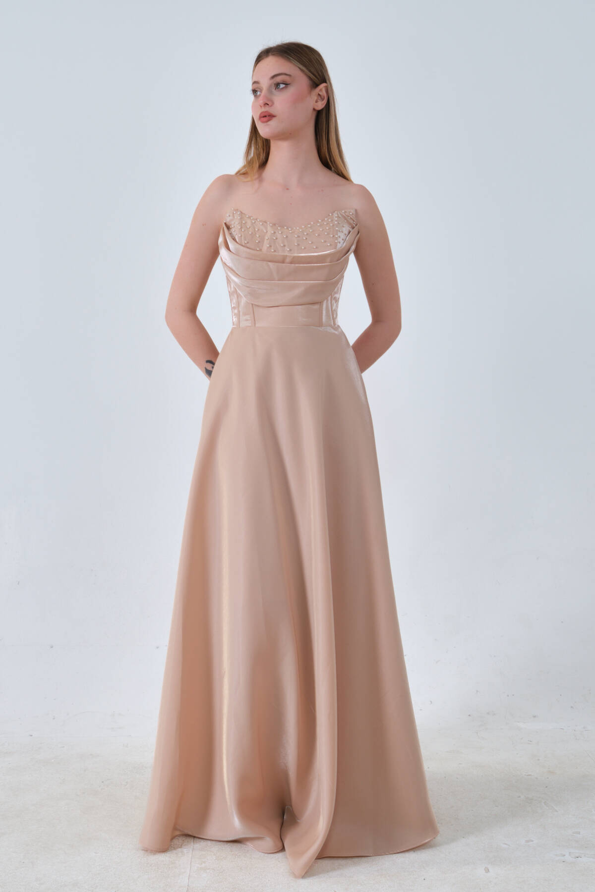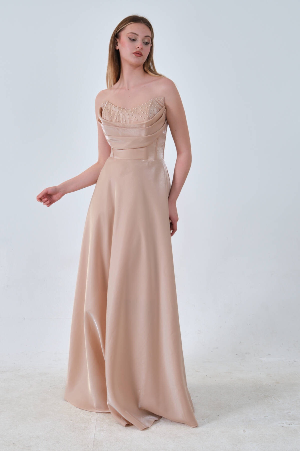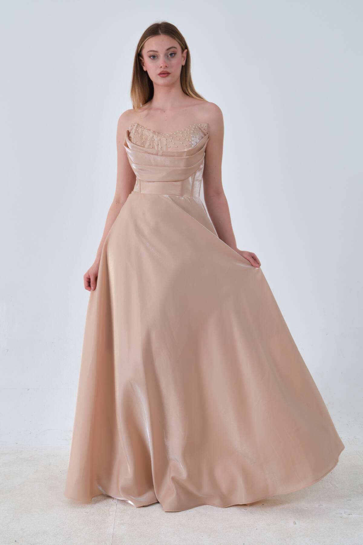 Gold Yaka Boncuk Detaylı Drapeli Abiye 0801087.122